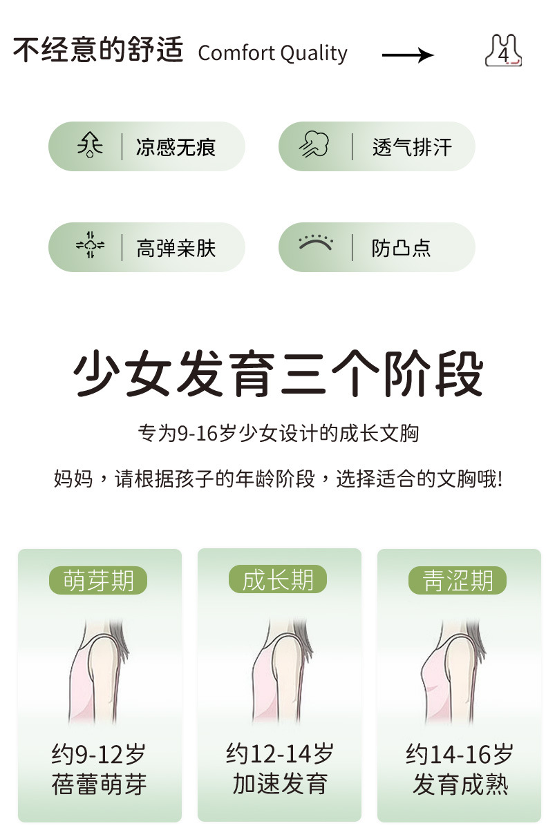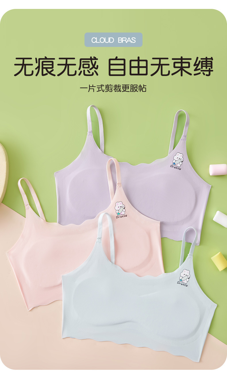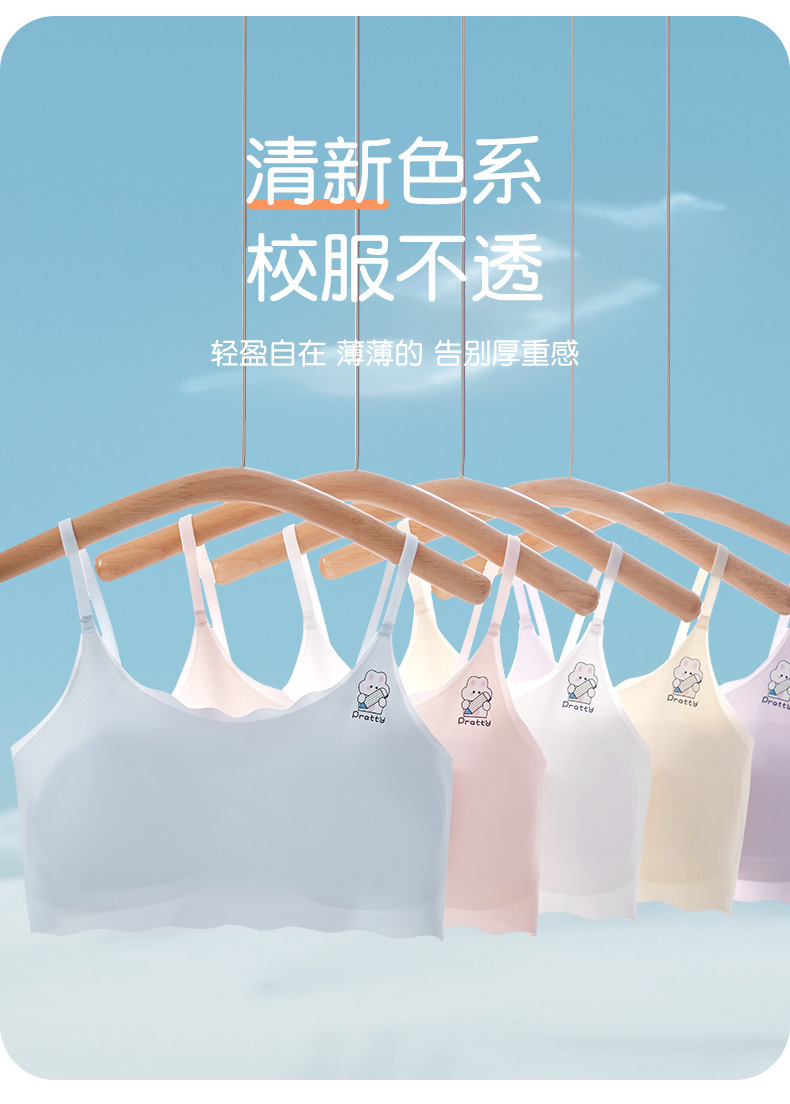여름 얇은 얼음 실크 통기성 소녀 속옷 조끼 개발 기간 소녀 학생 중학교 고등학교 원활한 브래지어스토어 가기