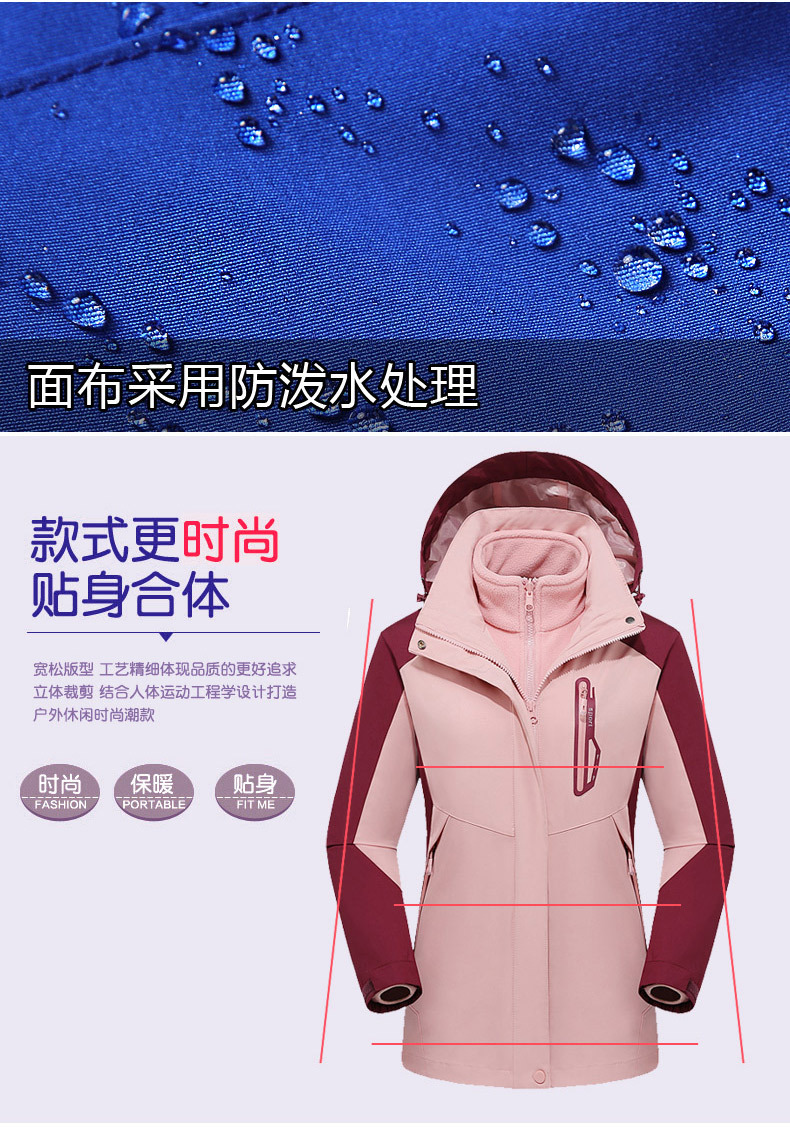 야외 두꺼운 재킷 3 대 1 이동식 2 조각 학교 유니폼 그룹 방수 등산 세트 작업 세트 인쇄 로고스토어 가기