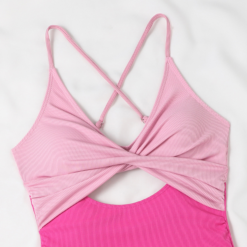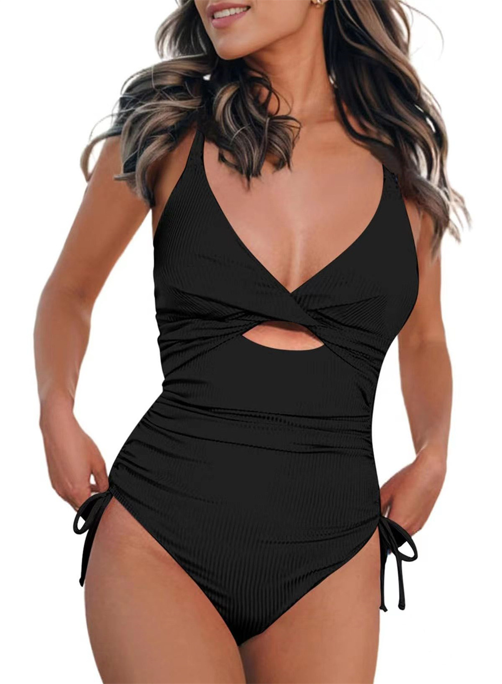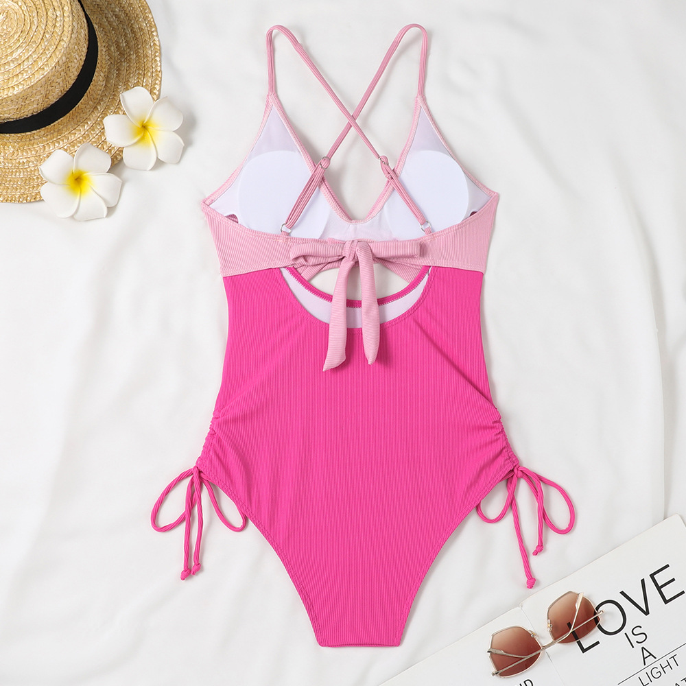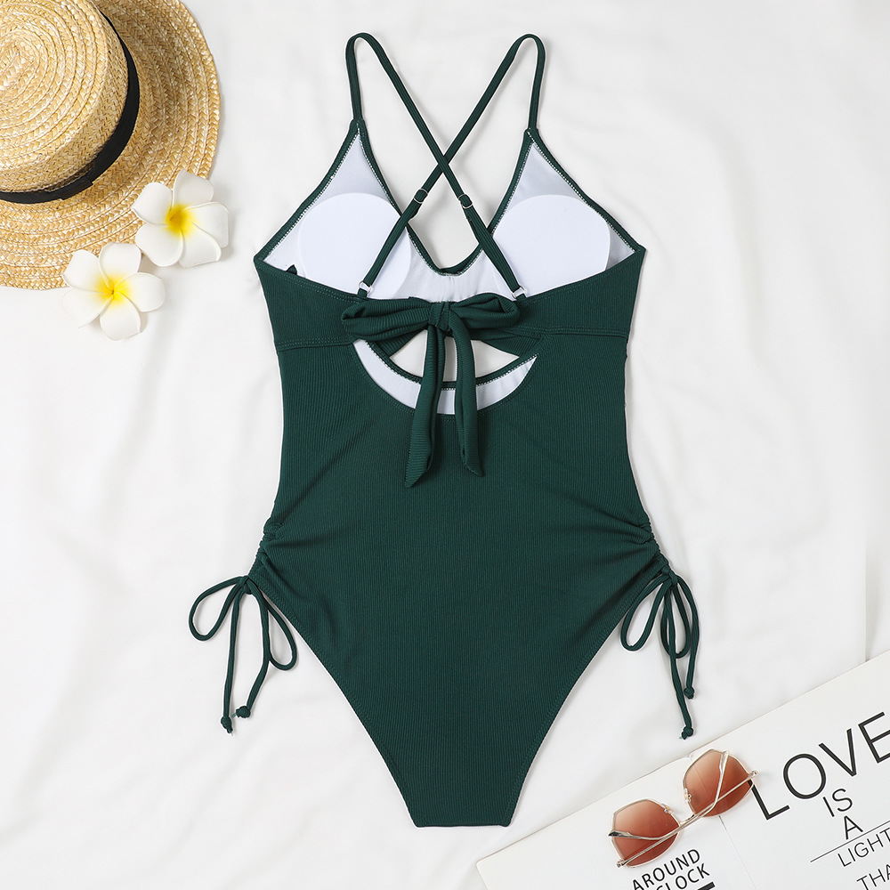 2024 새로운 유럽과 미국의 원피스 수영복 여성의 섹시한 깊은 V 뜨거운 소녀 단색 비키니 대외 무역 온천 휴가 수영복