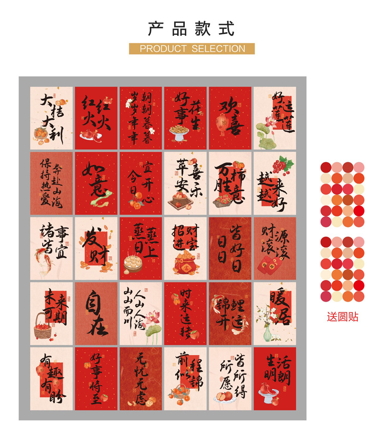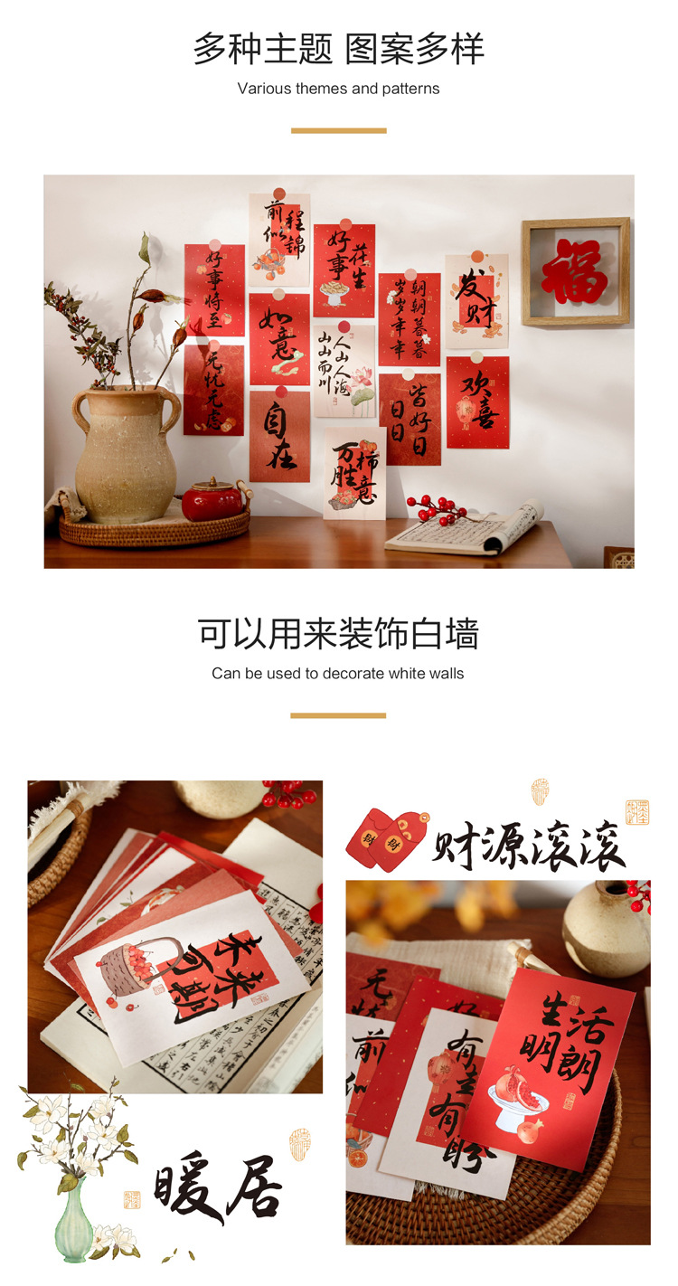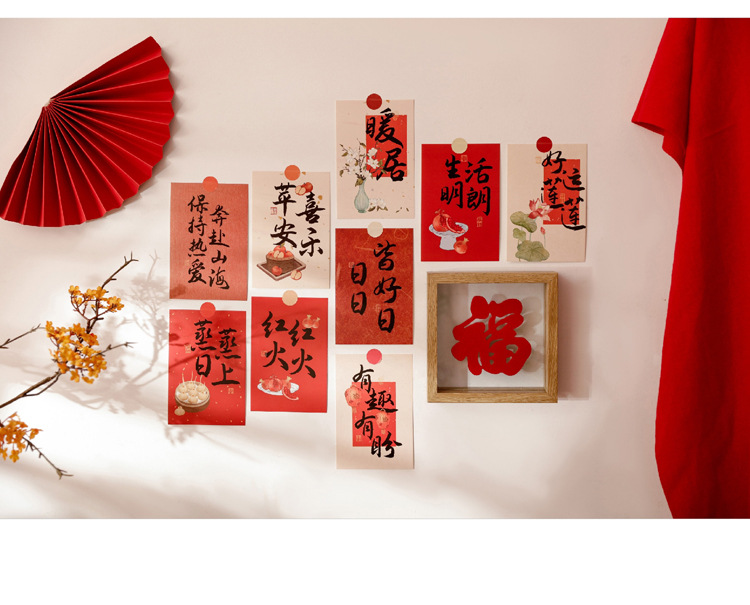연속으로 행운을 빕니다 새해 봄 축제 중국 스타일 축복 텍스트 중국 스타일 예술적 장식 카드 인사말 카드 벽 스티커 엽서스토어 가기