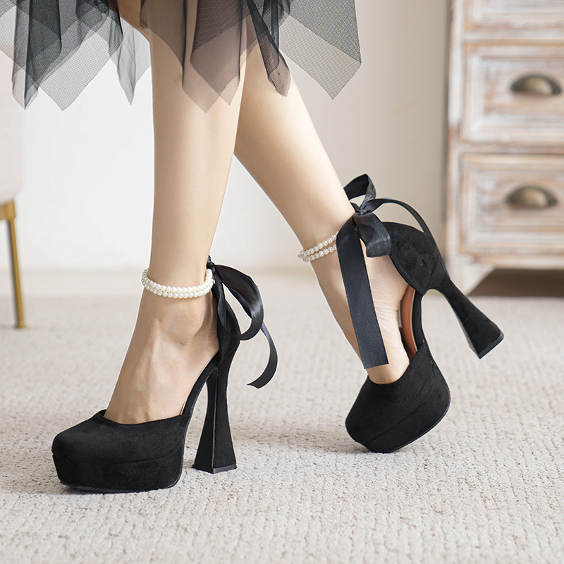 66-6 슈퍼 하이힐 플랫폼 사각 발가락 청키 힐 버클 패션 증오 tiangao 모델 패션쇼 신발스토어 가기