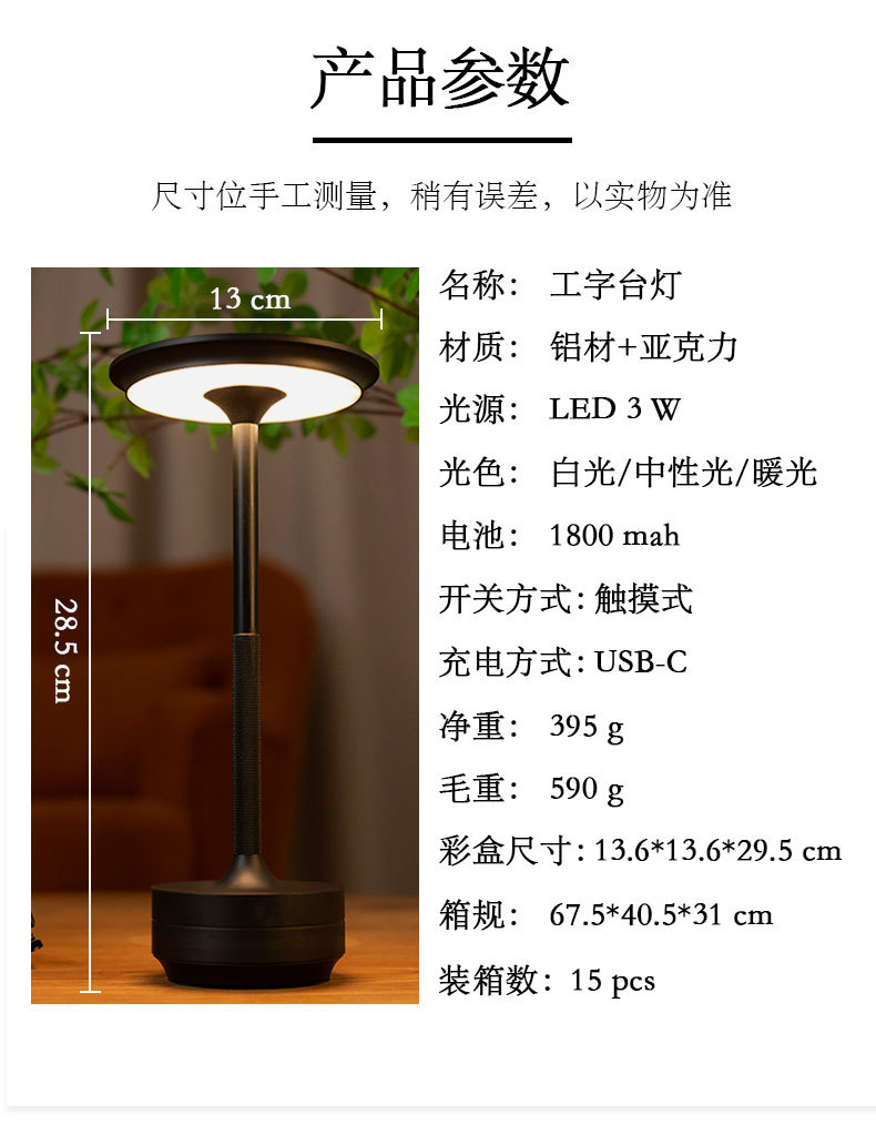 USB 충전식 장식용 테이블 램프 메탈 레트로 터치 야간등 캠핑 레스토랑 바 테이블 분위기 조명스토어 가기