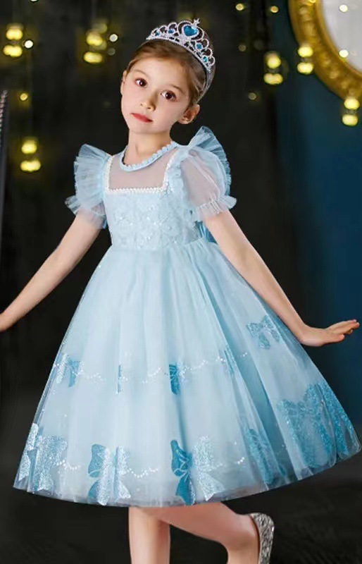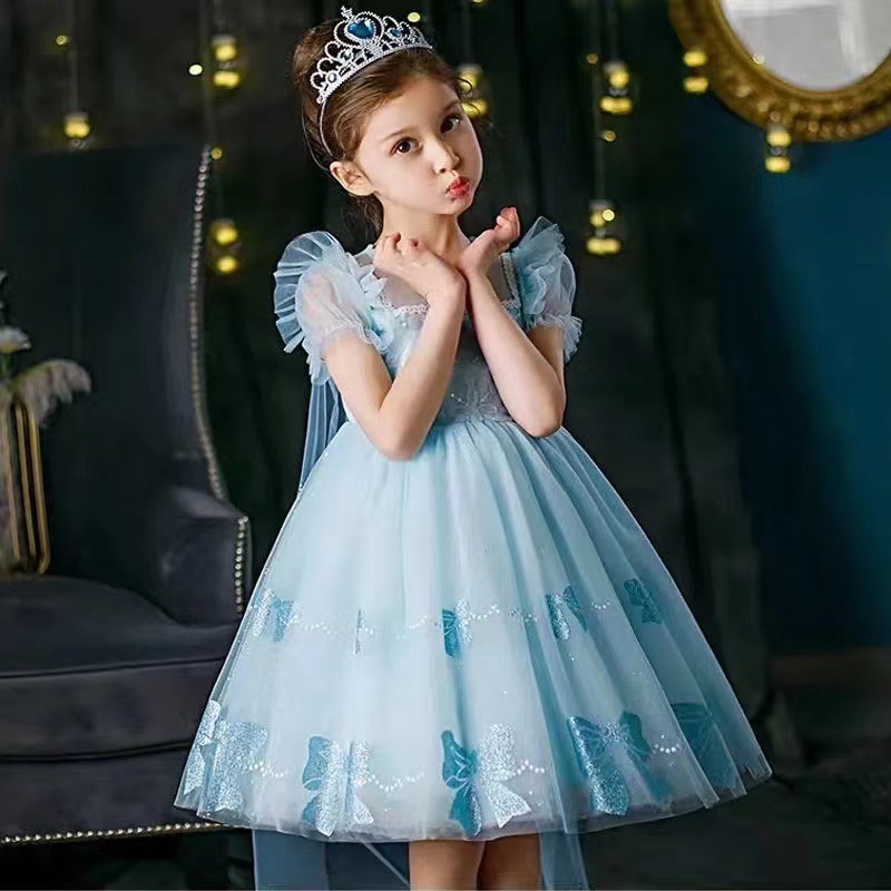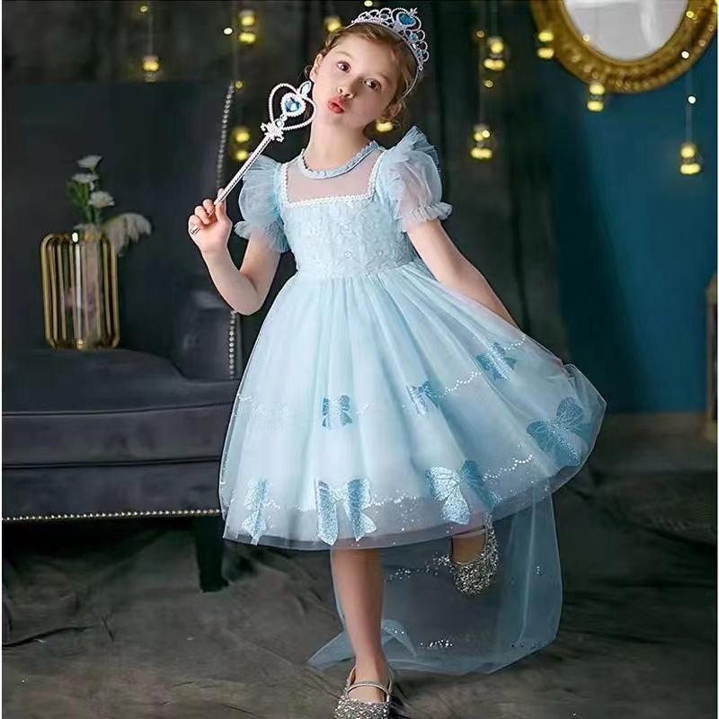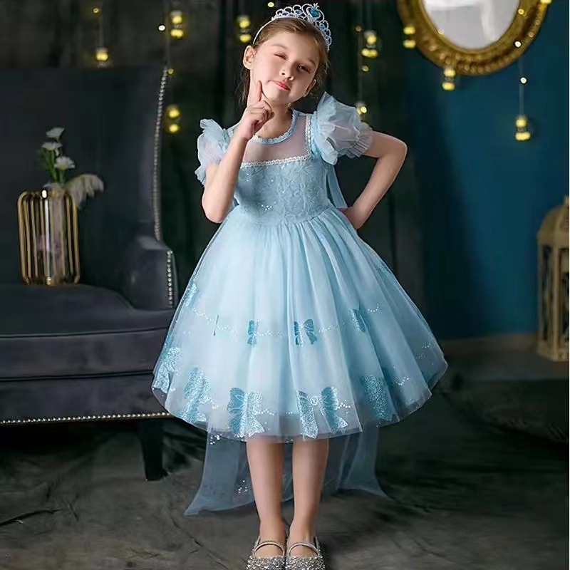 소녀 원피스 새로운 냉동 공주 엘사 원피스 어린이 푹신한 거즈 원피스 어린 소녀의 원피스