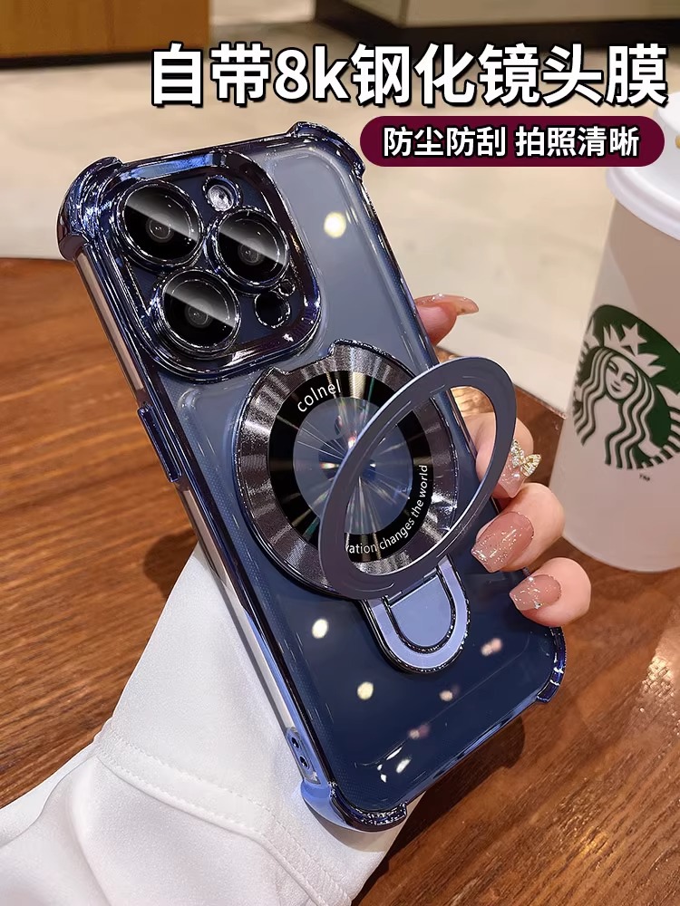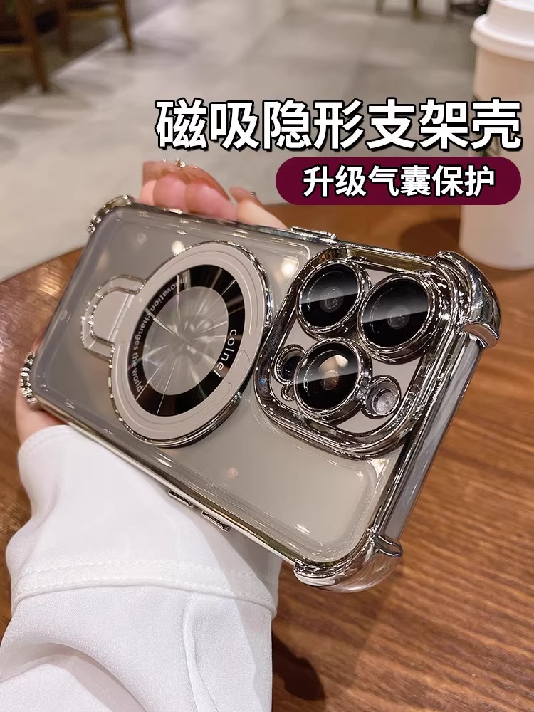아이폰 16E 휴대 전화 케이스 애플 16 전기 도금 공간 케이스 14 보호 커버 4 코너 낙하 방지 마그네틱 브래킷