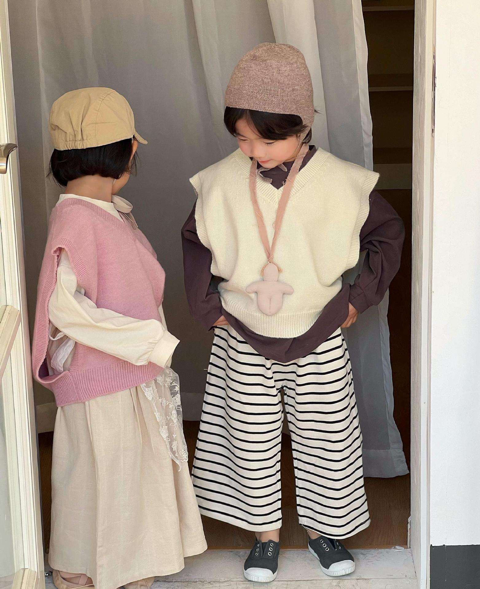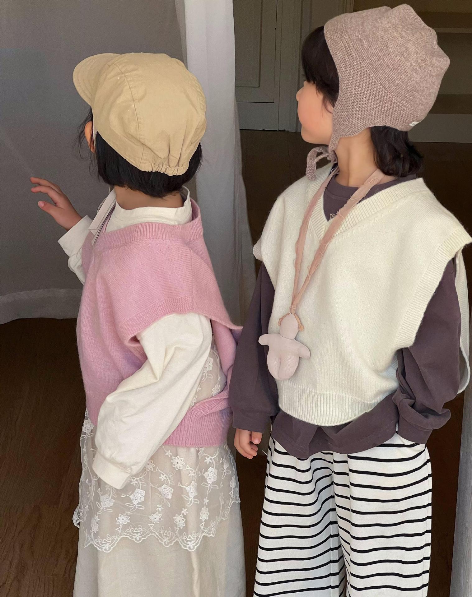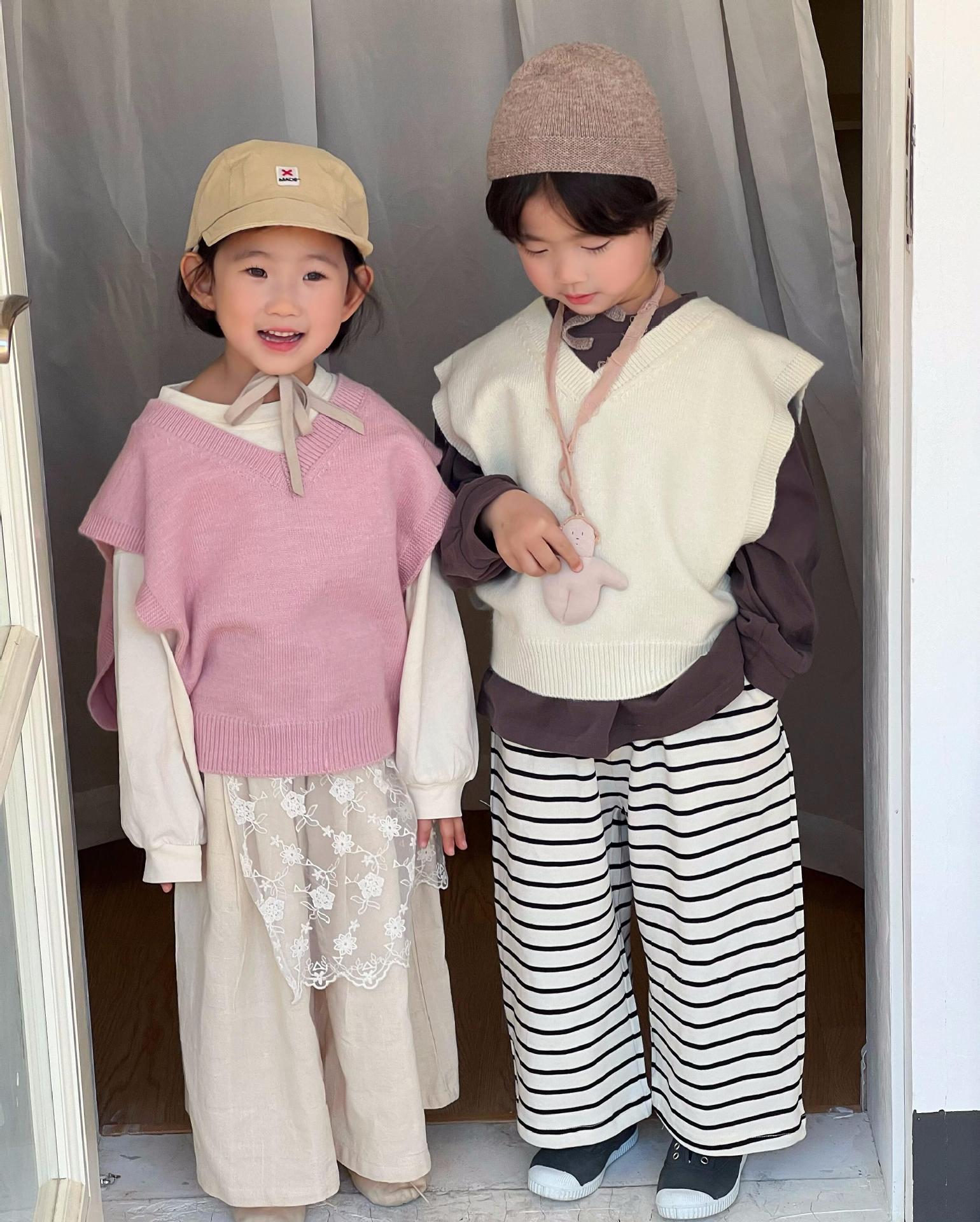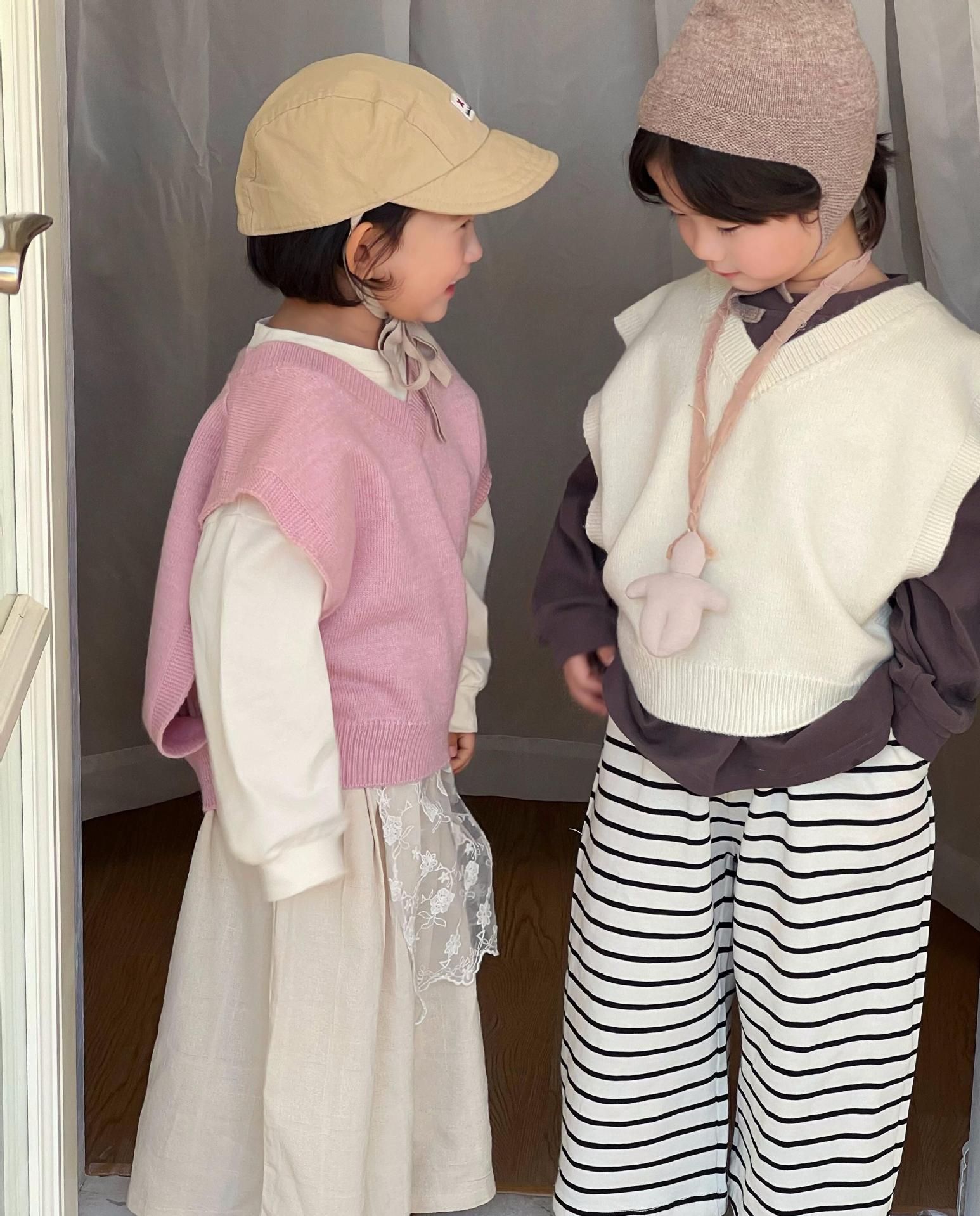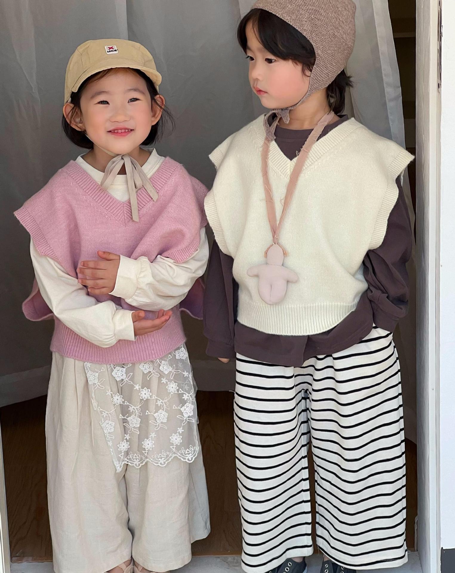 탑 에그 한국 아동복 2024 봄 새 소년 · 소녀 어린이 조끼 민소매 풀오버 양모 조끼 코트스토어 가기