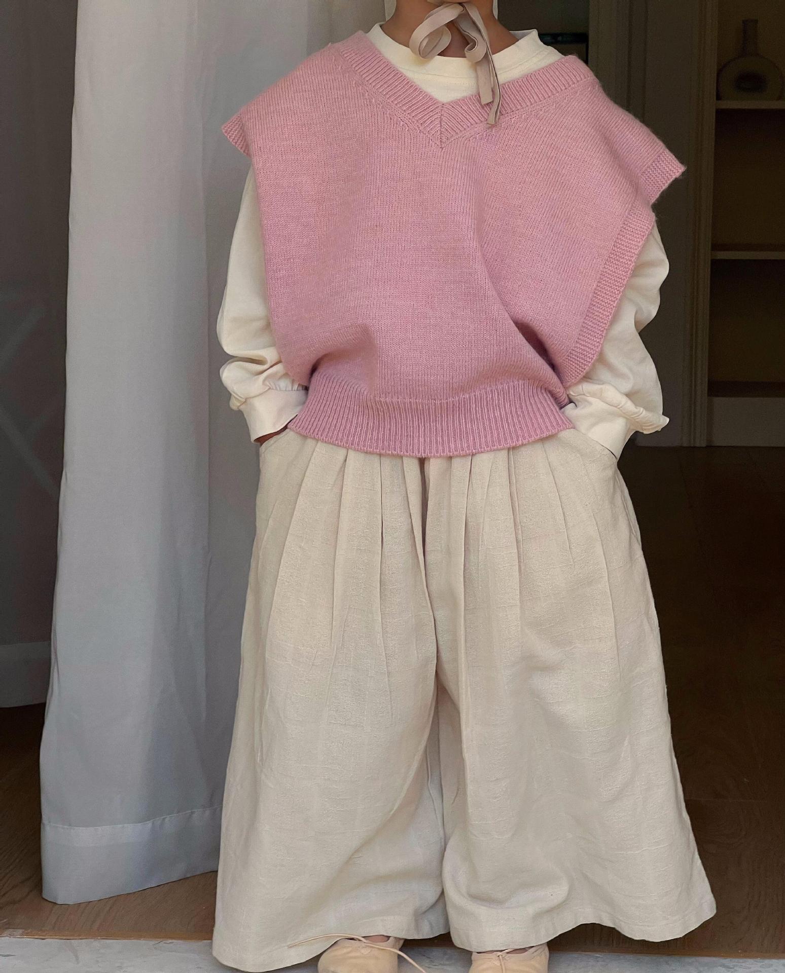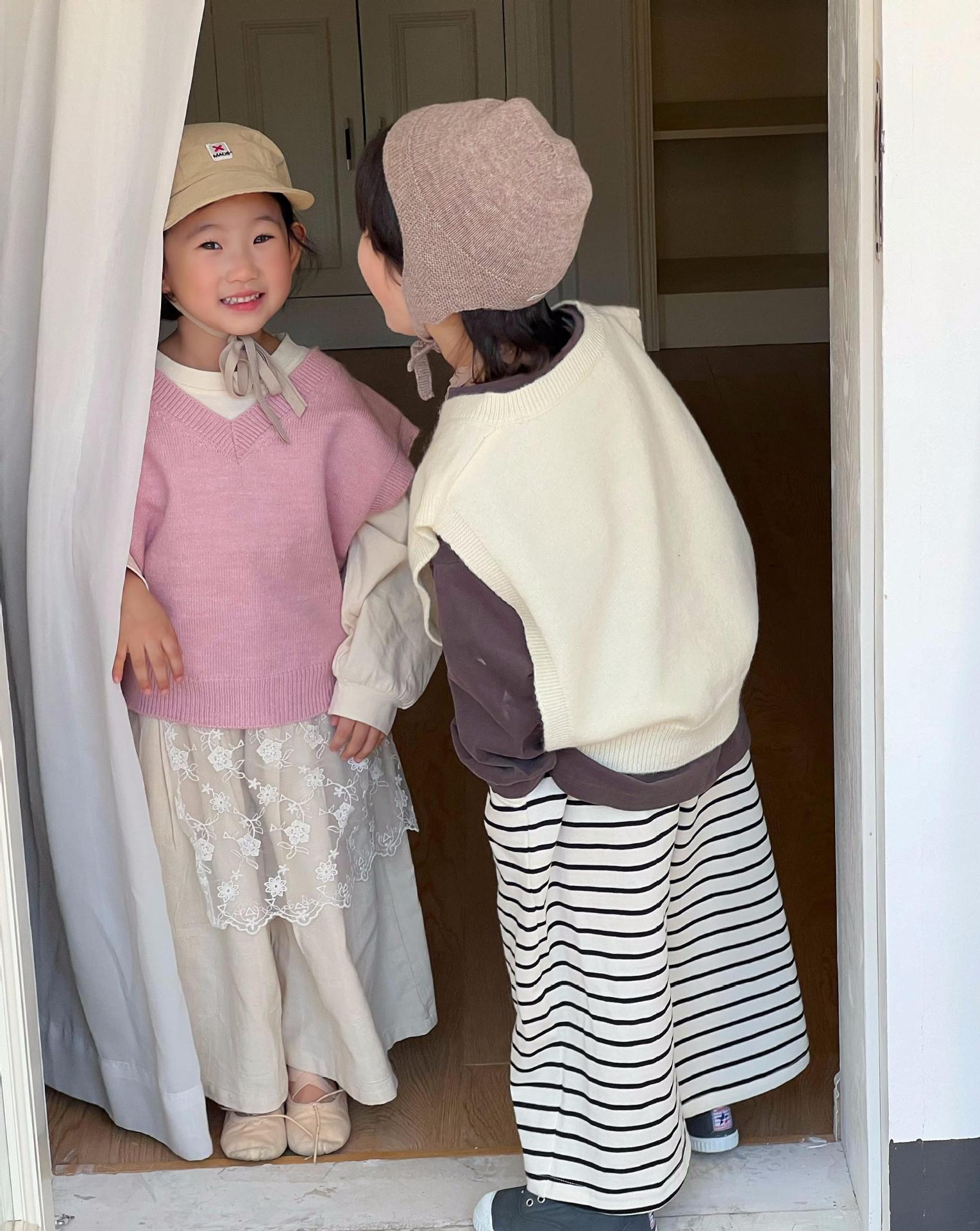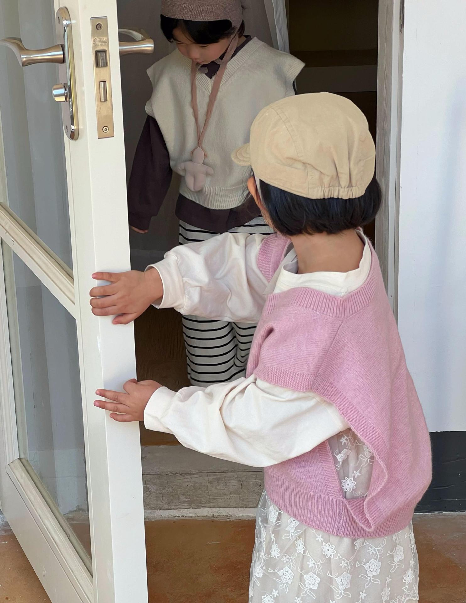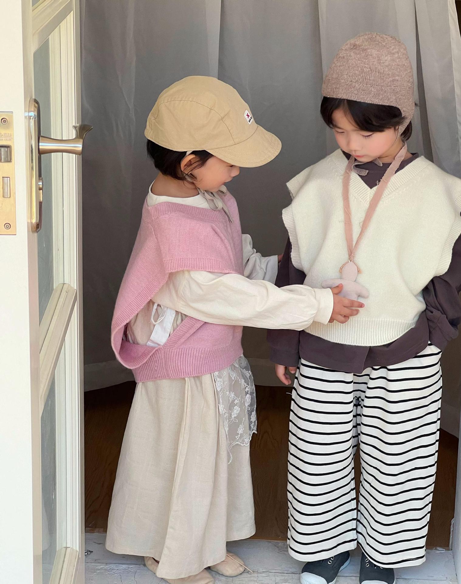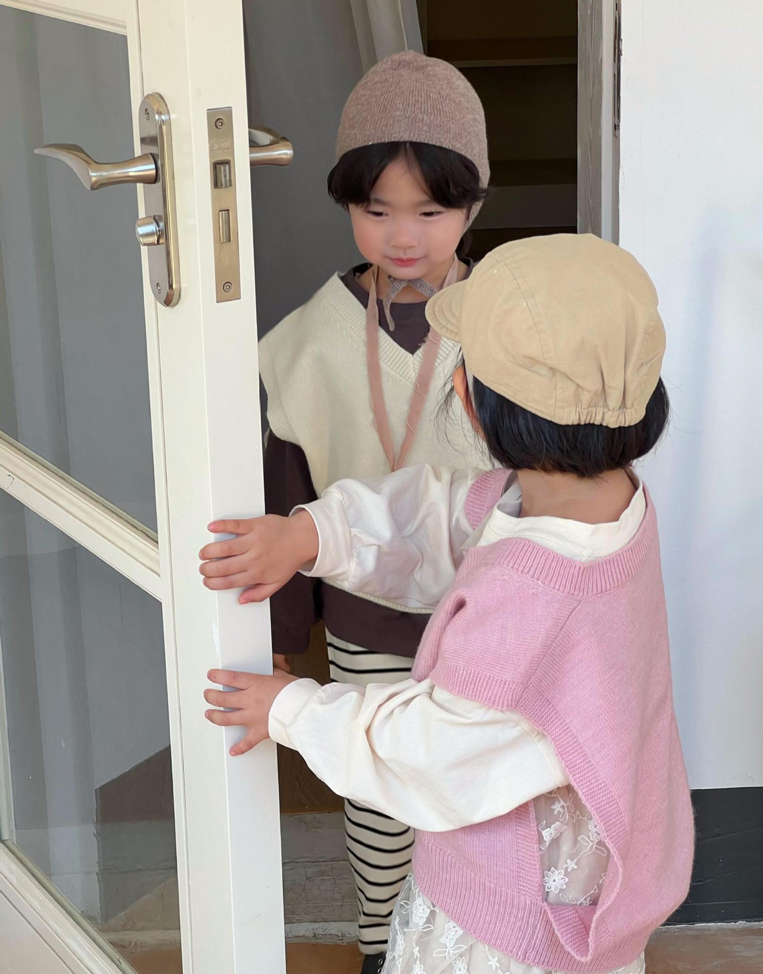 탑 에그 한국 아동복 2024 봄 새 소년 · 소녀 어린이 조끼 민소매 풀오버 양모 조끼 코트스토어 가기