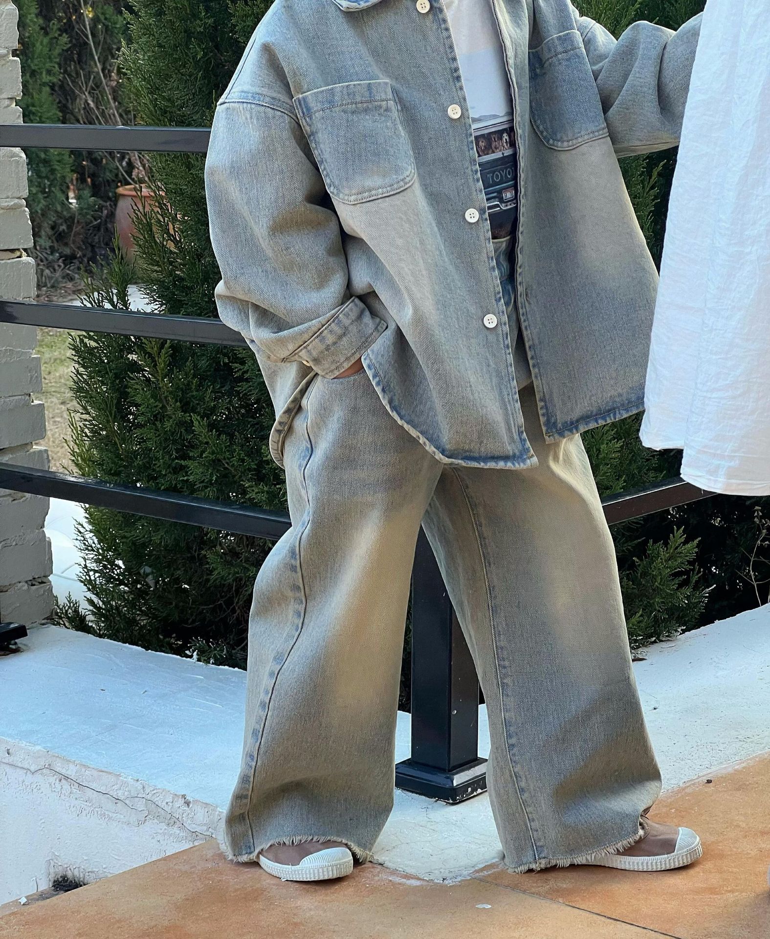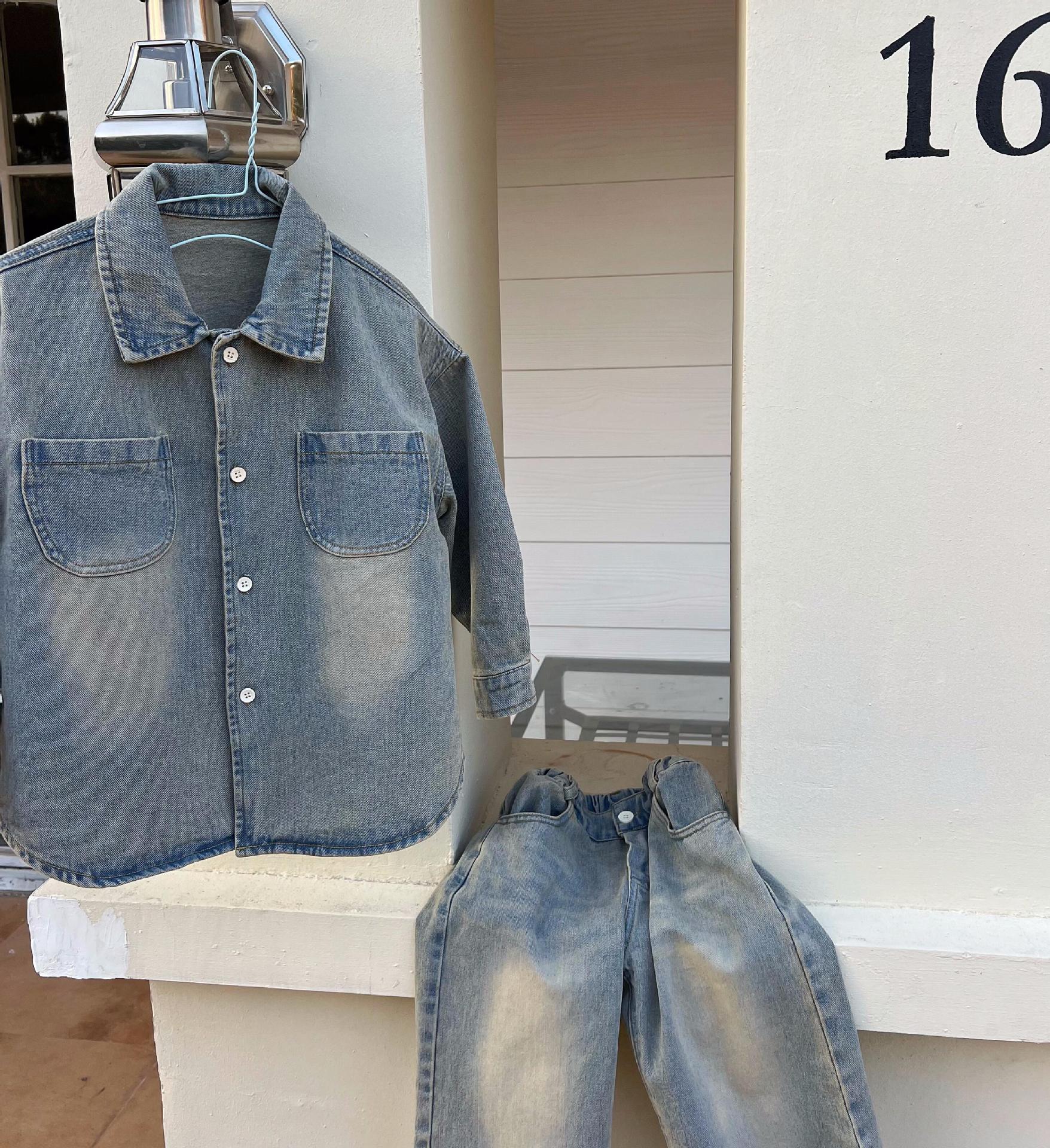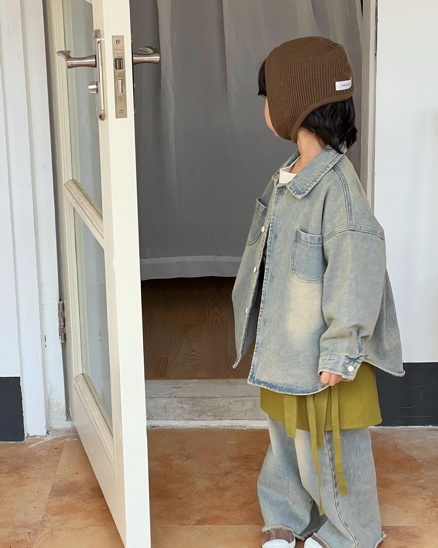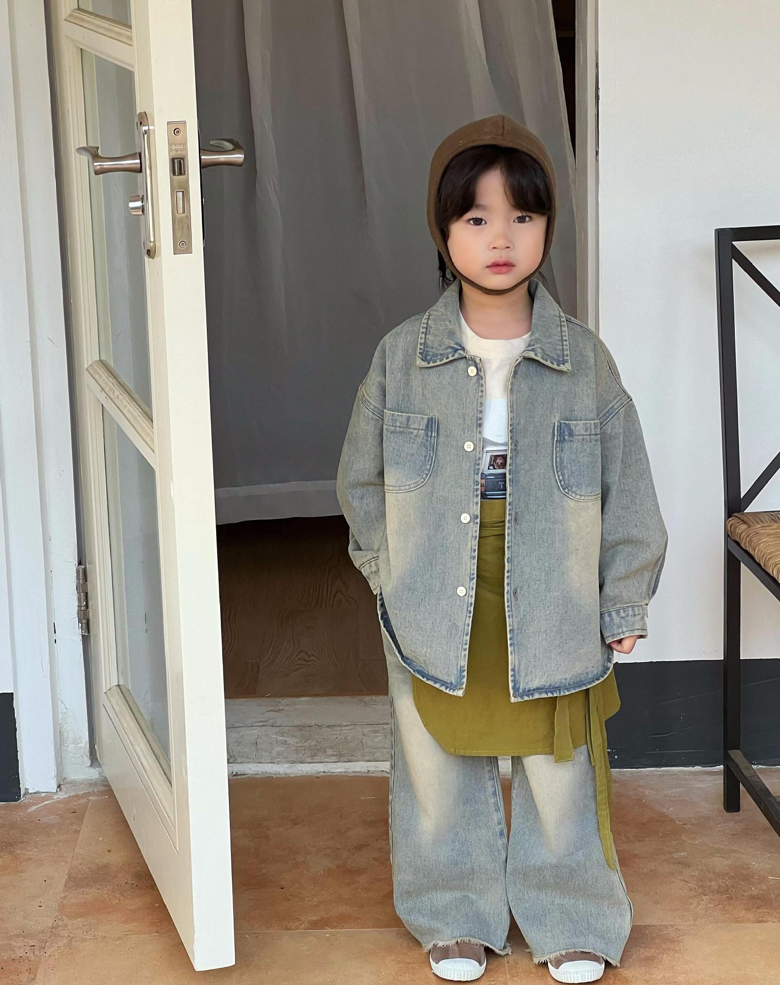 뾰족한 계란 한국 아동복 2024 봄 새 소년 소녀 데님 셔츠 복고풍 고민 데님 코트스토어 가기