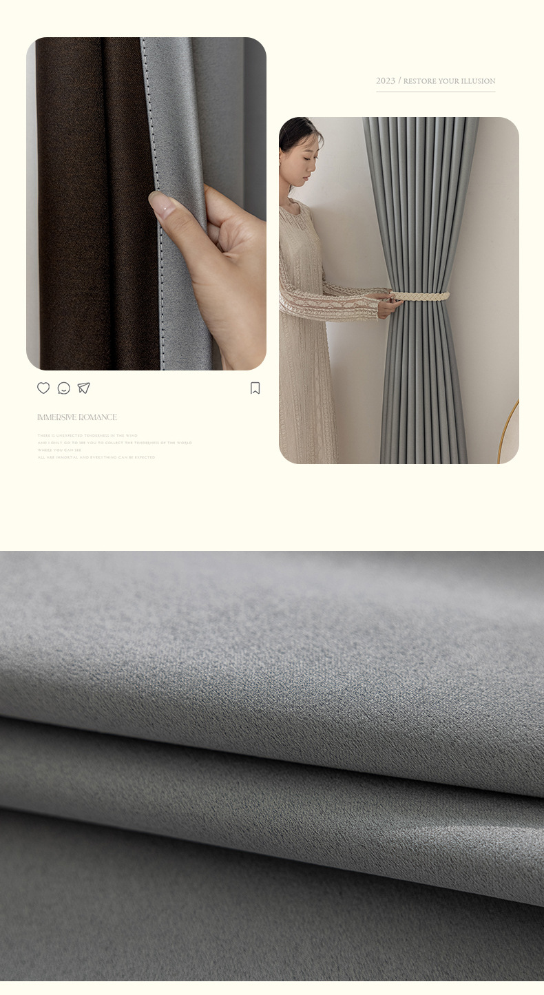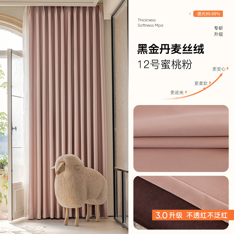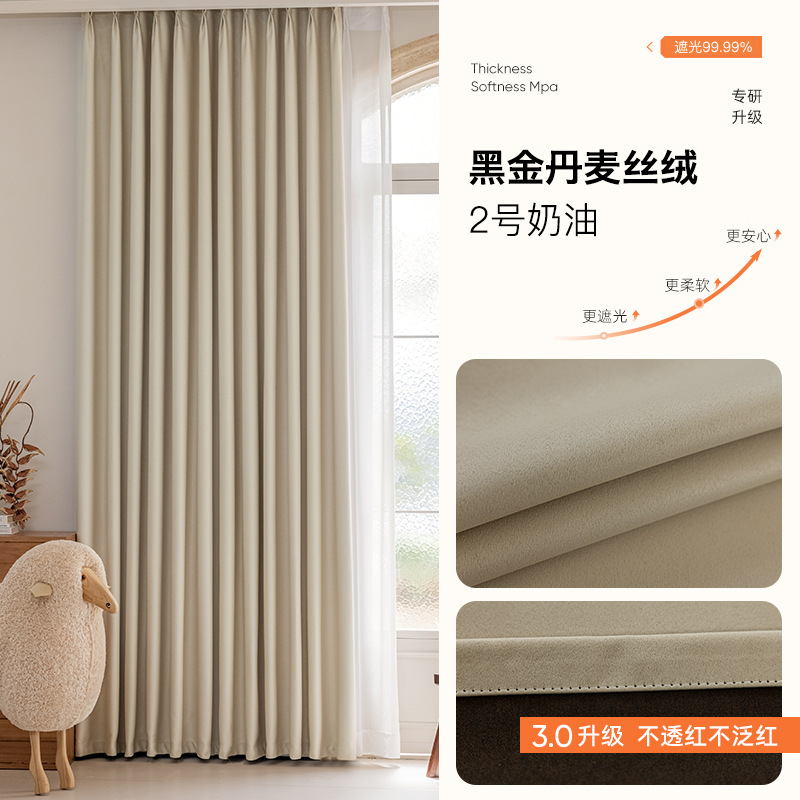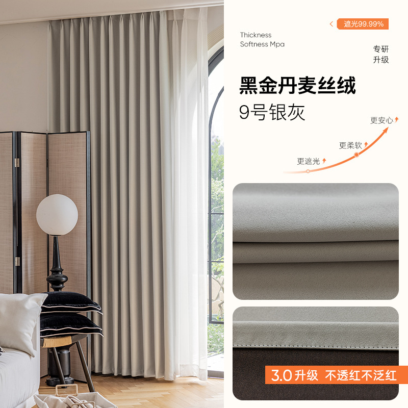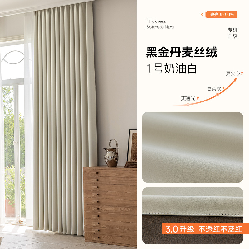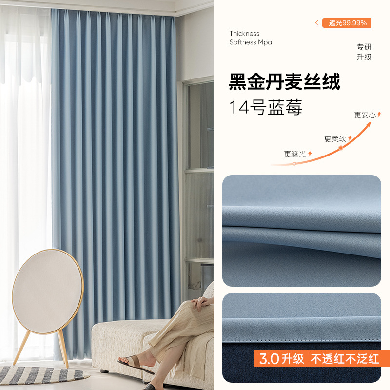 완전 암막 커튼, 단열, 항균, 라이트 럭셔리, 모던 심플, 붉은색 변색 없음, 거실 및 침실용, 셔닐 소재, 완제품, 코치아오스토어 가기