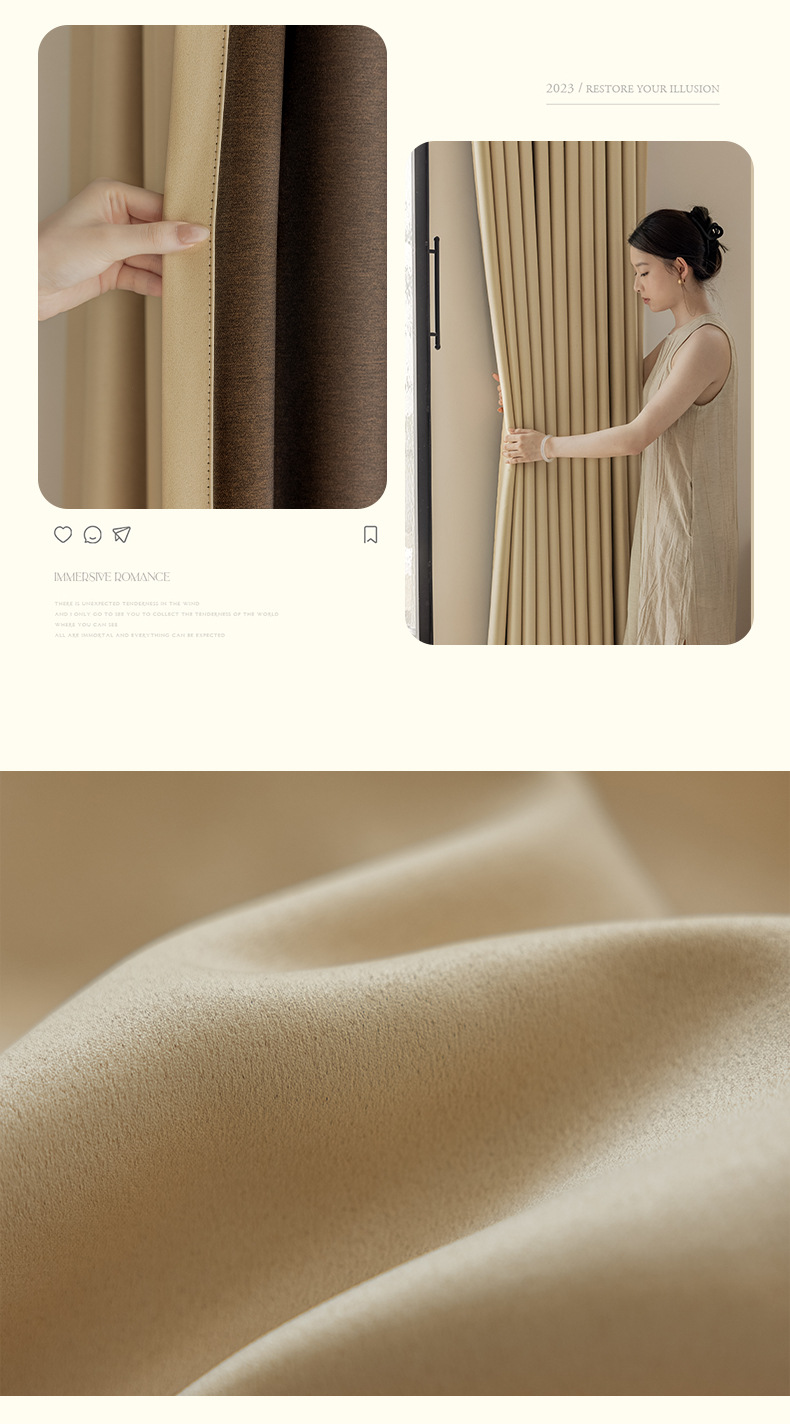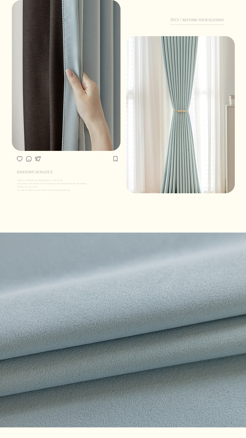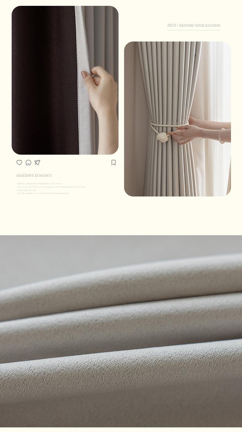 완전 암막 커튼, 단열, 항균, 라이트 럭셔리, 모던 심플, 붉은색 변색 없음, 거실 및 침실용, 셔닐 소재, 완제품, 코치아오스토어 가기
