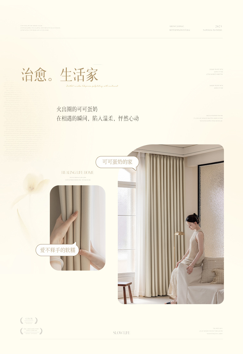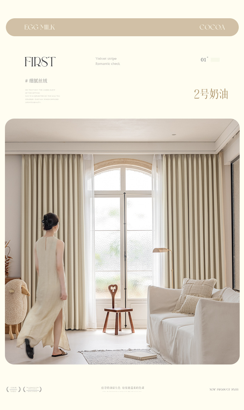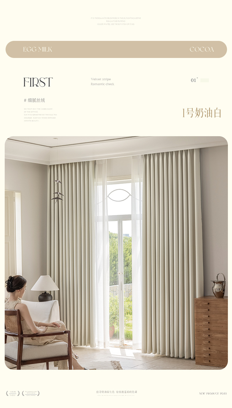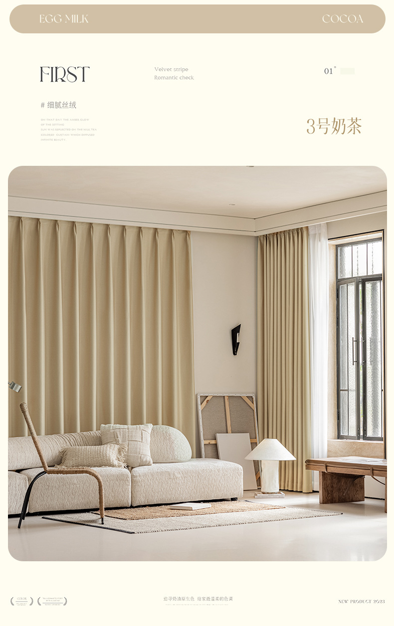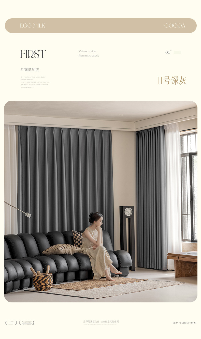 완전 암막 커튼, 단열, 항균, 라이트 럭셔리, 모던 심플, 붉은색 변색 없음, 거실 및 침실용, 셔닐 소재, 완제품, 코치아오