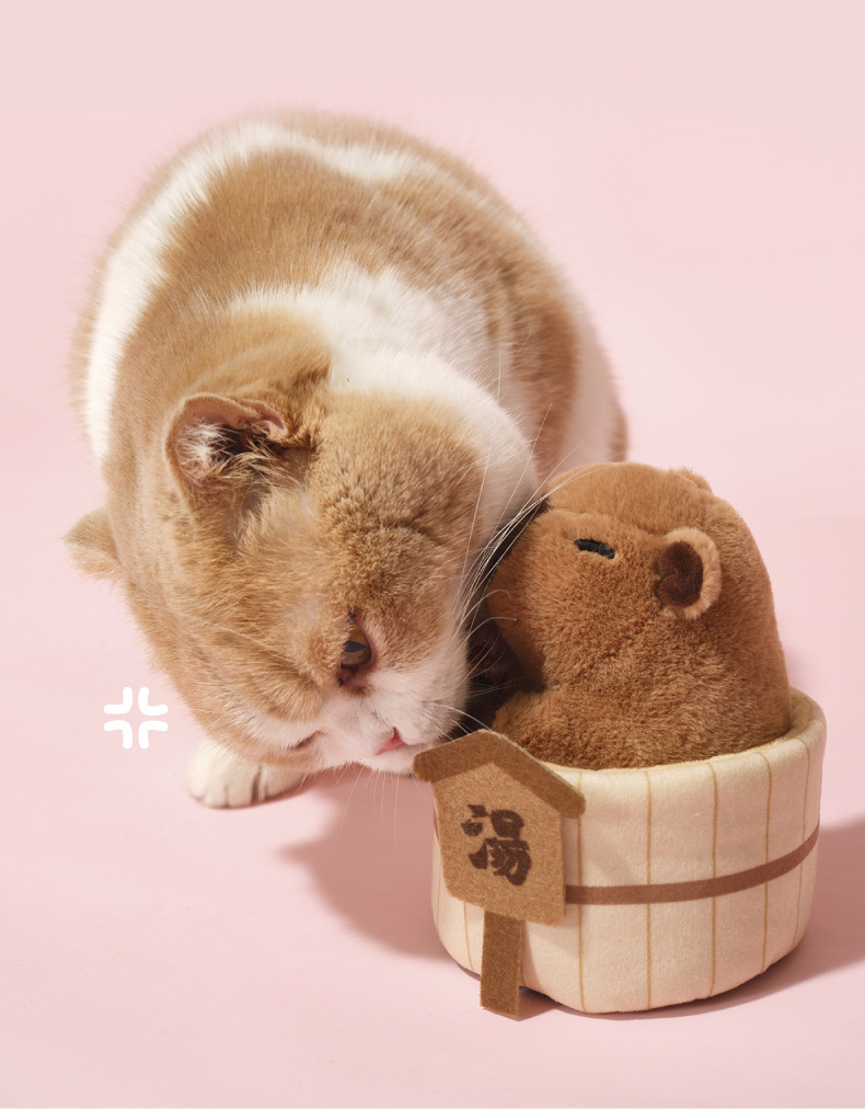 PurLab 퍼프 퍼프 실험실 Capybara 목욕 장난감 내장 벨 볼 캐즈닙 숨겨진 식품 장식품 애완 동물 용품스토어 가기