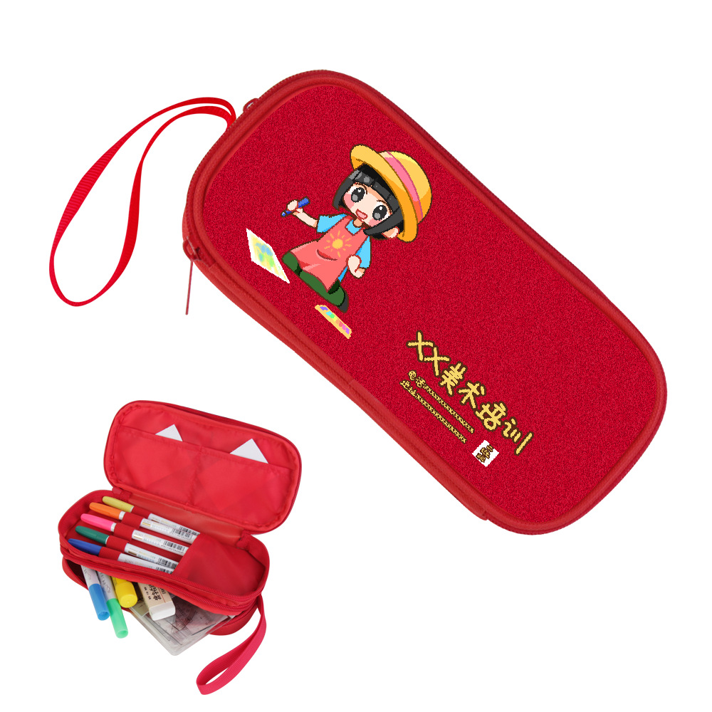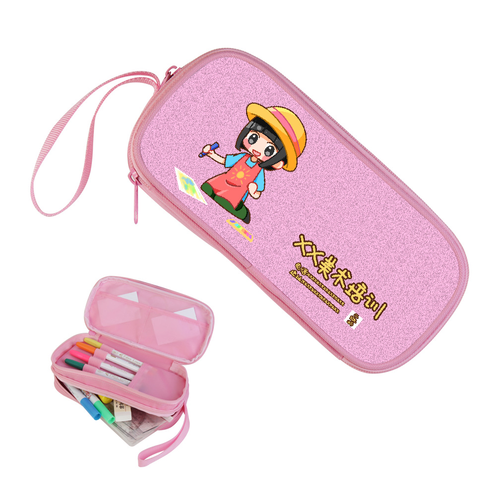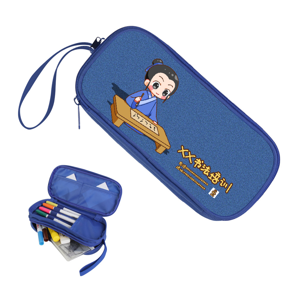 艺校礼品 学生笔袋 (2).jpg应广大客户的需求,库博箱包新推出带手提带笔槽的双层拉链笔袋。涤纶材质,四色可选,正面带有胶骨更立体。弹性好,结实耐用,不易变形,内含分层设计,带有笔槽,内贴暗袋。文具轻松收纳。一袋搞定,桌面更整洁。双层容量大,精致拉链,轻轻拉开拉链,我司支持小批量定制,私人专属图案(人物照片,品牌LOGO、植物风景、卡通动漫等)随意搭配。