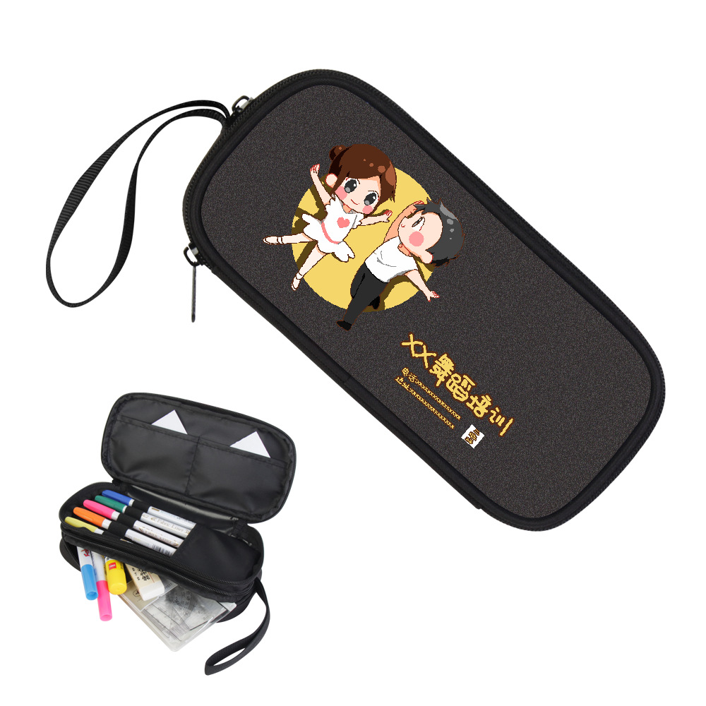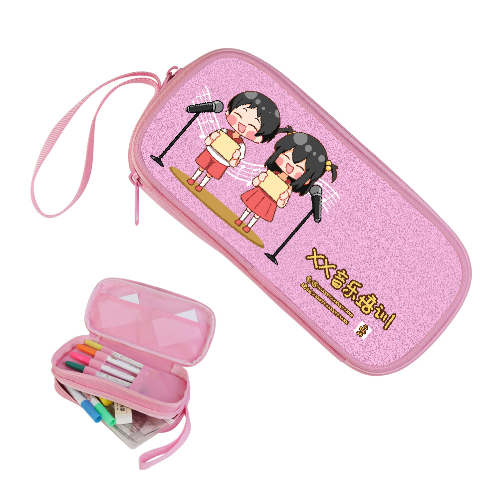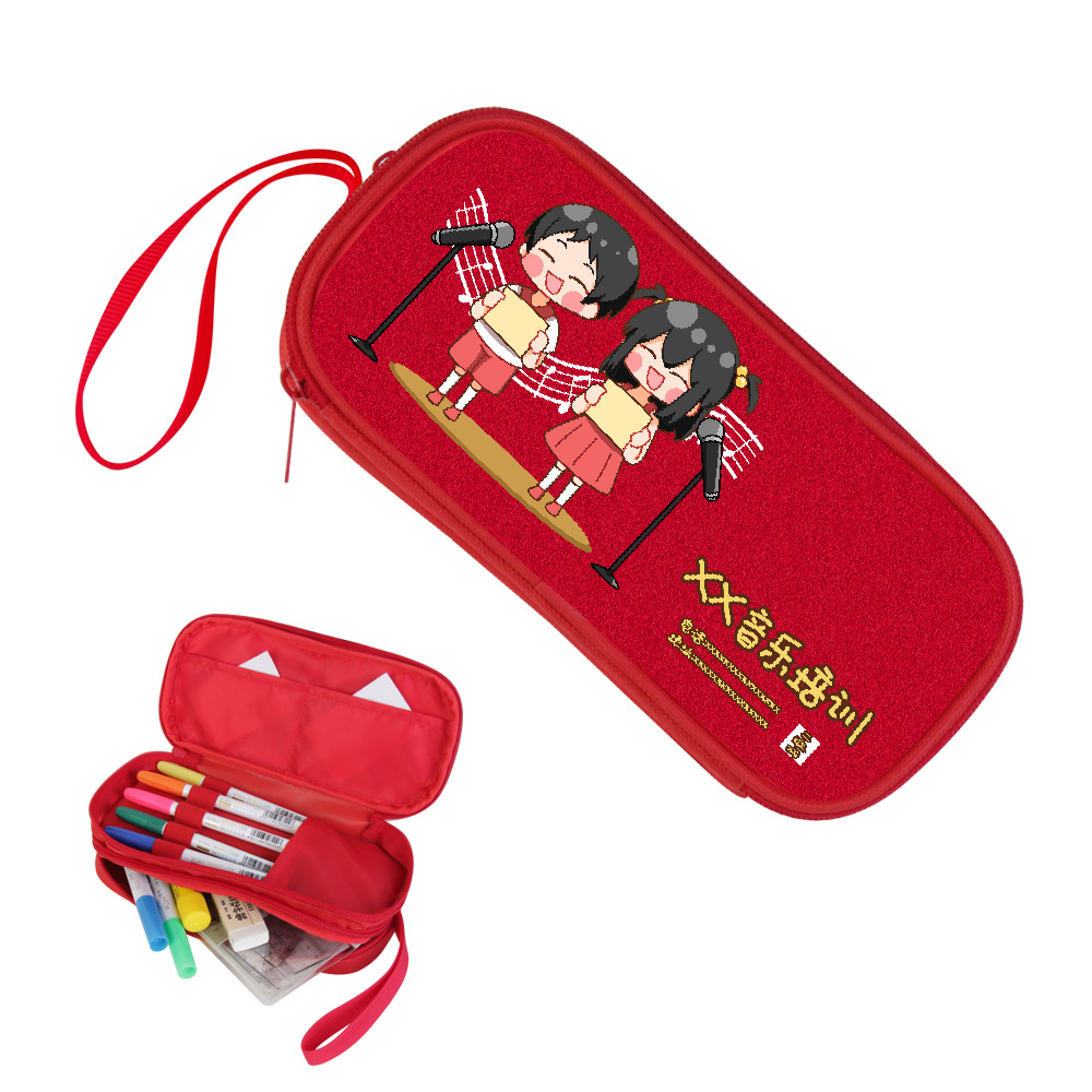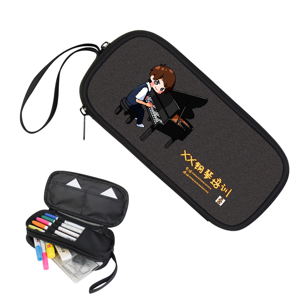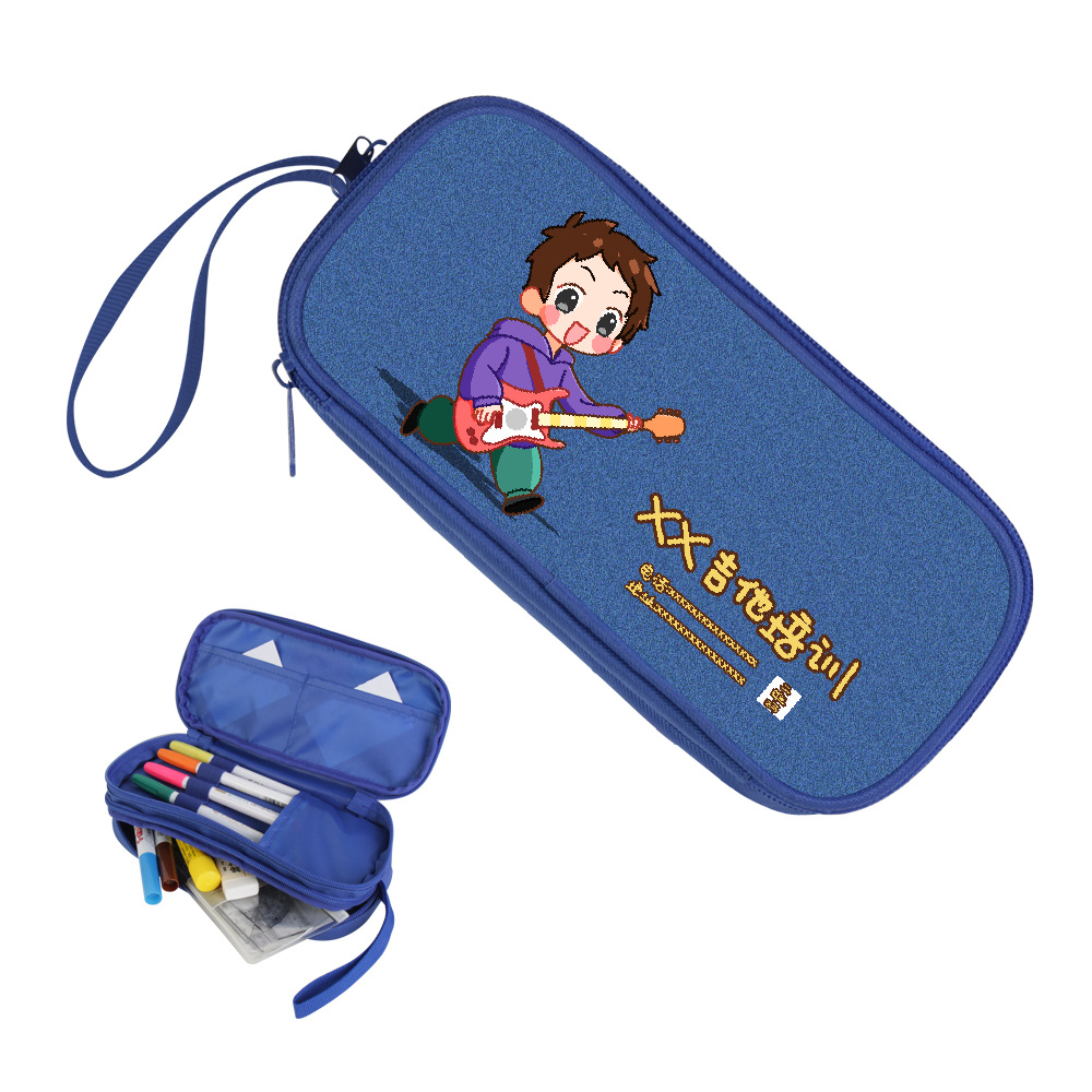 초중등 학생 선물 광고 더블 레이어 연필 케이스 보컬 음악 교육 기관 문구 용 로고를 인쇄하는 휴대용 연필 케이스스토어 가기