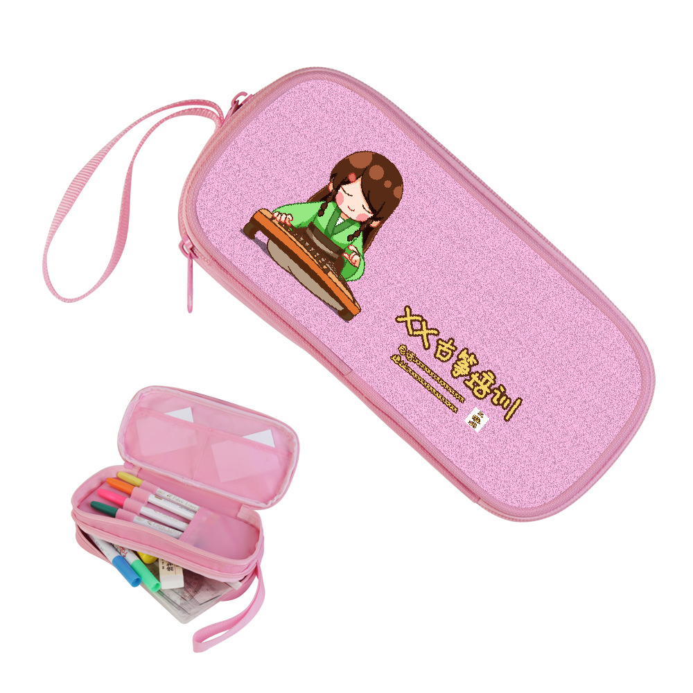 手提双层笔袋 来图logo定制 古筝艺术培训机构广告招生宣传礼品