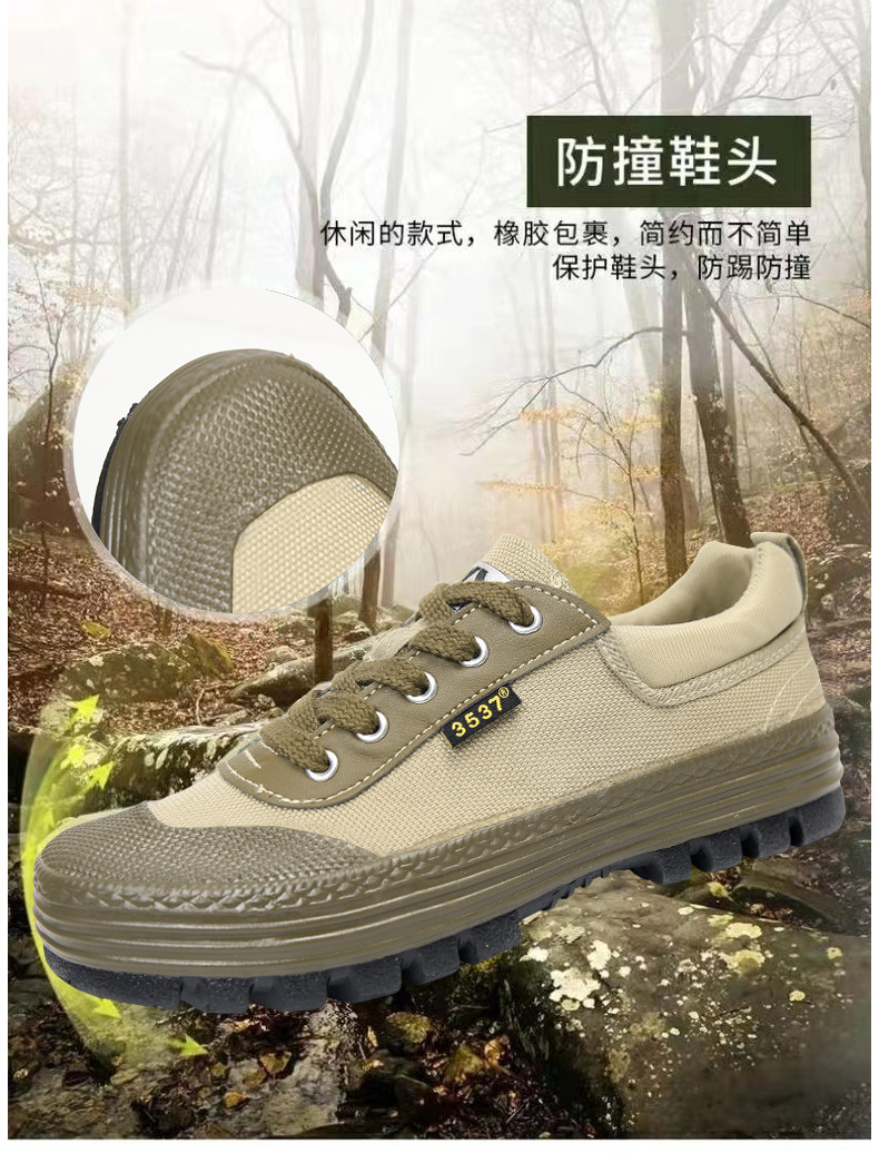3537 정품 Jiefang 신발 남성과 여성의 등산 내마모성 작업 신발 건설 현장 노란색 고무 신발 캐주얼 캔버스 노동 신발