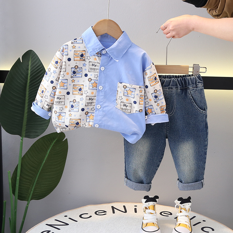 소년 캐주얼 세트 봄 옷 2024 새로운 어린이 서양식 만화 셔츠 긴 소매 봄 가을 패션 옷스토어 가기