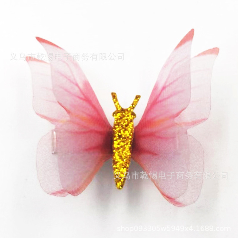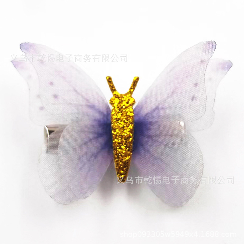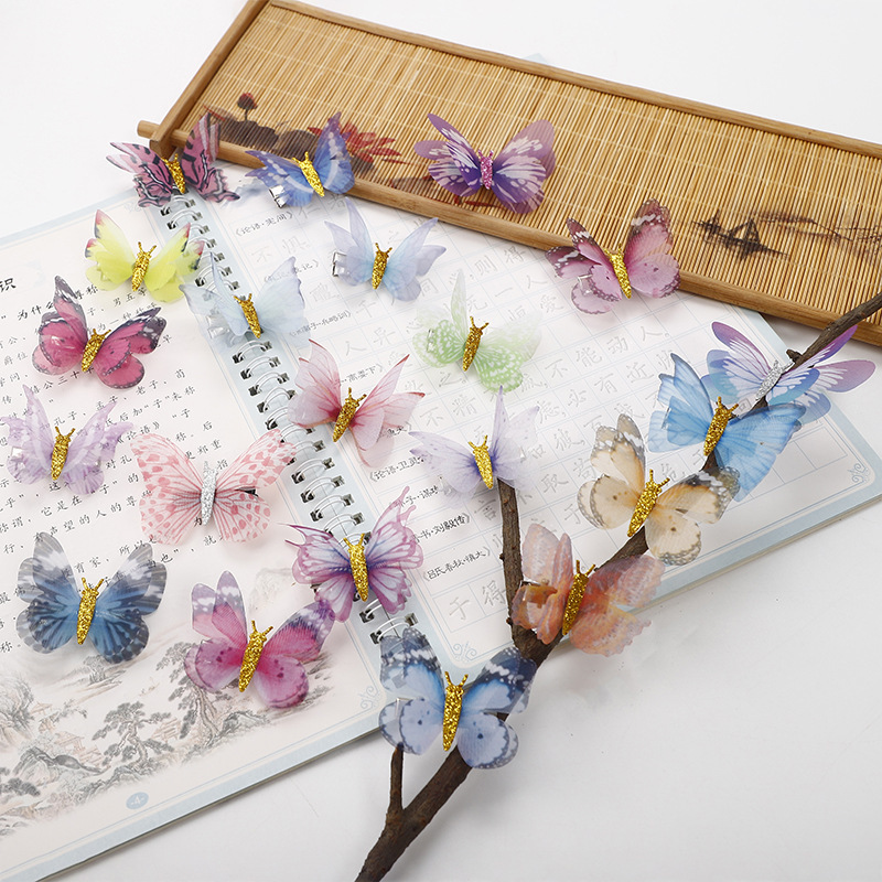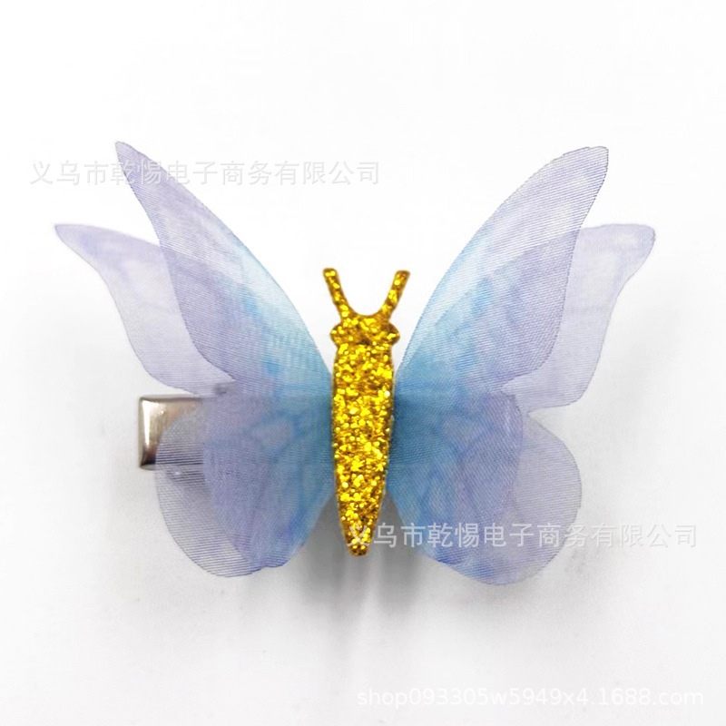 2026년 신상 요정풍 이중 레이어 입체 얇은 거즈 나비 머리핀, 고풍 헤어 액세서리, 요정같은 어린이용 금속 헤어핀 장식품스토어 가기
