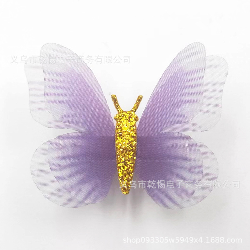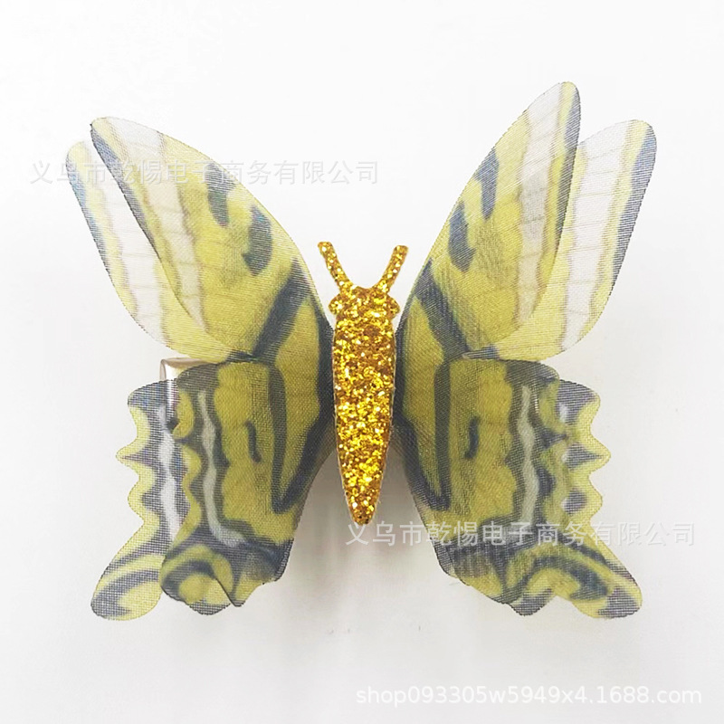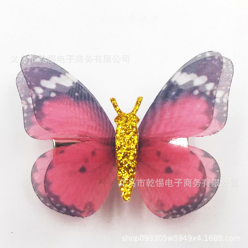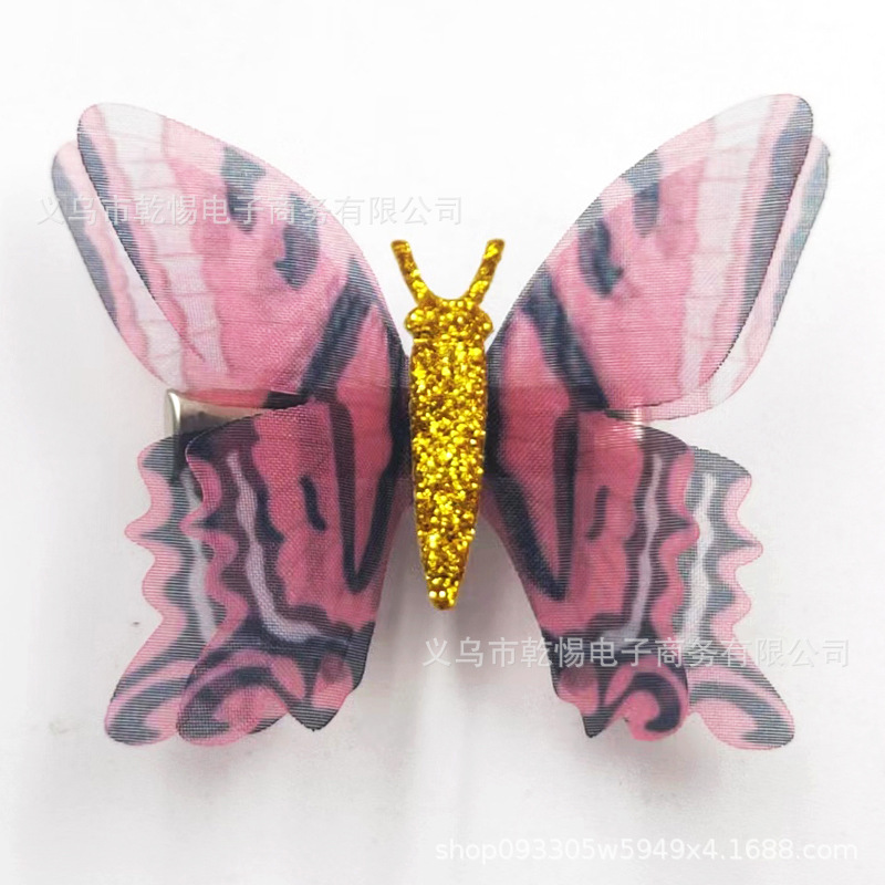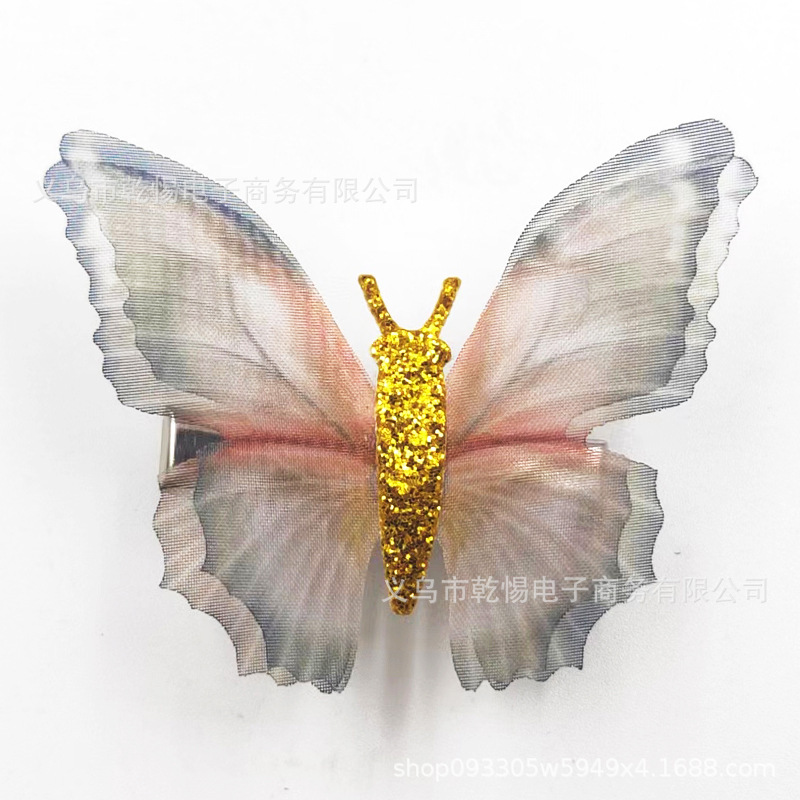 2026년 신상 요정풍 이중 레이어 입체 얇은 거즈 나비 머리핀, 고풍 헤어 액세서리, 요정같은 어린이용 금속 헤어핀 장식품