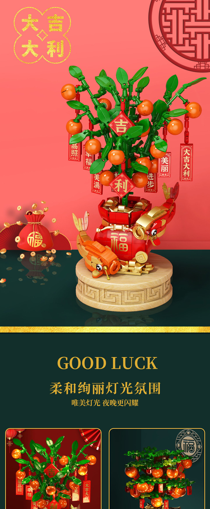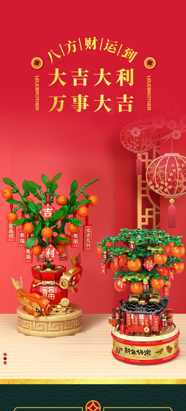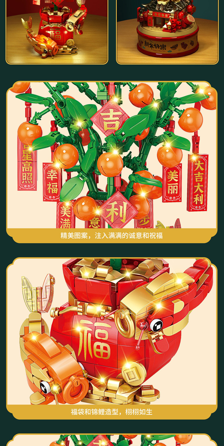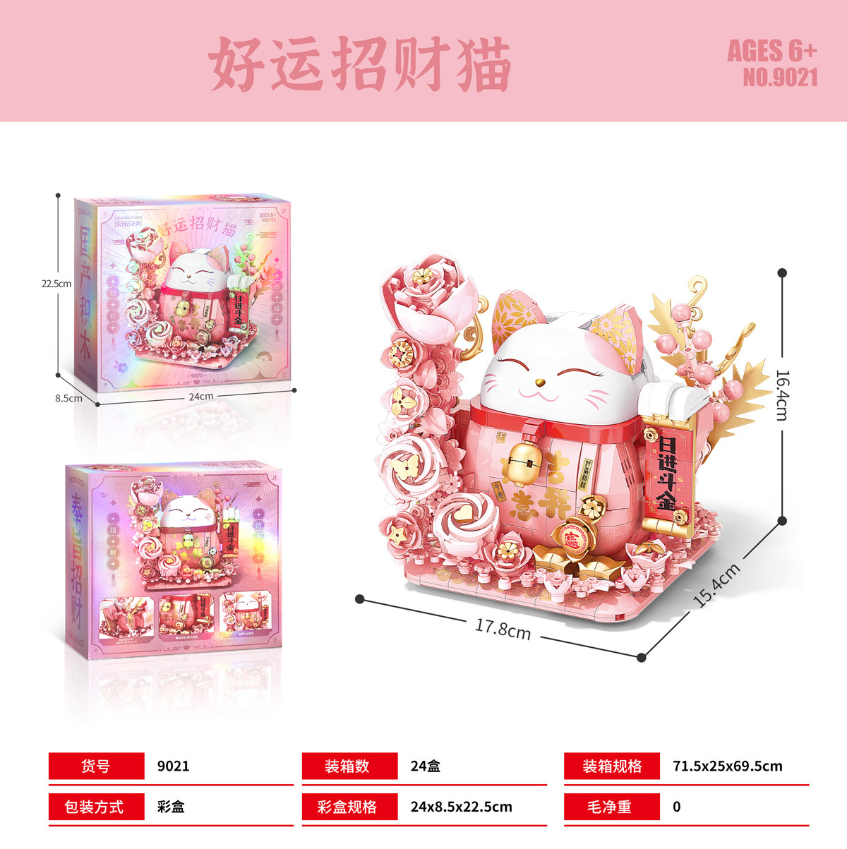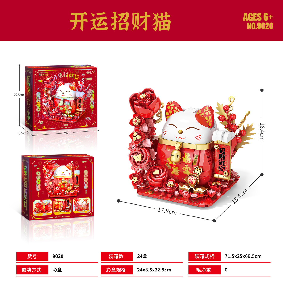 작은 입자 건물 블록 새해 선물 상자 행운의 장식 행운의 고양이 장난감 호환 레고 도매 음악 상자스토어 가기