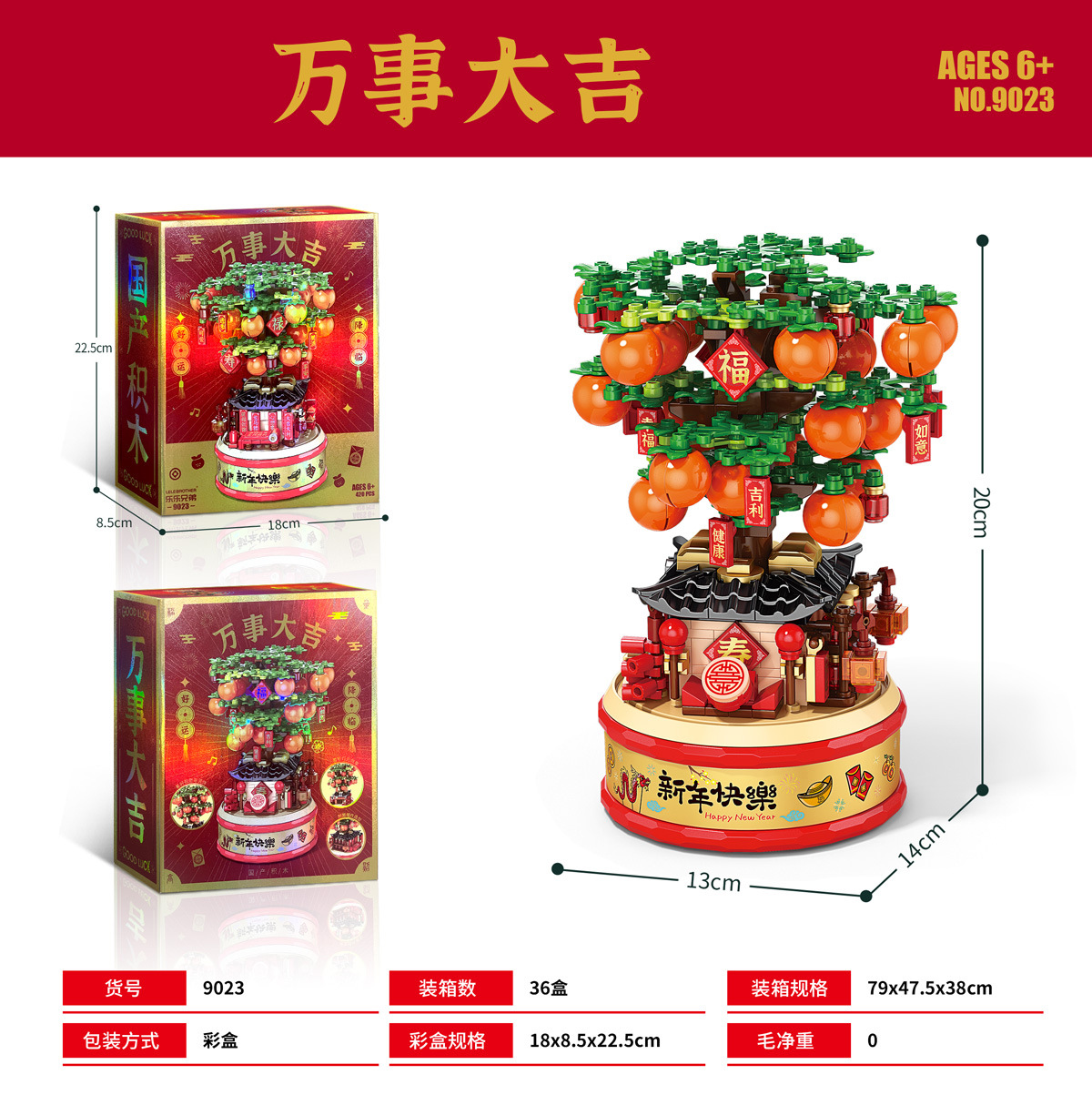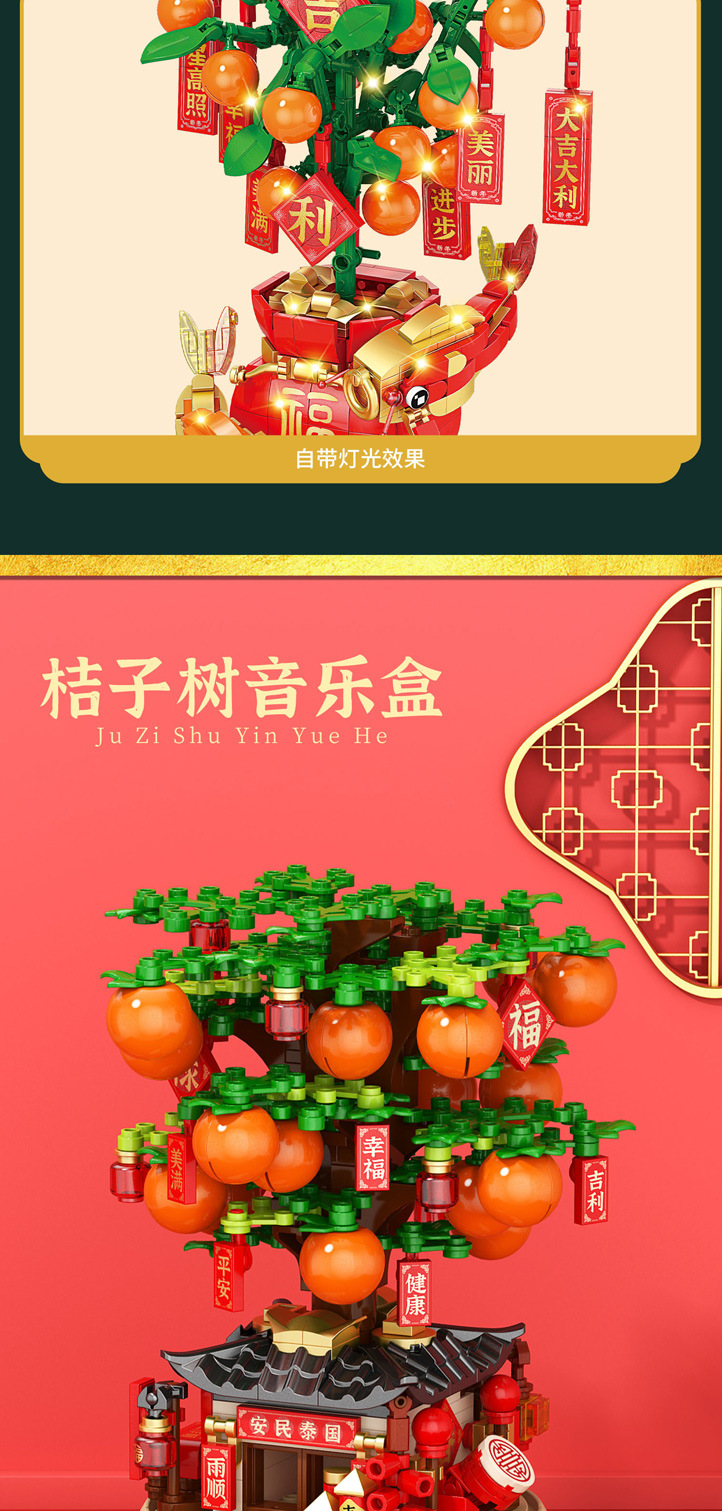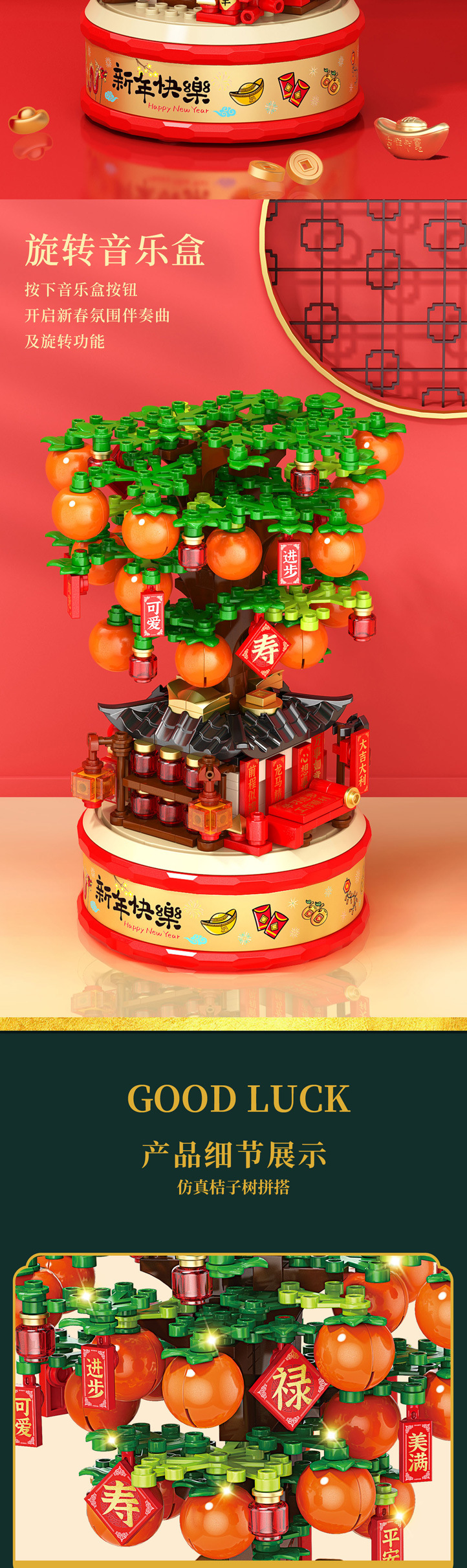 작은 입자 건물 블록 새해 선물 상자 행운의 장식 행운의 고양이 장난감 호환 레고 도매 음악 상자