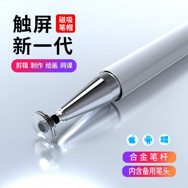 2 대 1 필기 터치 펜 투명 흡입 컵 6.0 전도성 천 헤드 범용 자기 용량 성 스타일러스 터치 스크린