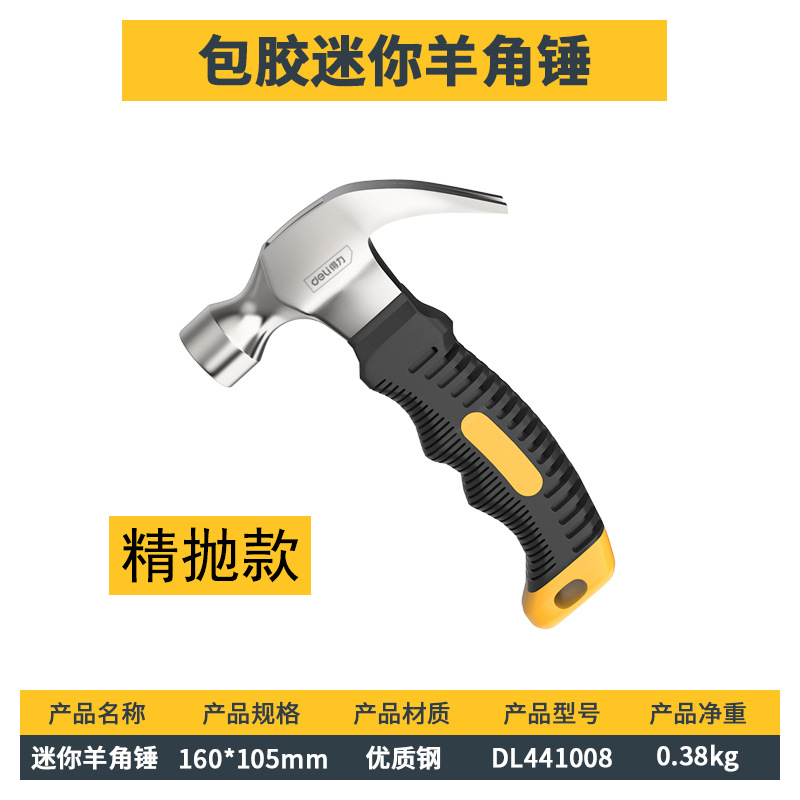 Deli는 접착제 미니 클로 호른 해머 라운드 헤드 해머 미끄럼 방지 높은 경도 내구성 목공 해머로 코팅 된 목공 손잡이를 걸 수 있습니다.스토어 가기