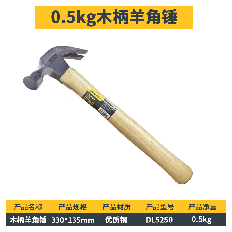 • 0.5kg 탄소 강철 나무 손잡이 클로 망치