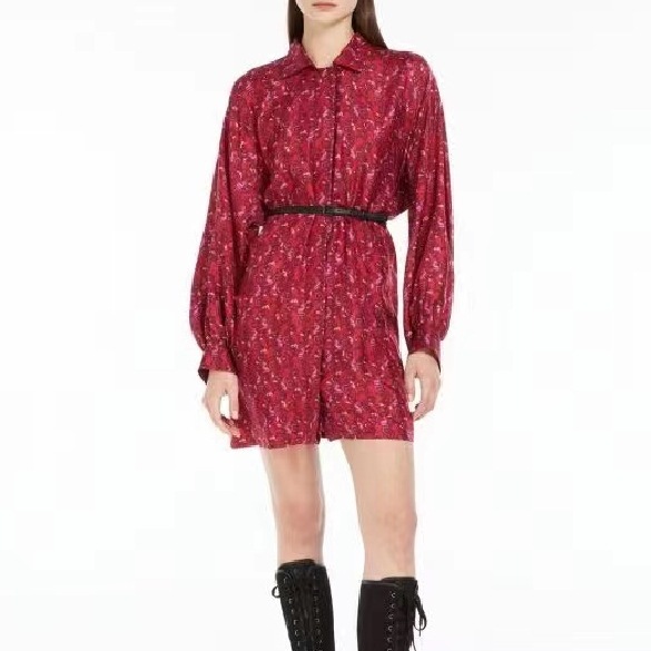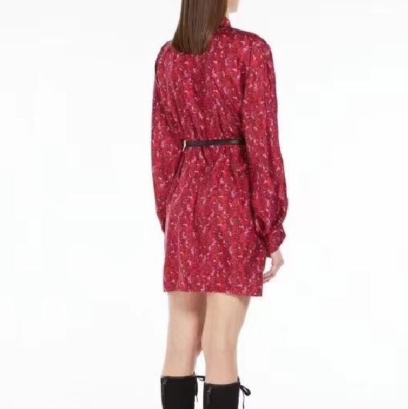 MAX 가벼운 고급 고급 실크 셔츠 벨트 원피스 2024 이른 봄 새 옷깃 긴팔 원피스스토어 가기