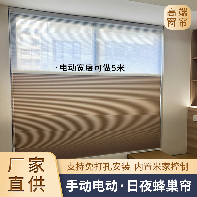 크로스보더 주야간 벌집형 커튼, 구슬형 상하 조절, 무타공, 차광, 접이식 커튼, 호텔용 이중 전동 미지아 커튼