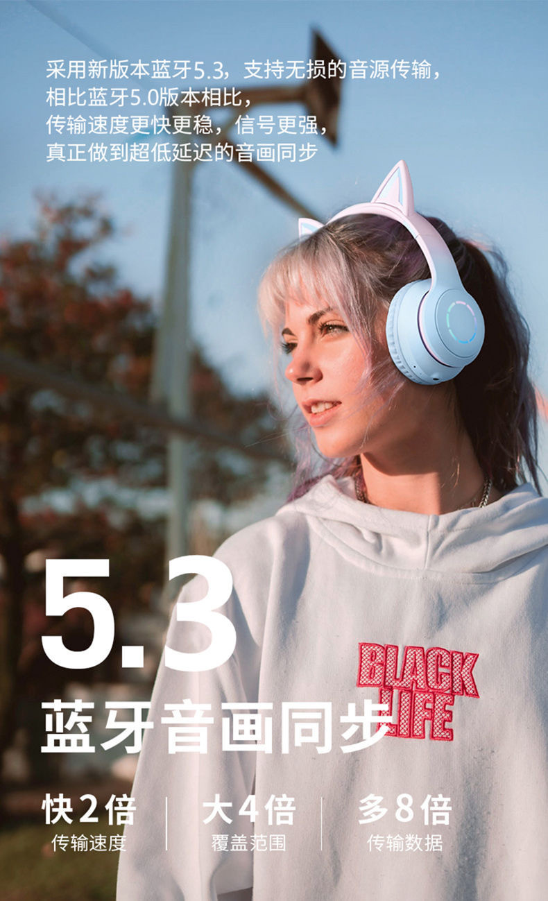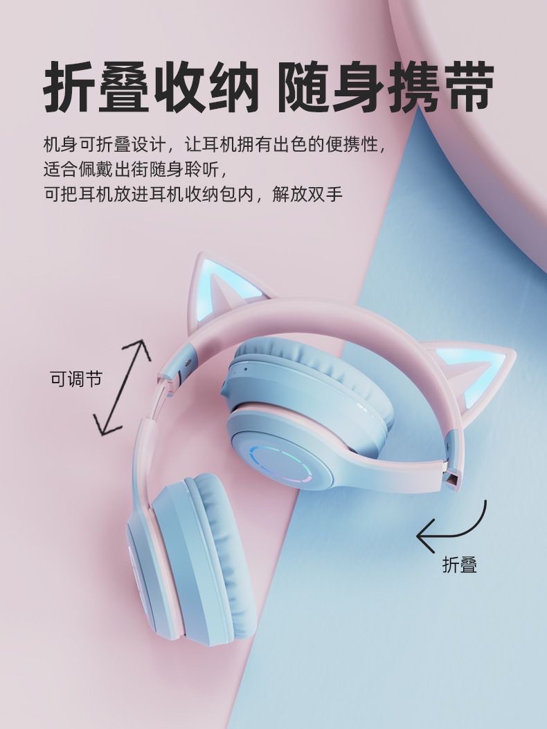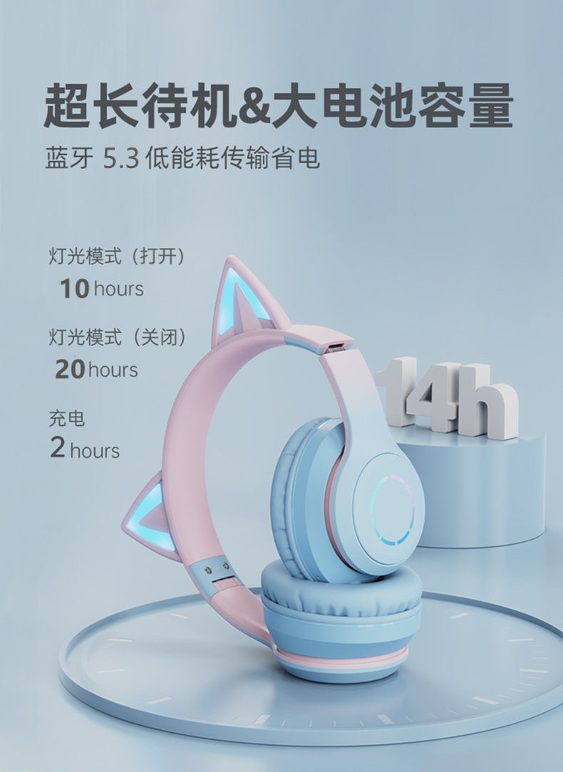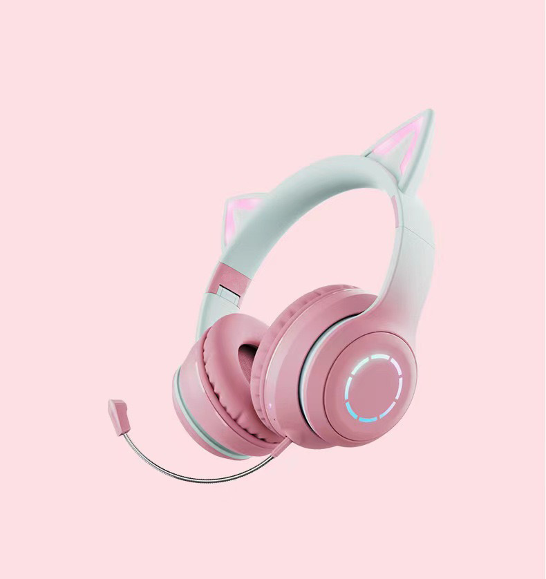 [신간] 국경 발광 고양이 귀 헤드셋 블루투스 헤드셋 외부 마이크 그라디언트 컬러 게임 헤드셋