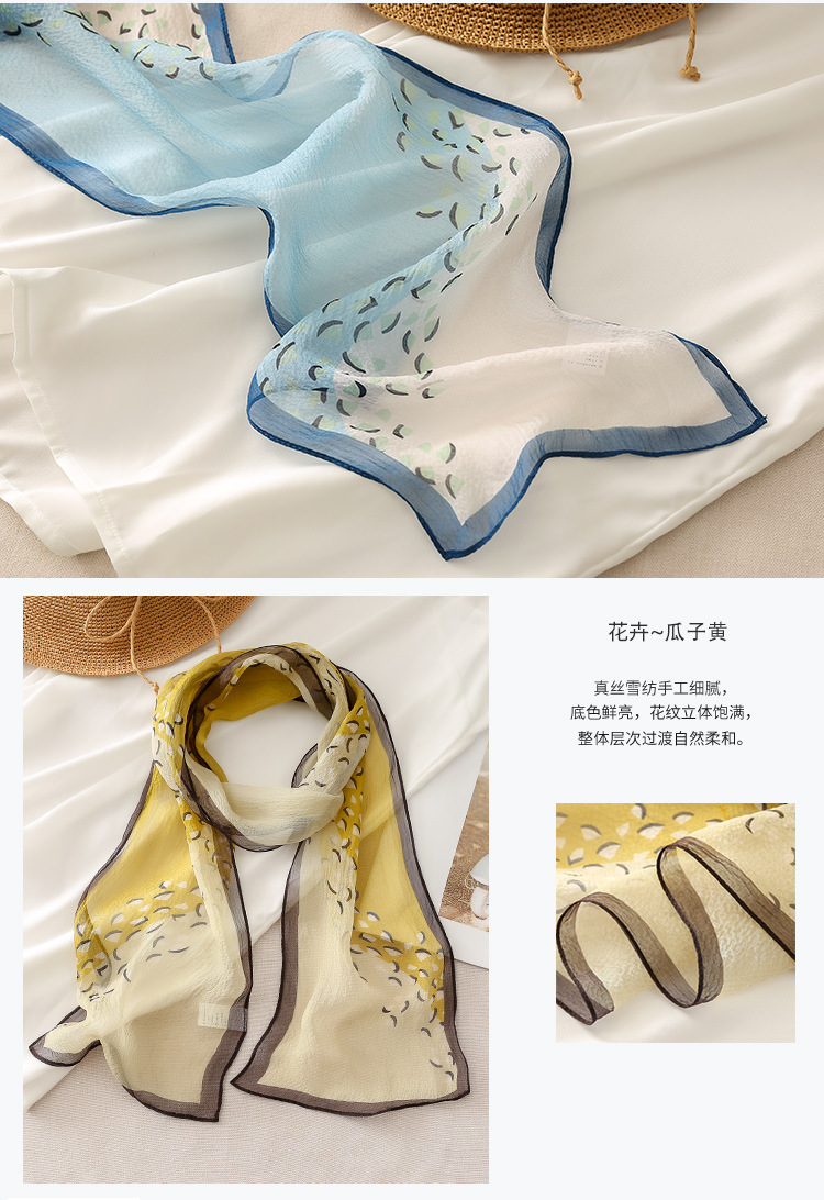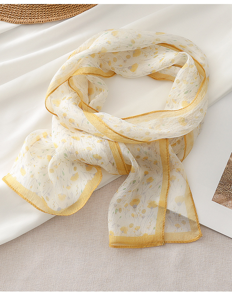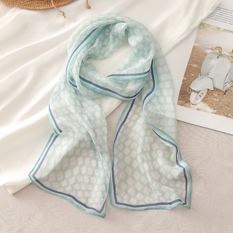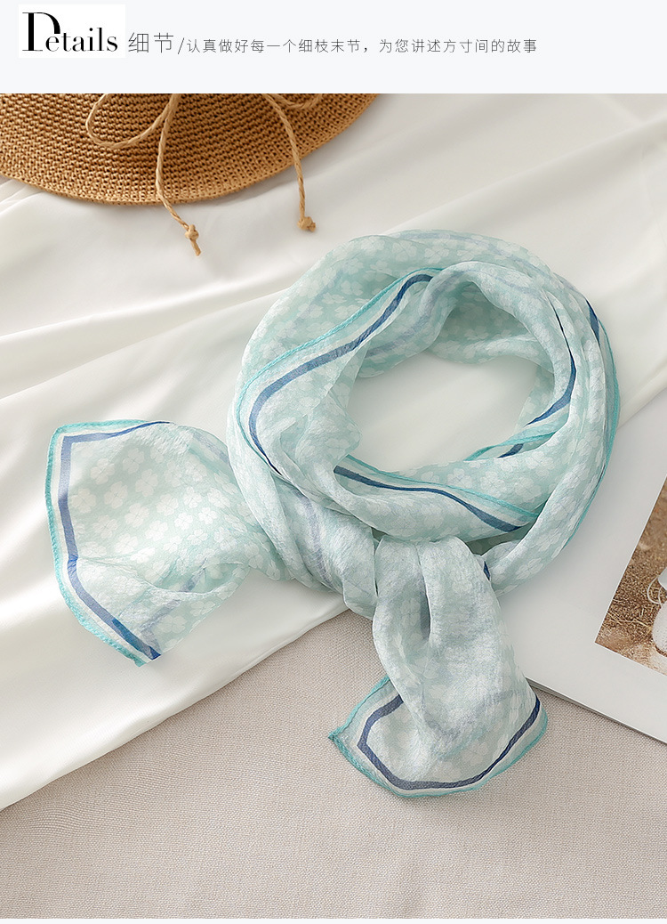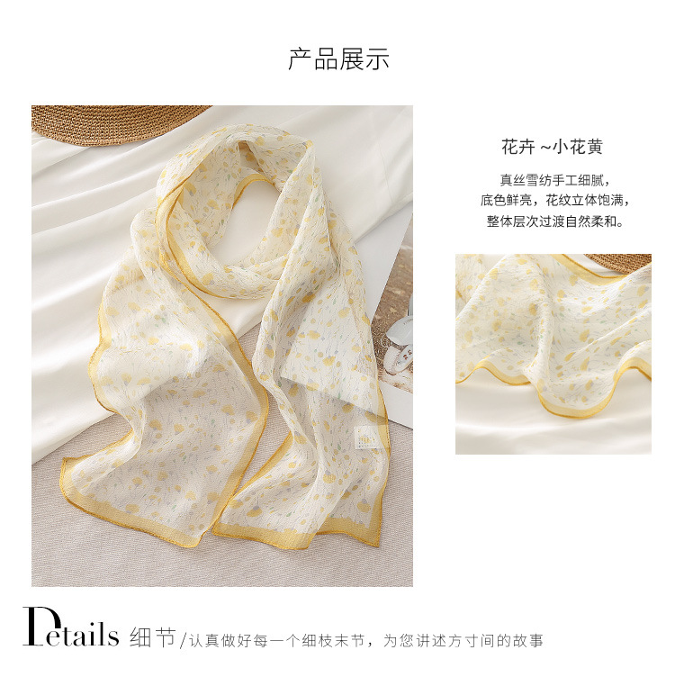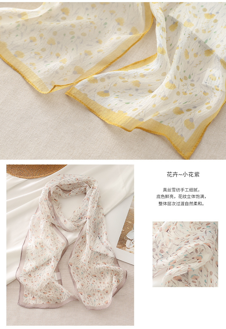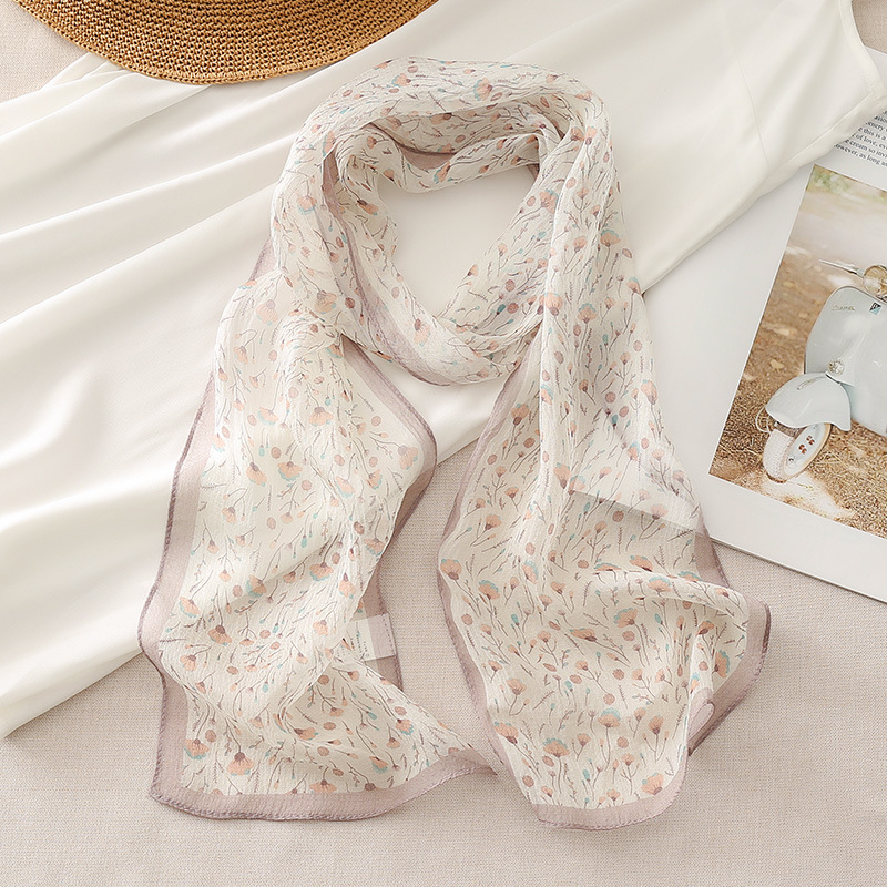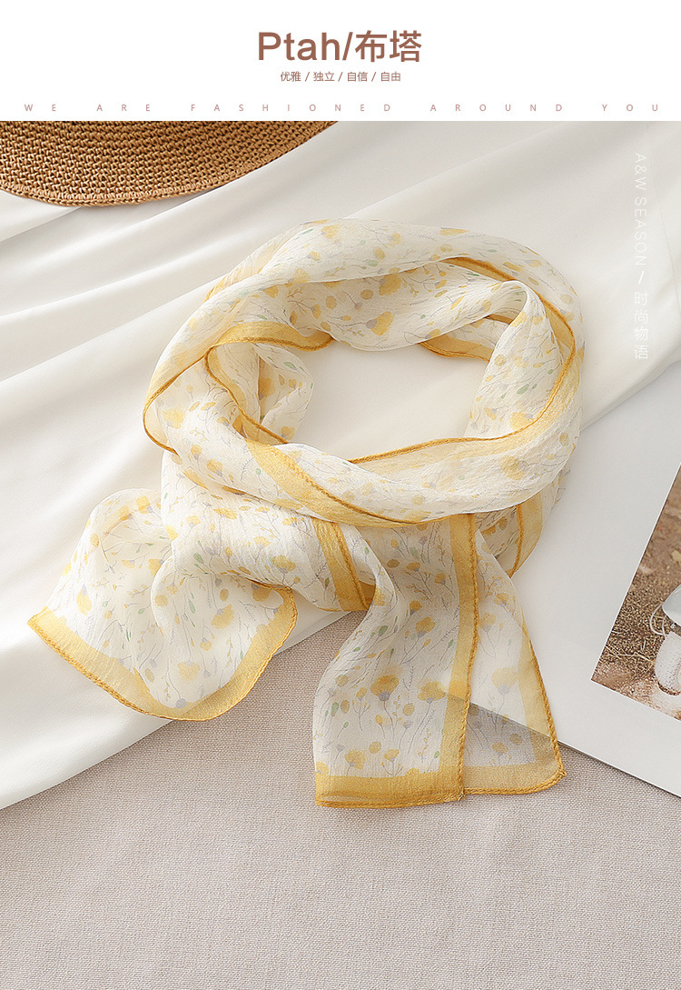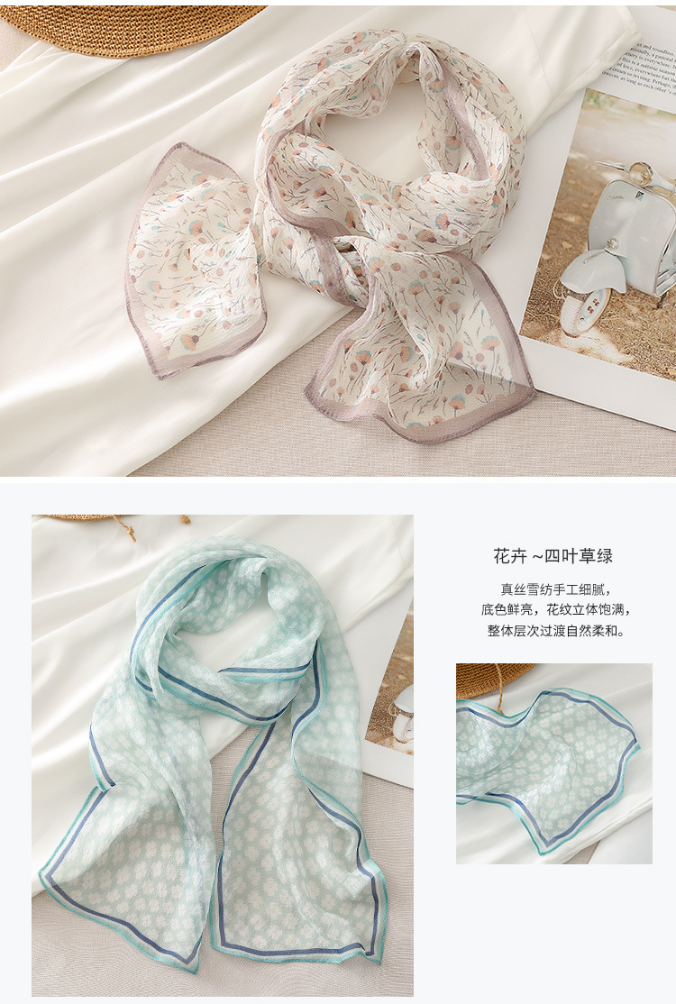 부타 봄과 가을 가벼운 실크 긴 스카프 여성 패션 올 매치 인쇄 작은 리본 뽕나무 실크 스카프 트렌디 PT21K290