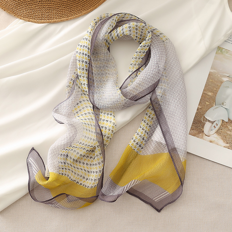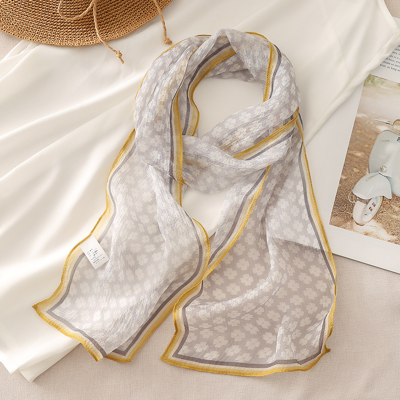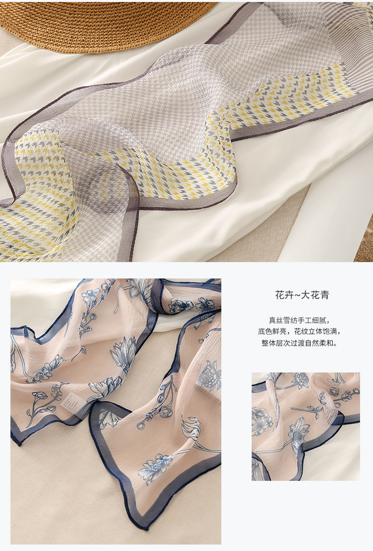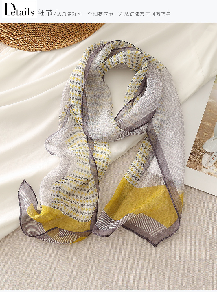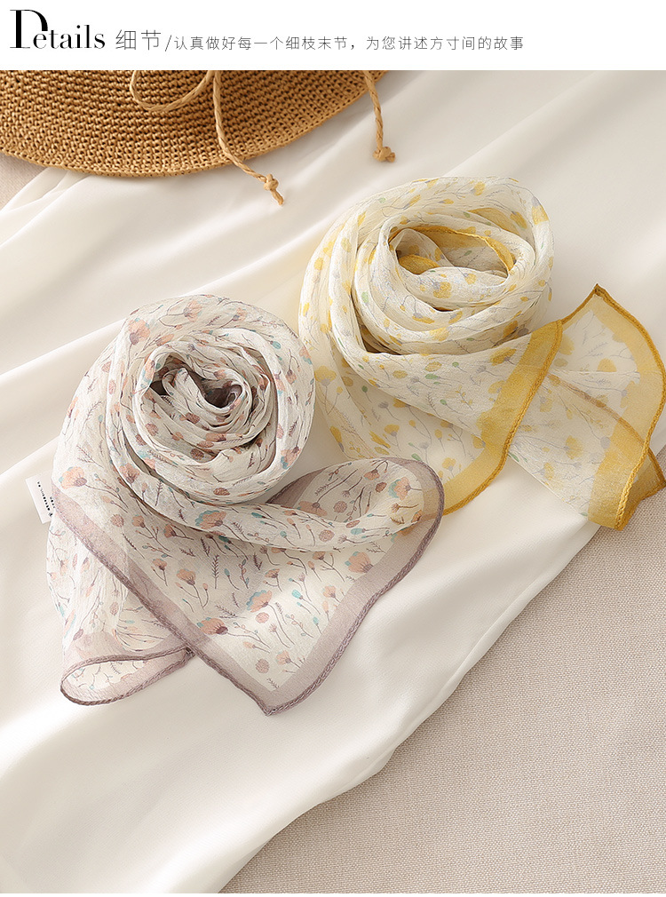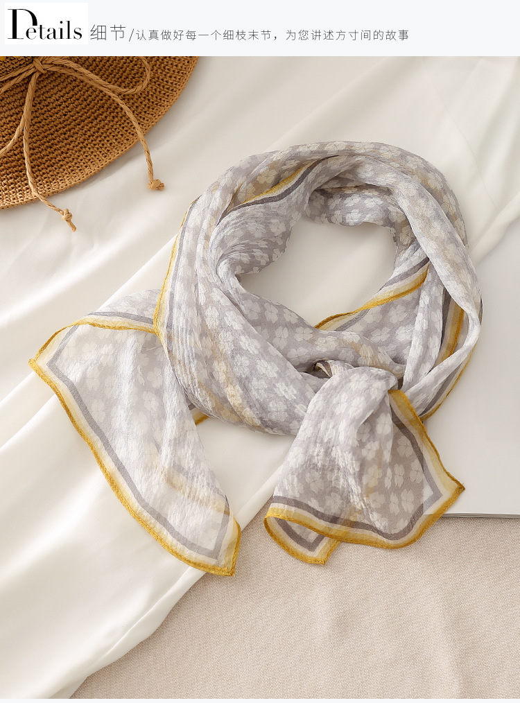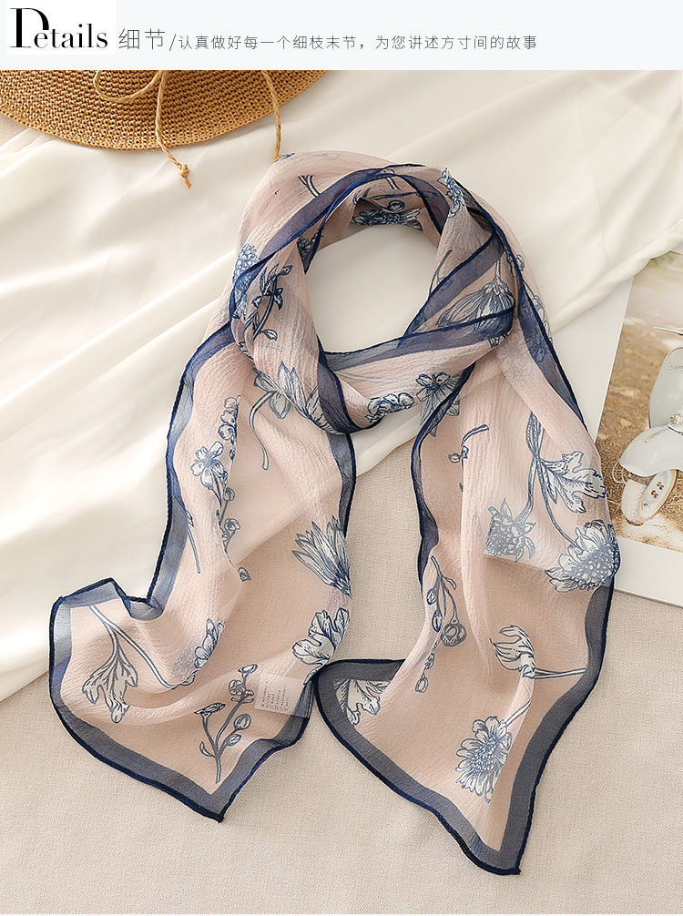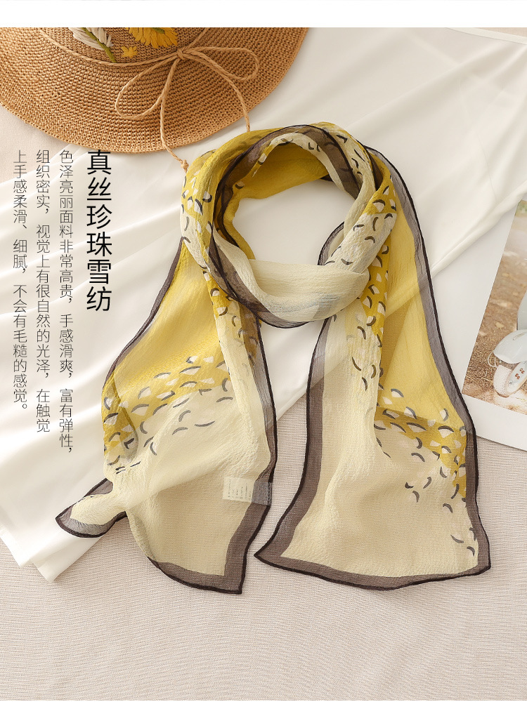 부타 봄과 가을 가벼운 실크 긴 스카프 여성 패션 올 매치 인쇄 작은 리본 뽕나무 실크 스카프 트렌디 PT21K290