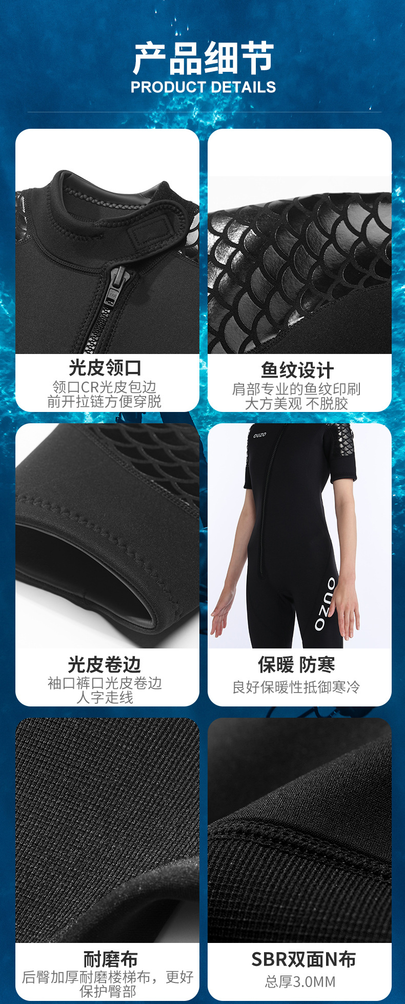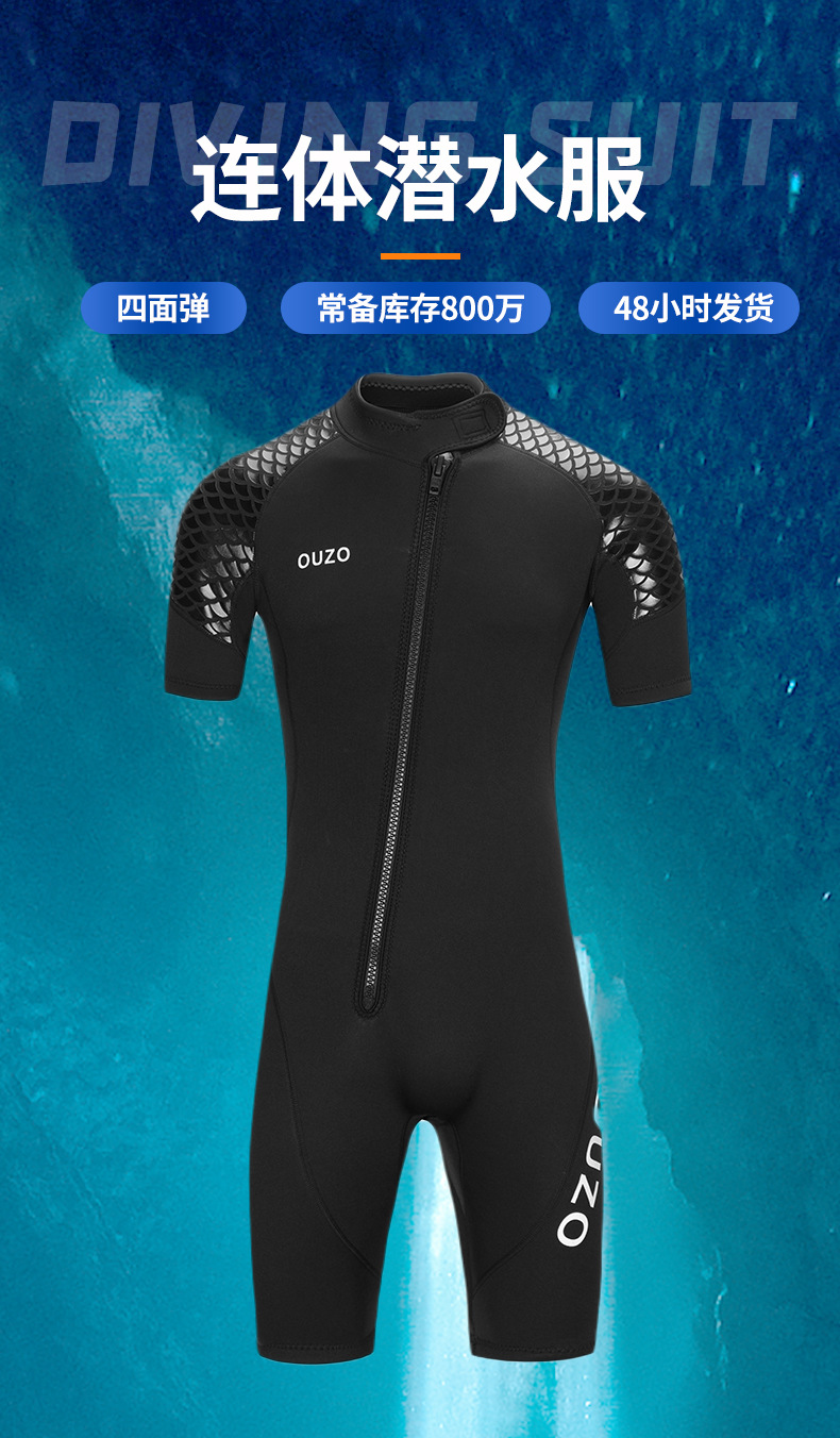 3mm男女短袖短裤潜水服 加厚防寒防晒保暖冲浪水母衣