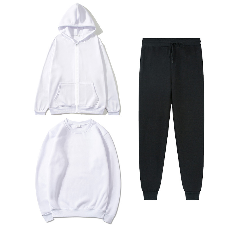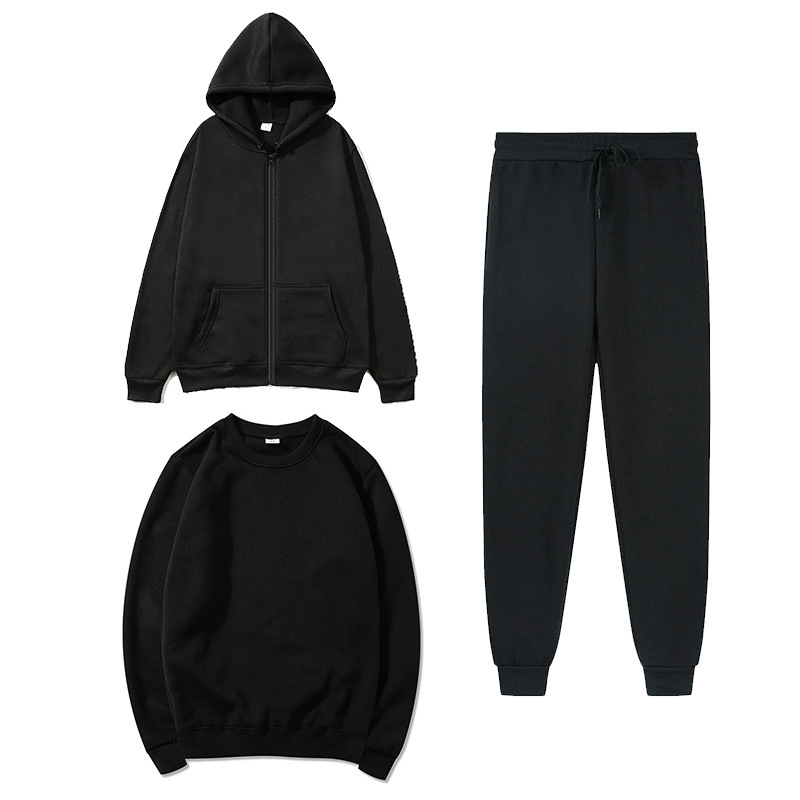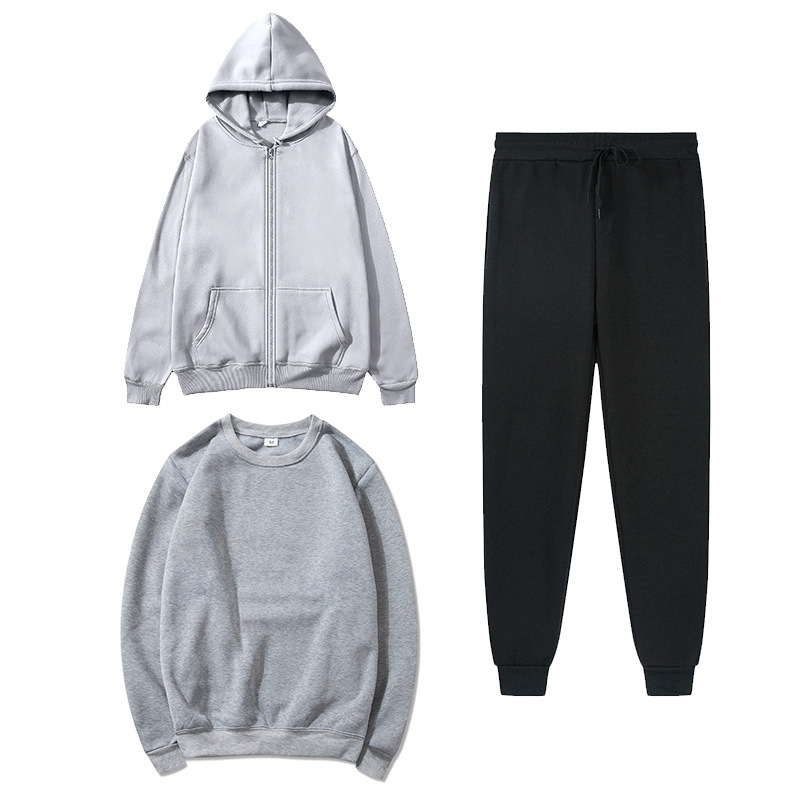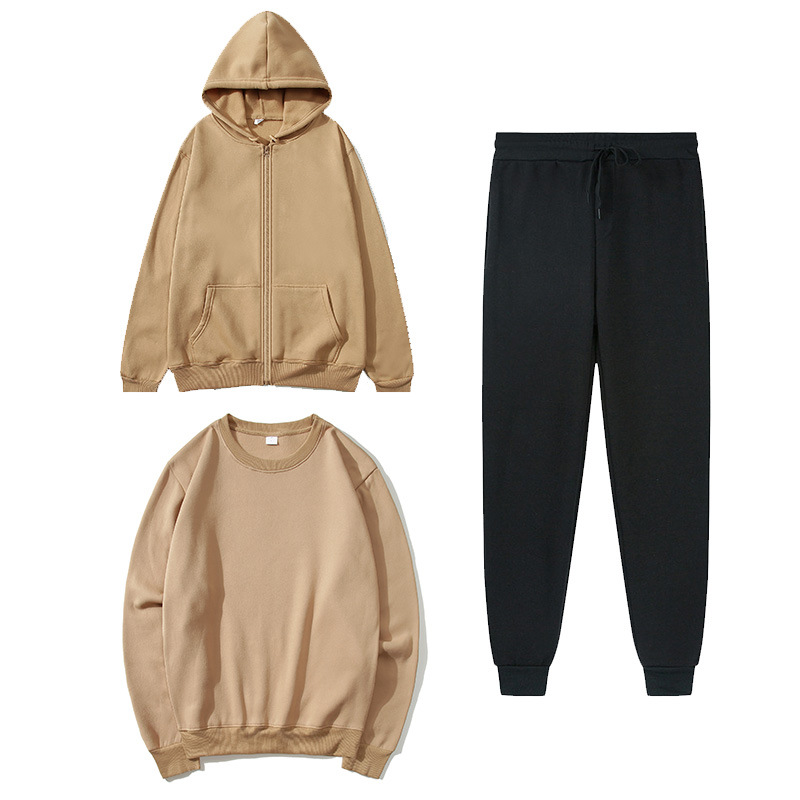 국경 가을과 겨울 양털 단색 카디건 지퍼 스웨터 세트 캐주얼 느슨한 스포츠 스웨터 + 스웨트 3 피스 세트
