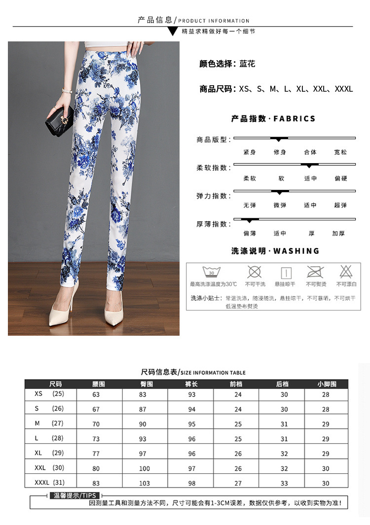 올 매치 에메랄드 프린트 2024 여름 새로운 탄성 허리 플로럴 체크 무늬 바지 슬리밍 스키니 바지 여성용 바지스토어 가기