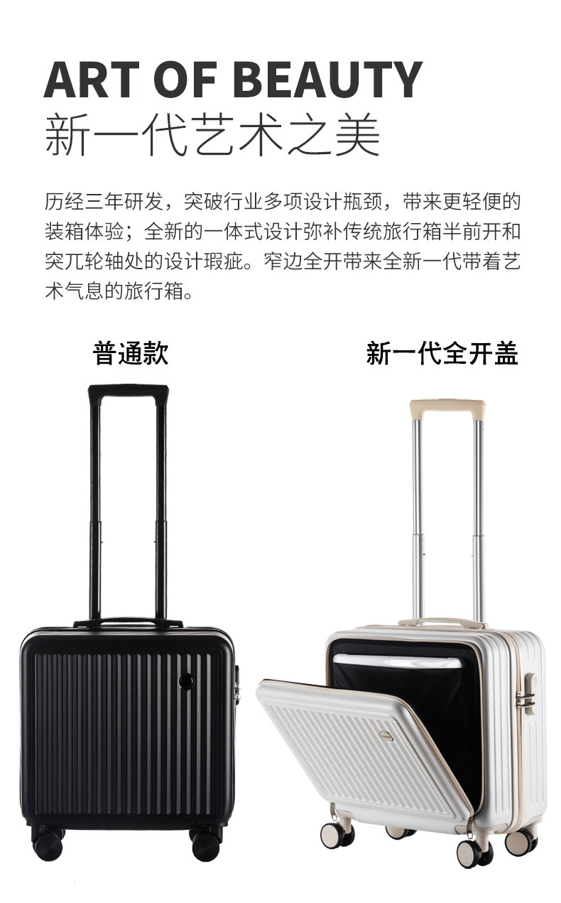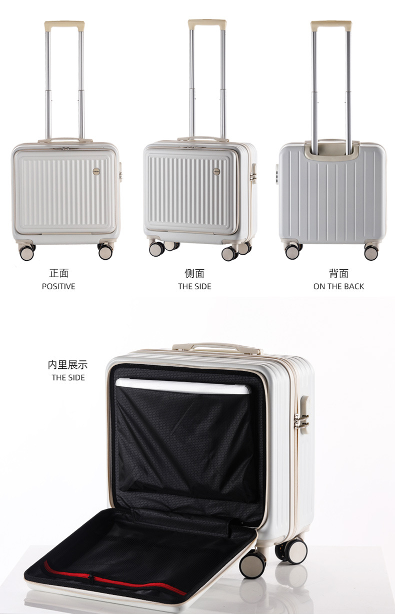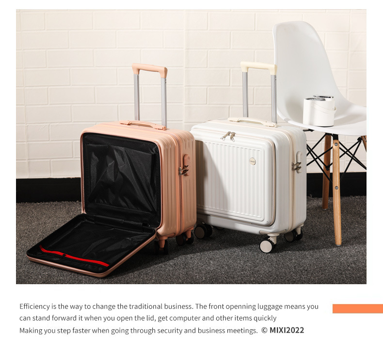 전면 개방 트롤리 케이스 18 인치 20 작은 전면 오픈 뚜껑 탑승 케이스 어린이 수하물 비밀번호 가방 도매스토어 가기