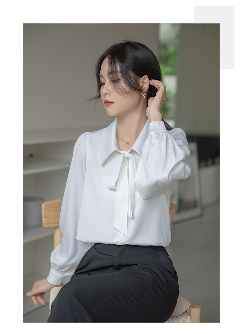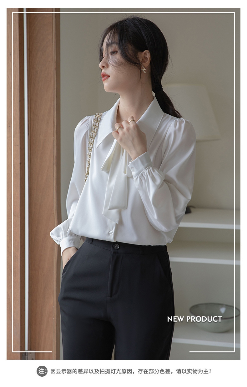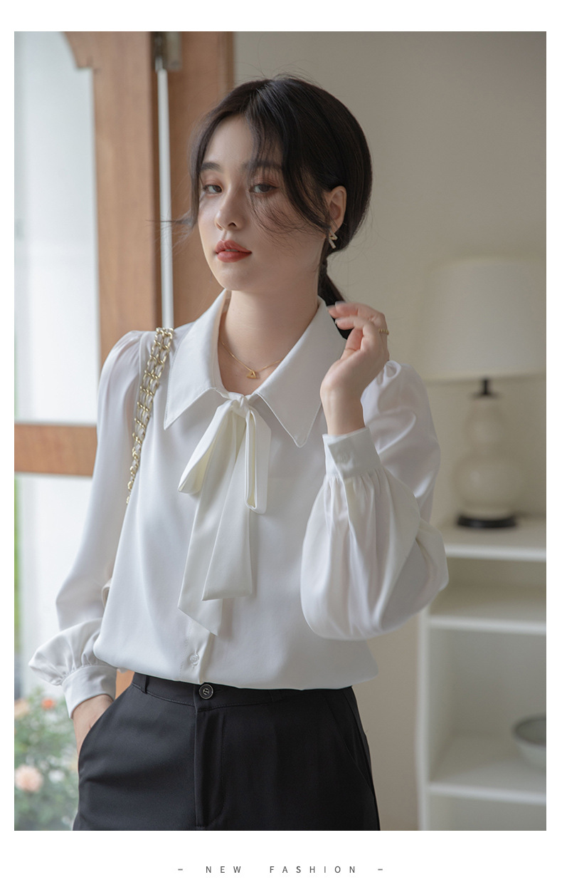 리얼 샷 프렌치 활 화이트 셔츠 여성 2023 가을 긴 소매 인터뷰 비즈니스 통근 전문 공식 탑스토어 가기