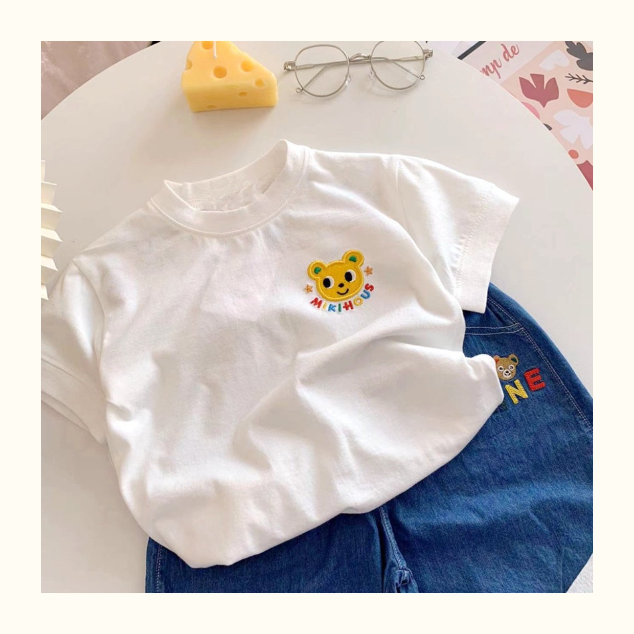 어린이 자수 반팔 티셔츠 코튼 여름 얇은 남자와 여자의 아기 반팔 옷 크로스 보더 원피스 헤어스토어 가기