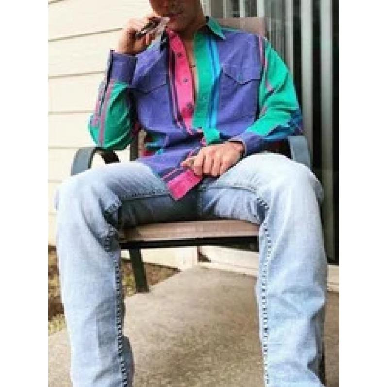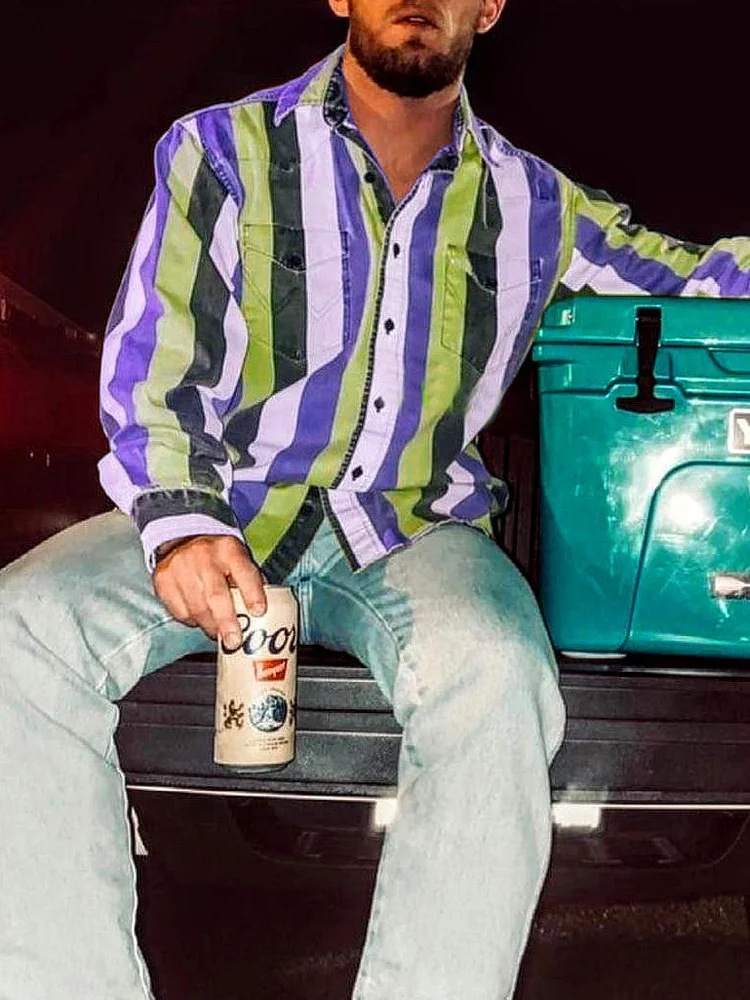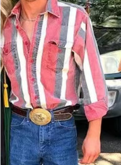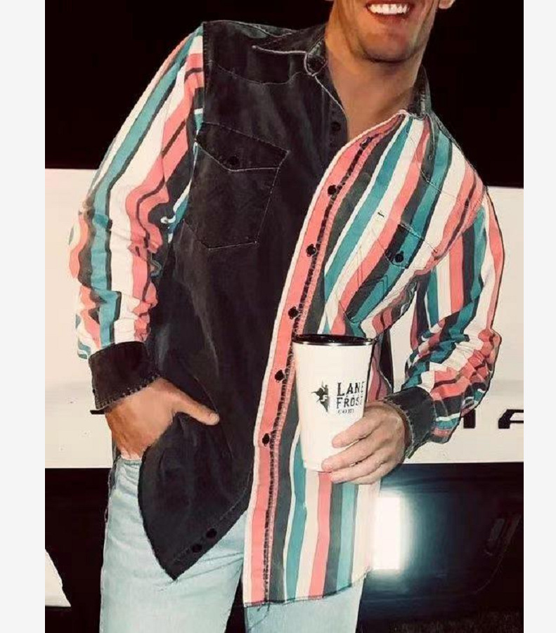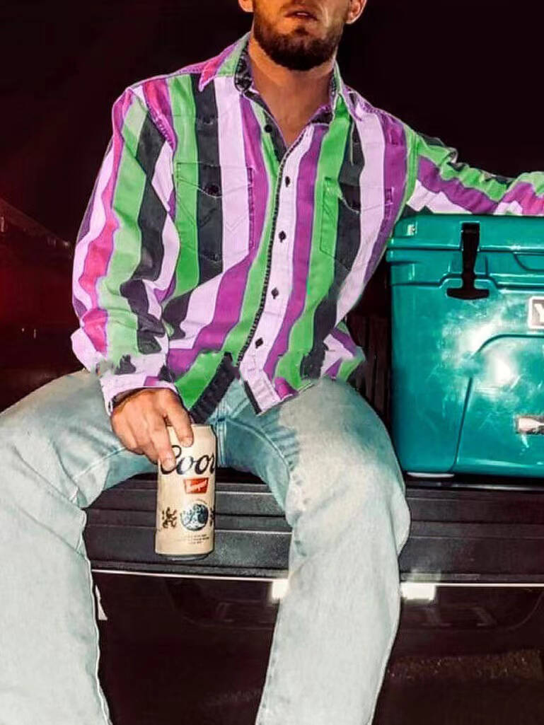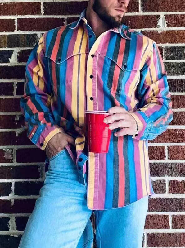 국경 간 아마존 2024 봄과 가을 유럽과 미국 청소년 줄무늬 캐주얼 인쇄 레이저 캐주얼 남성 셔츠스토어 가기