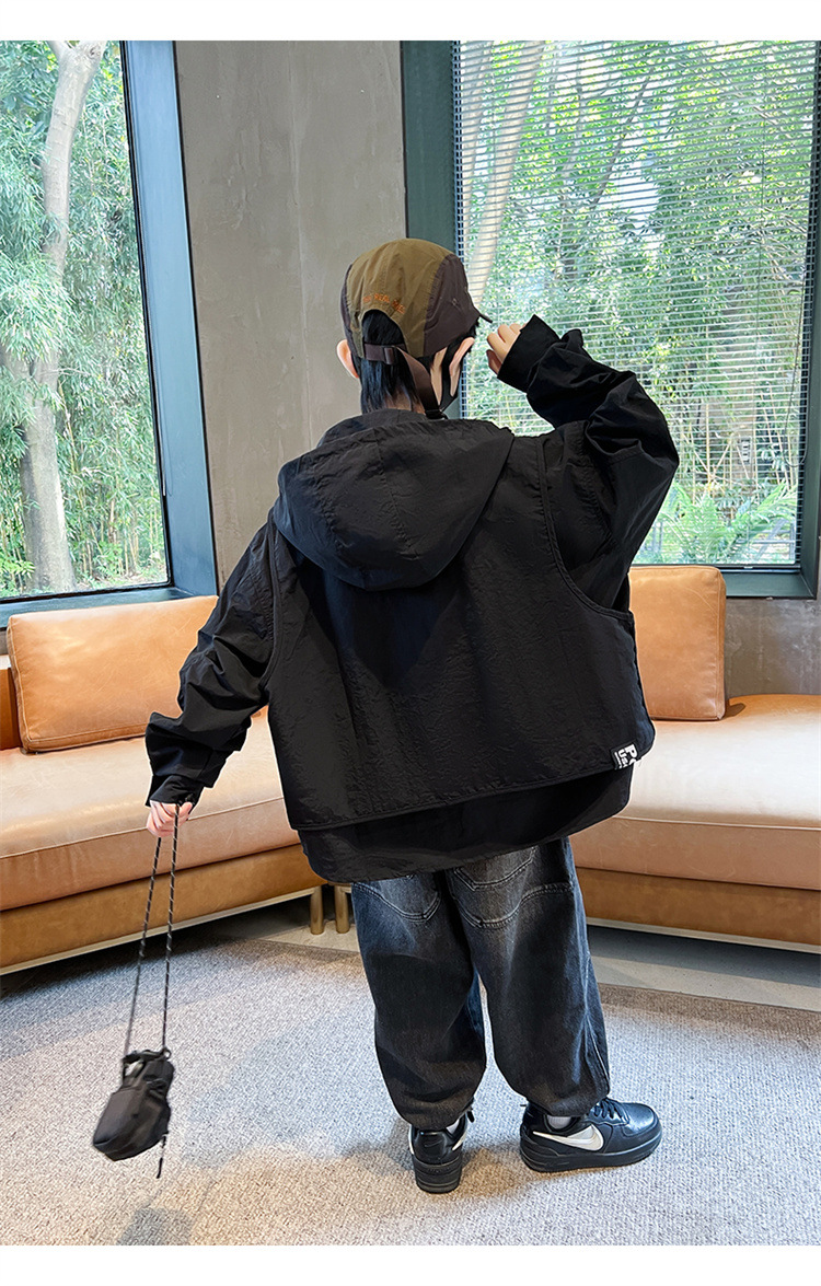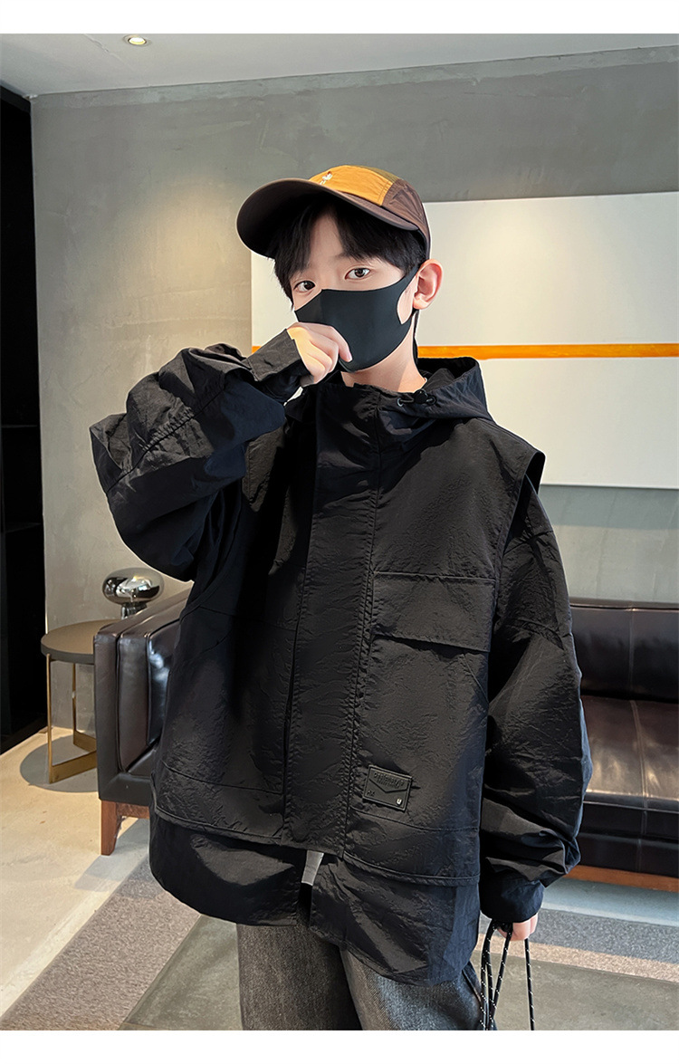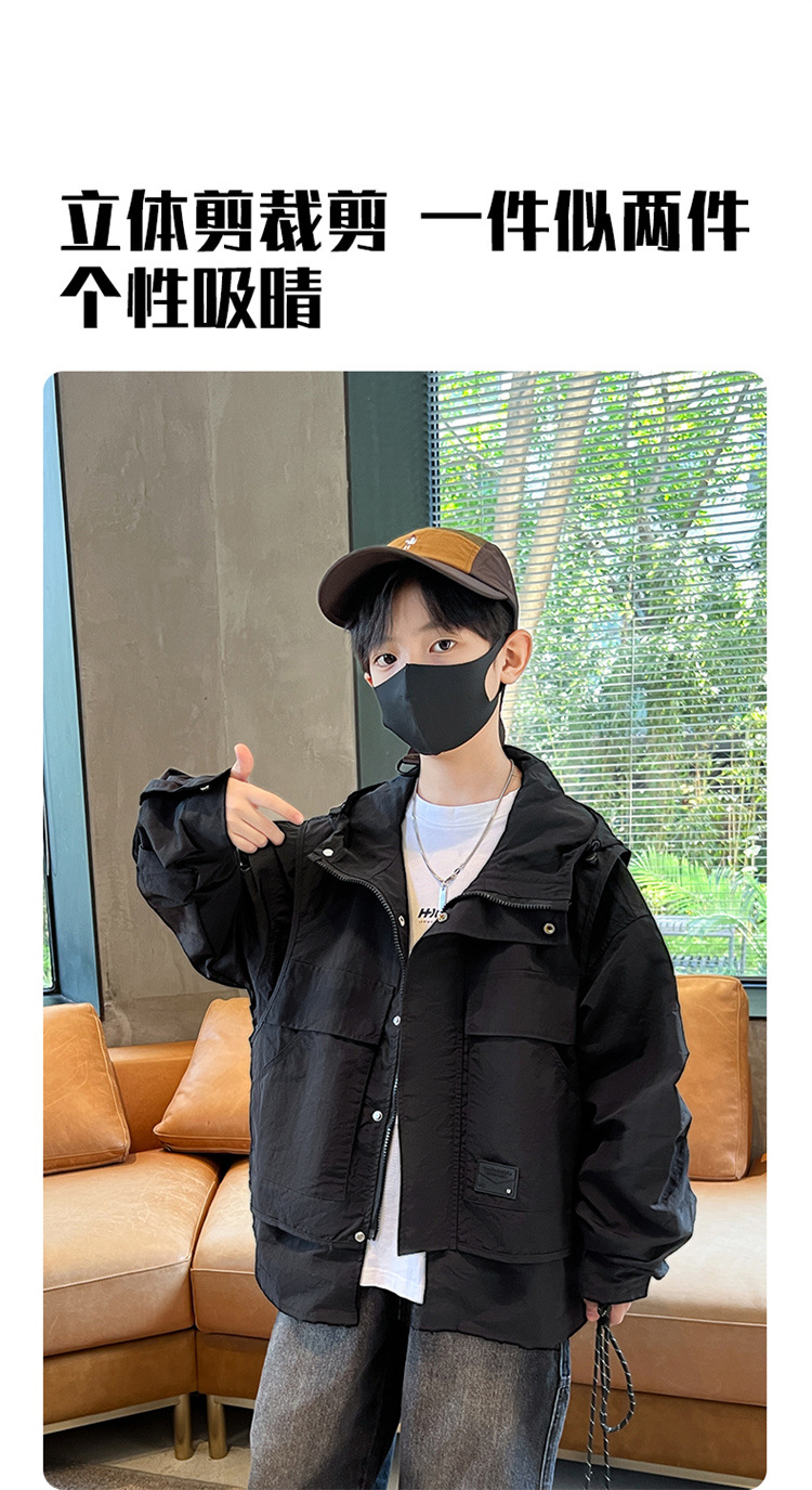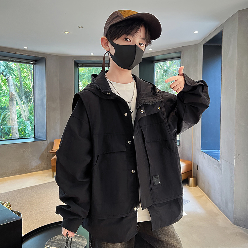 소년의 봄과 가을 재킷 2024 봄 재킷 어린이 후드 야외 의류 느슨한 플러스 사이즈스토어 가기