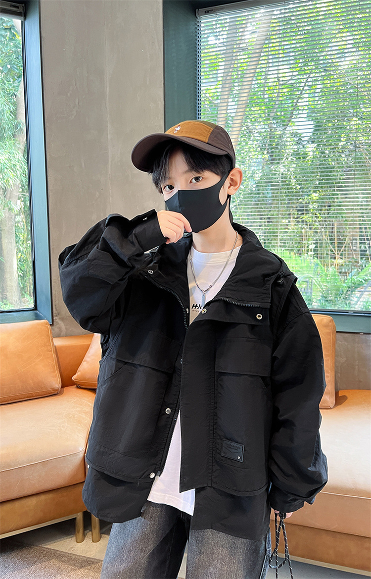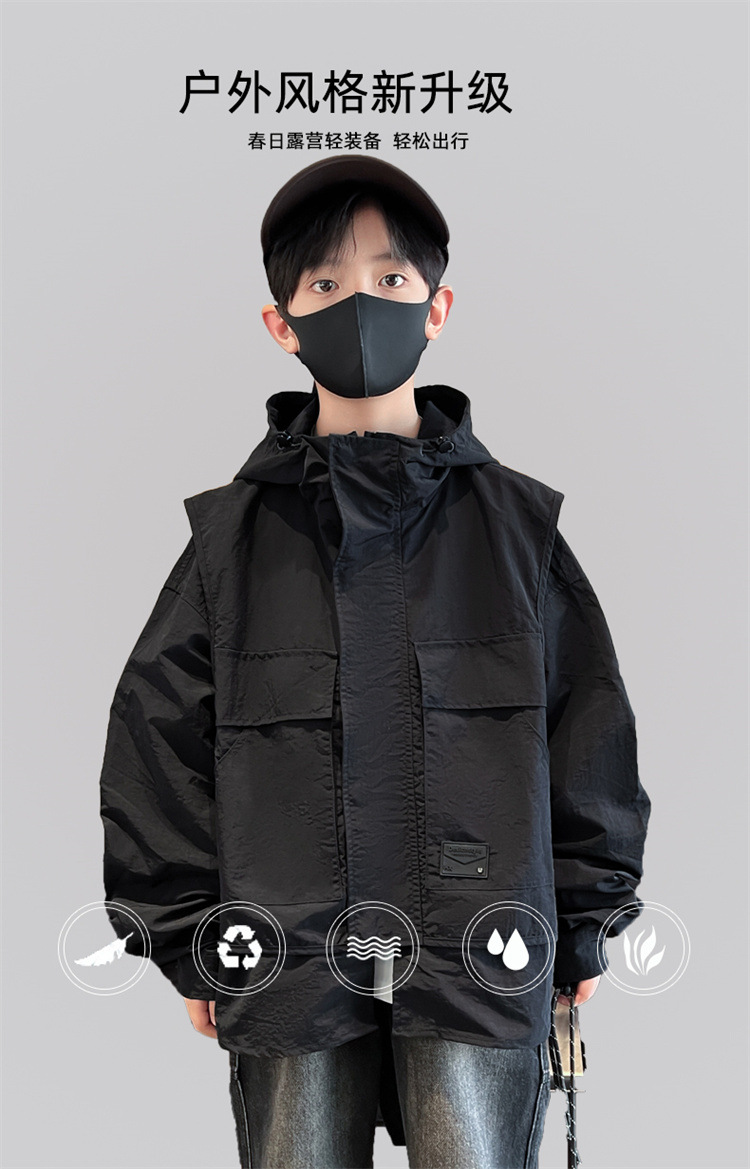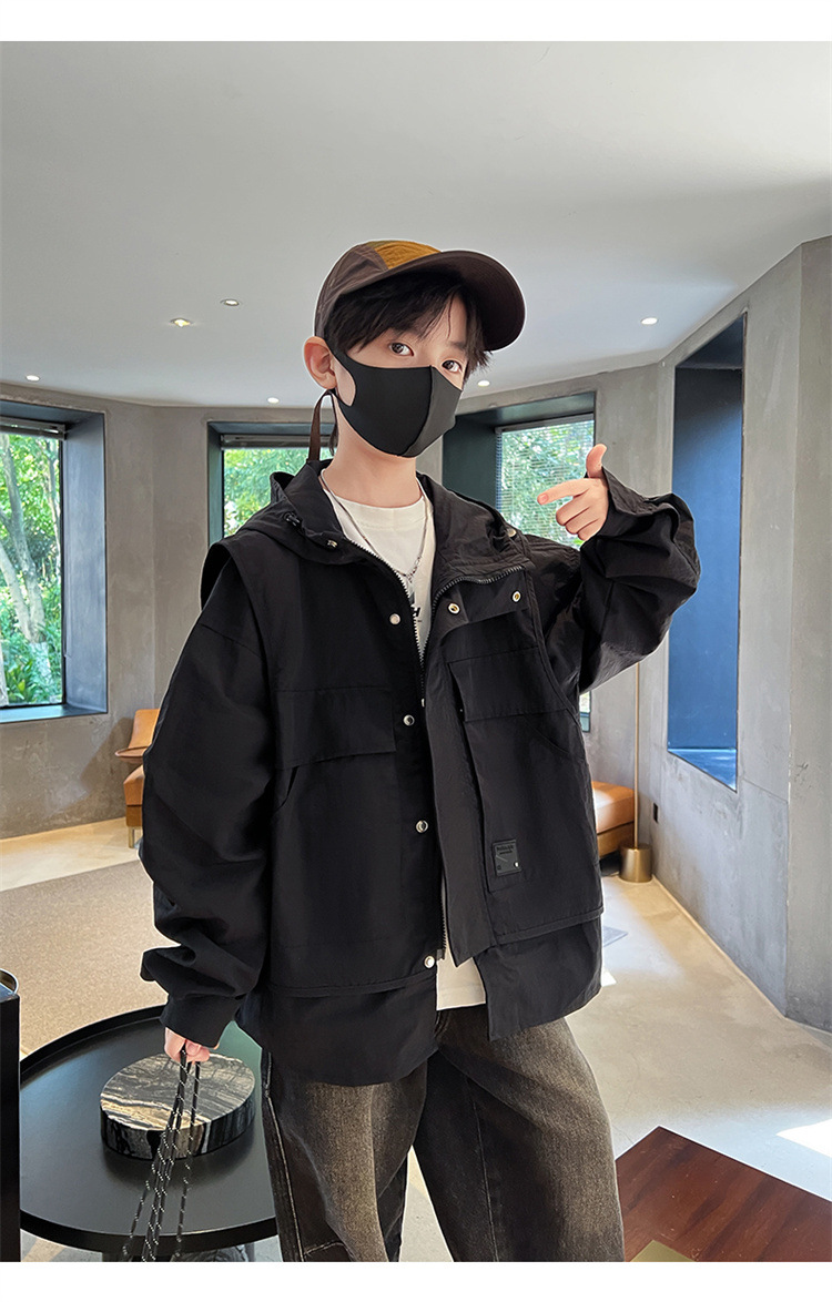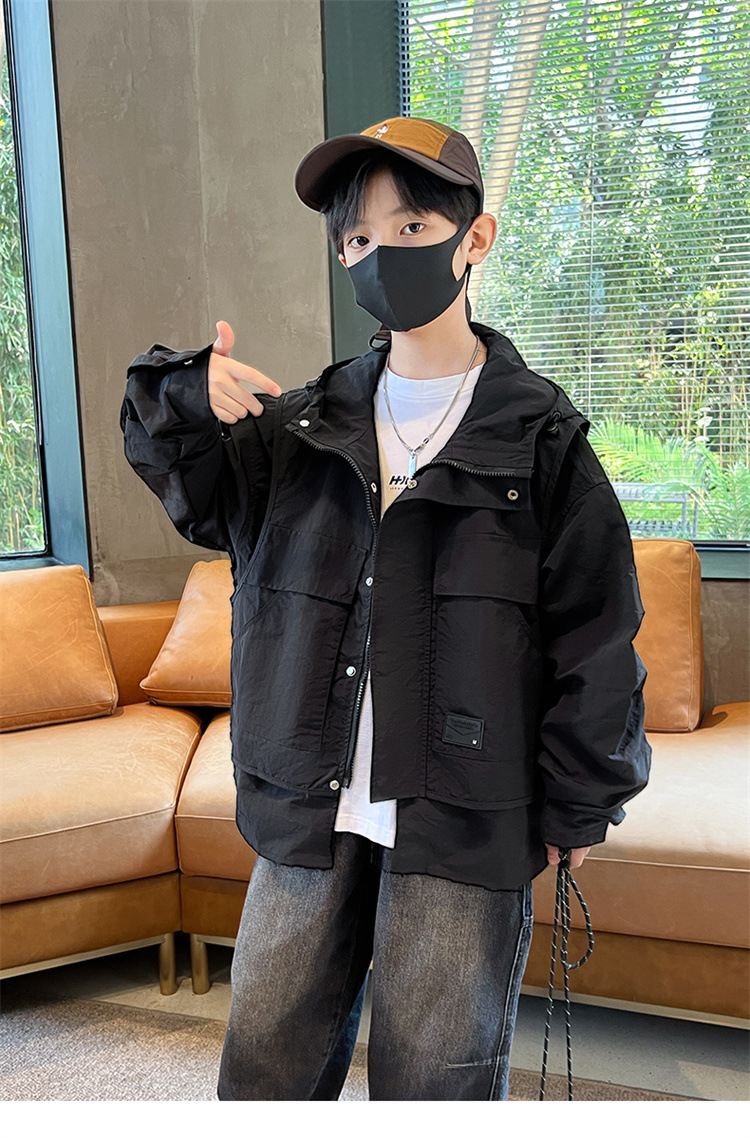 소년의 봄과 가을 재킷 2024 봄 재킷 어린이 후드 야외 의류 느슨한 플러스 사이즈스토어 가기