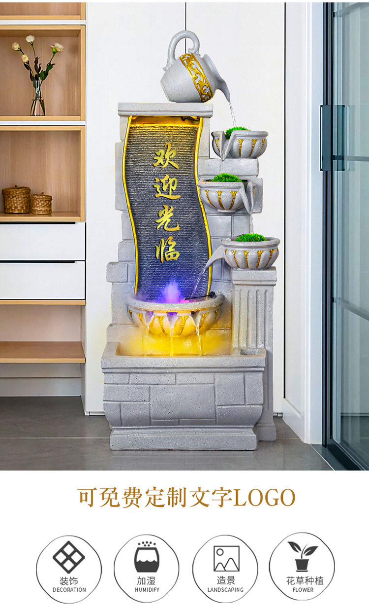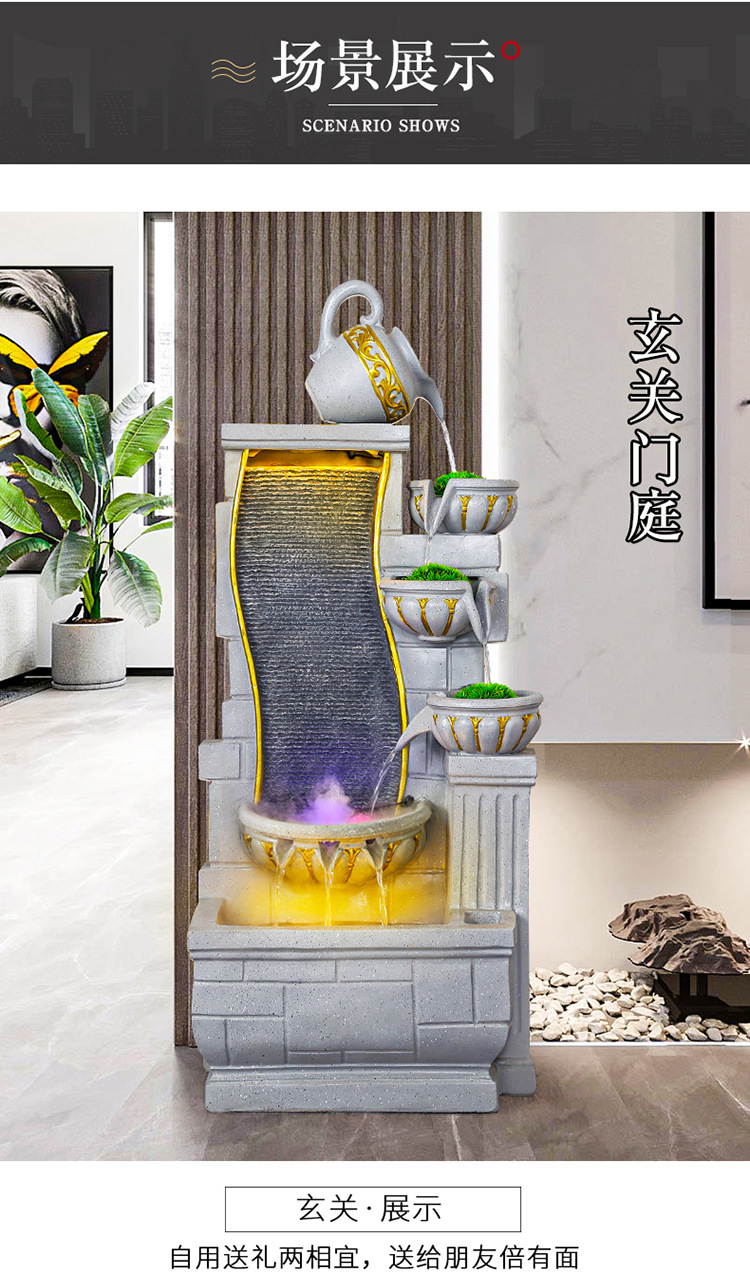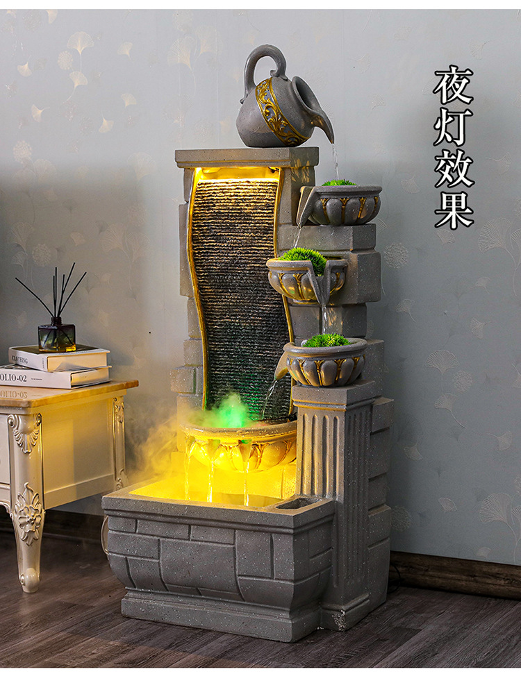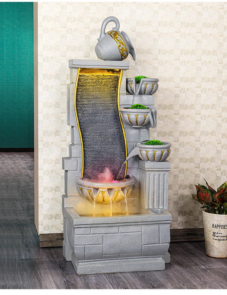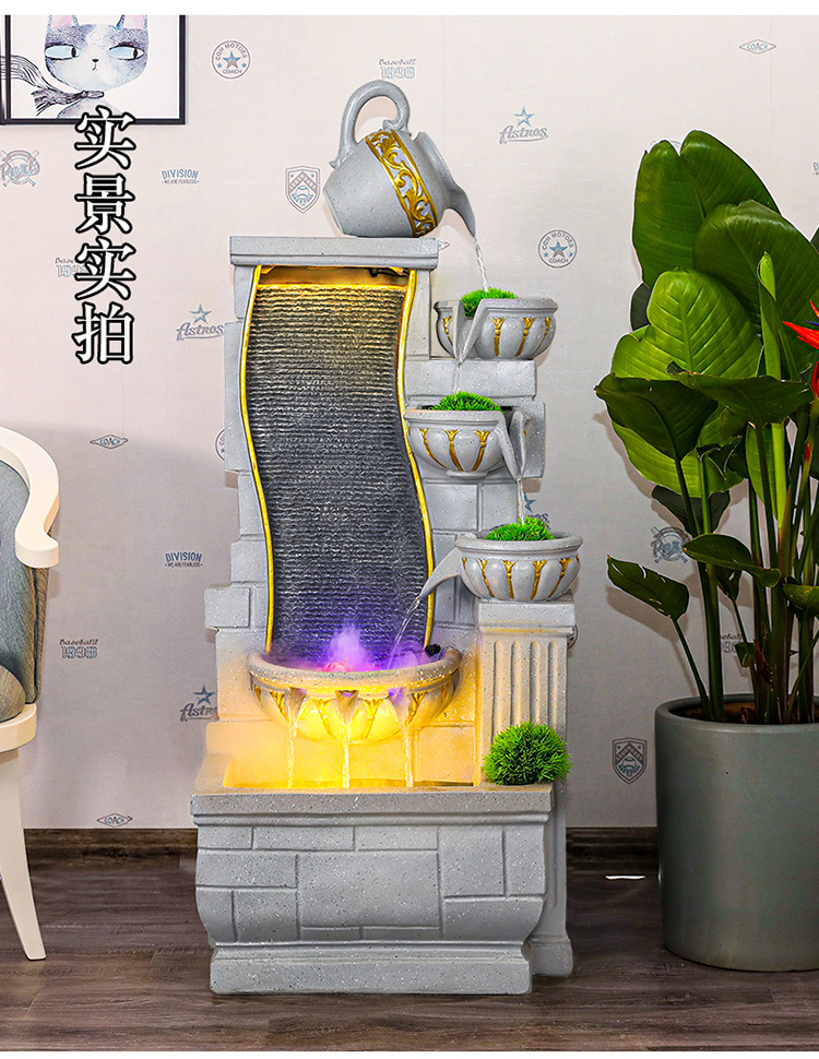 유럽 스타일의 집 실내 물 분수 바닥 장식 현대 거실 가습 가벼운 고급 물고기 탱크 순환 물 풍경스토어 가기