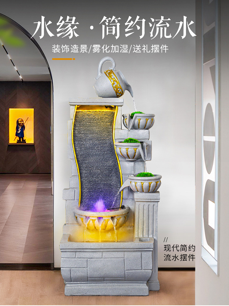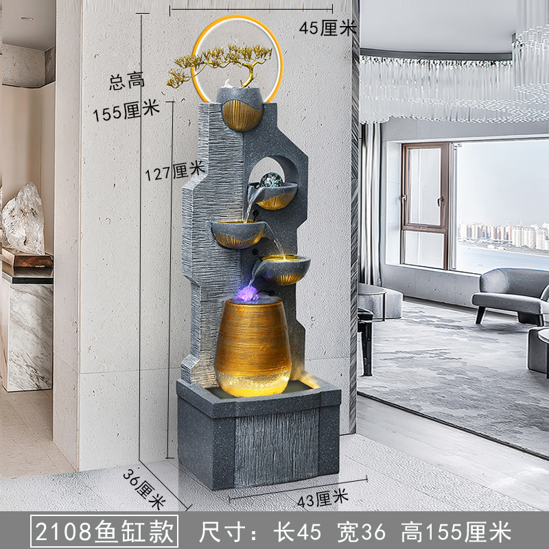 유럽 스타일의 집 실내 물 분수 바닥 장식 현대 거실 가습 가벼운 고급 물고기 탱크 순환 물 풍경