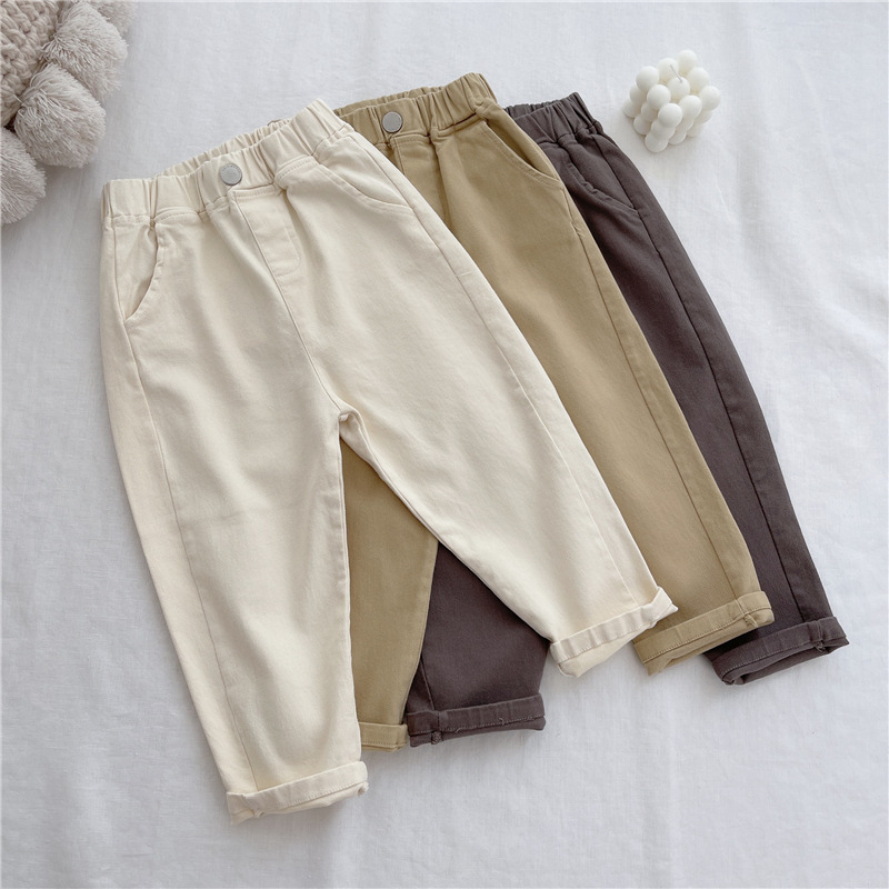 남성과 여성의 단색 간단한 캐주얼 바지 소형 및 중형 어린이 유행 올 매치 느슨한 봄 및 가을 바지스토어 가기