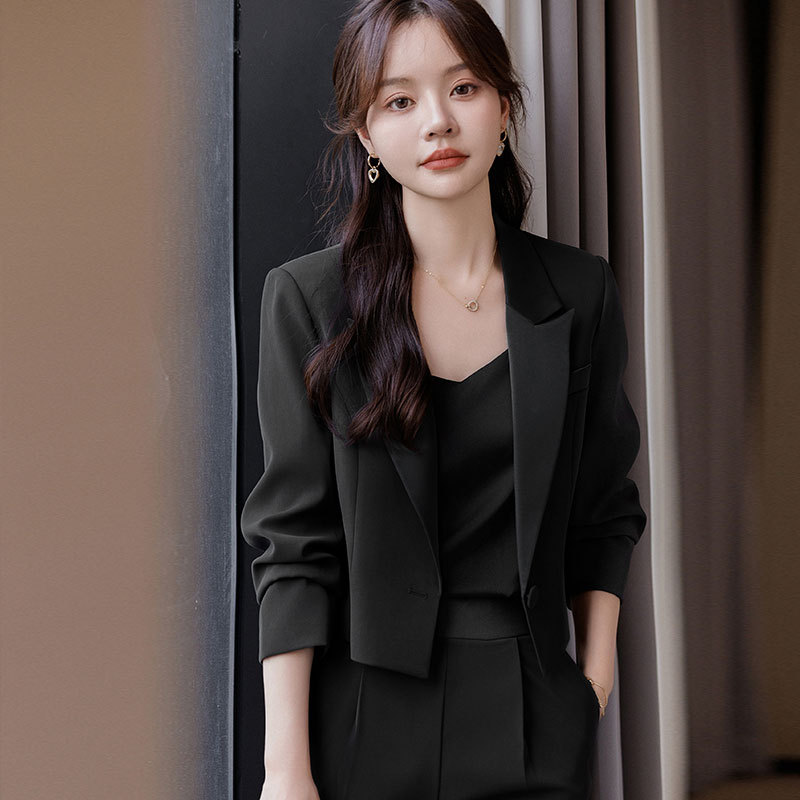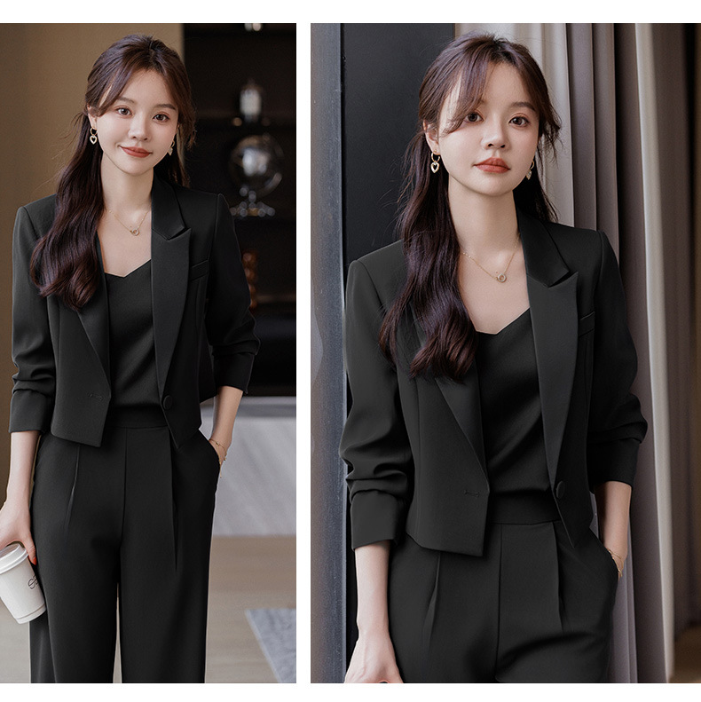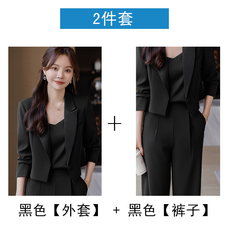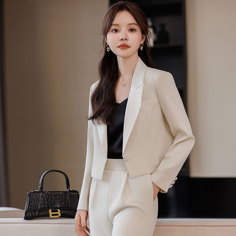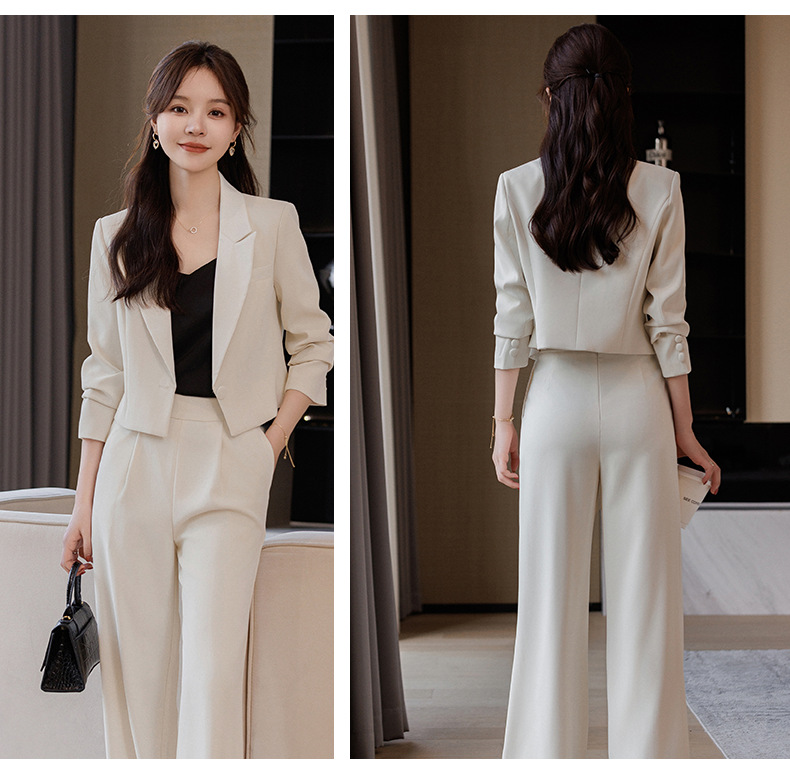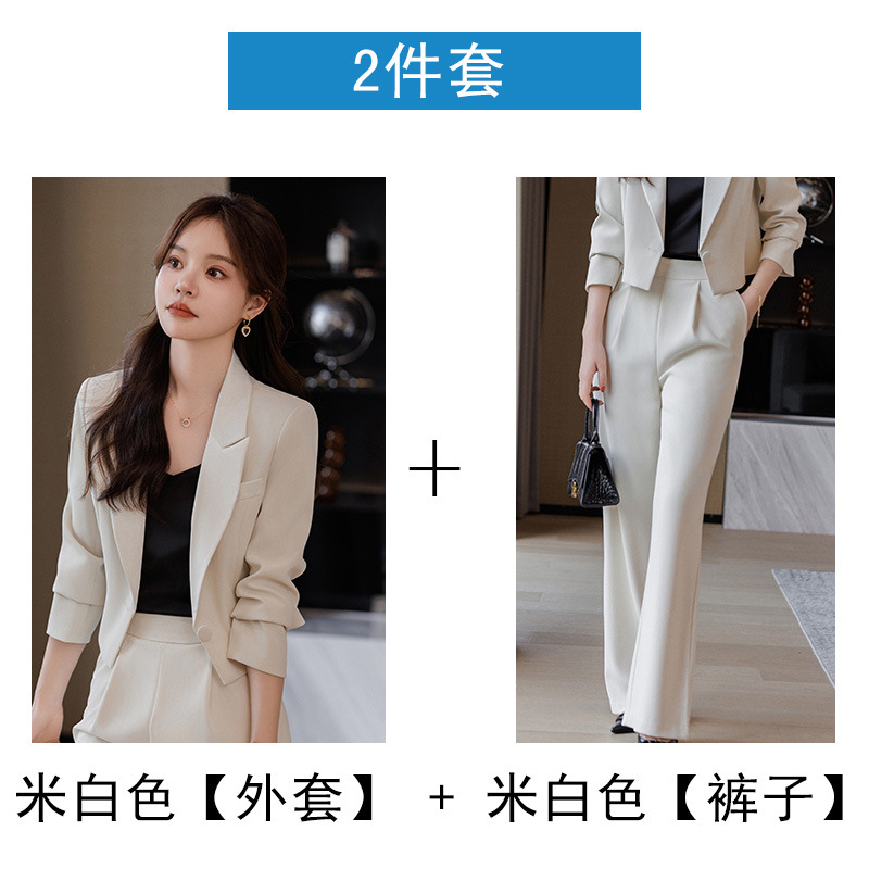 캐주얼 화이트 짧은 세트 재킷 여성 봄과 가을 작은 고급 기질 전문 와이드 레그 바지 세트 세트스토어 가기