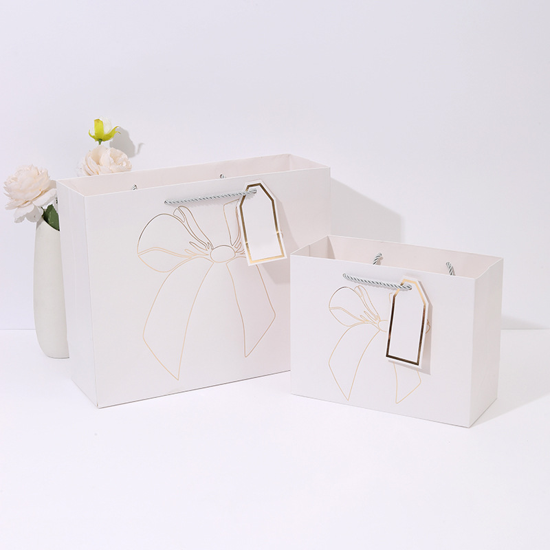 활 수평 선물 가방 질감 도금 두꺼운 흰색 판지 가방 대외 무역 재고 도매 핸드백 엘리베이터스토어 가기