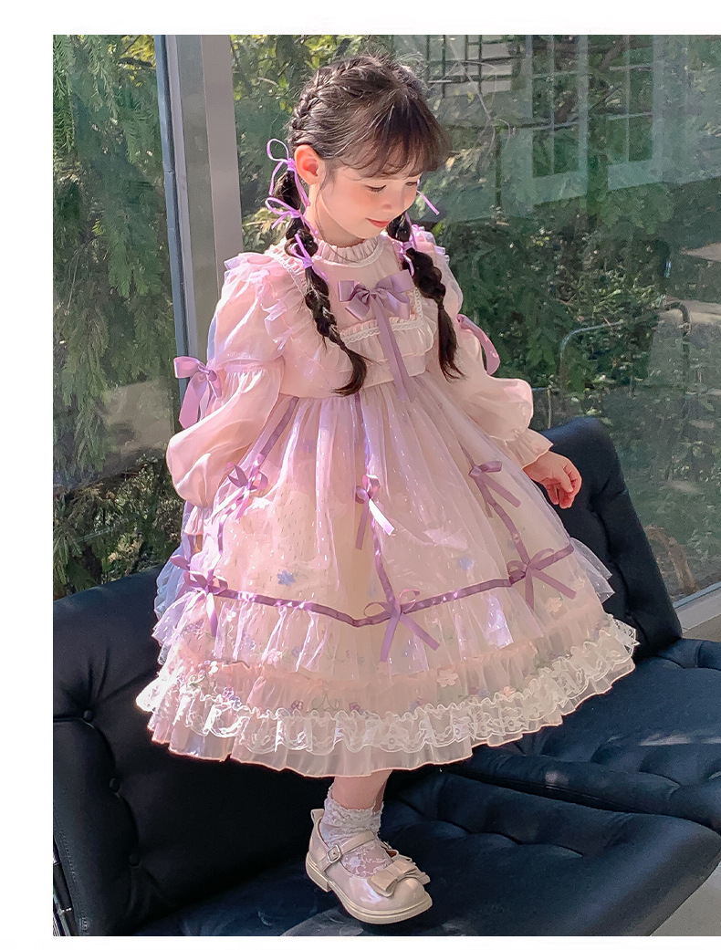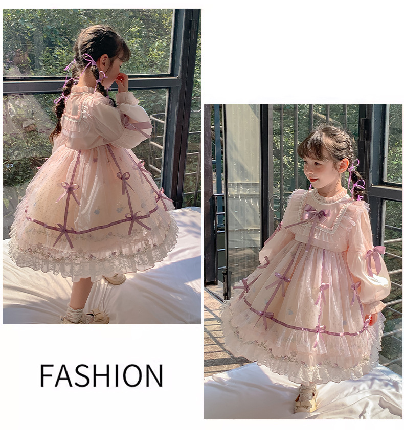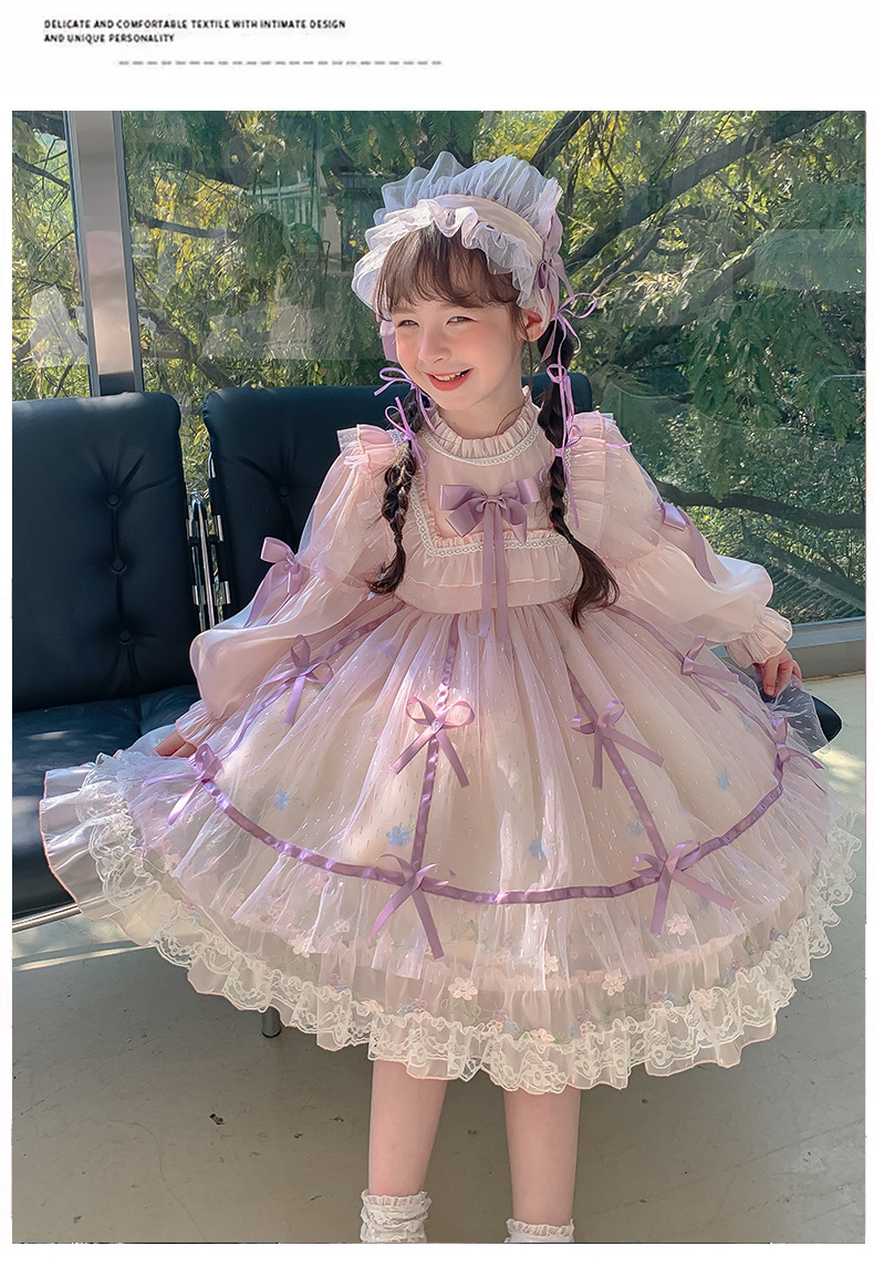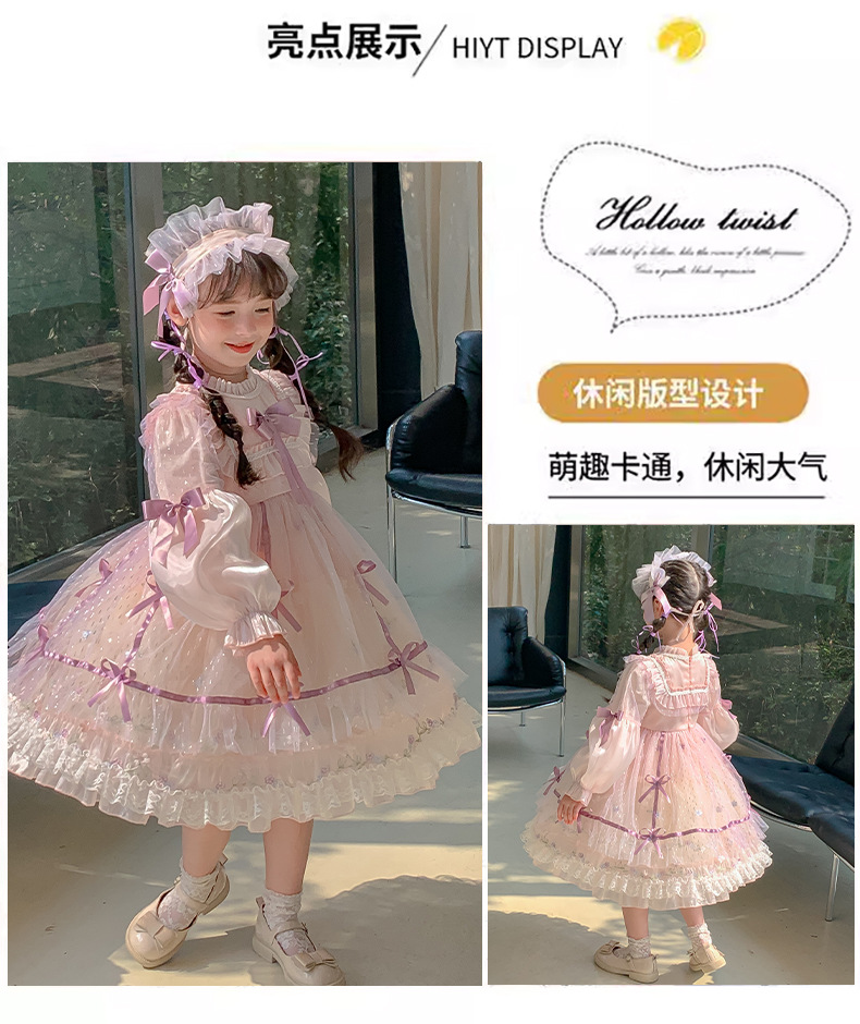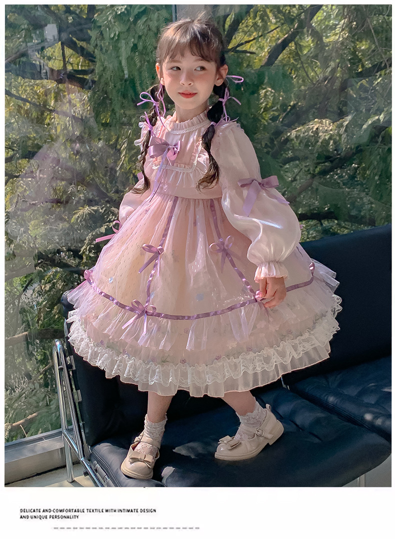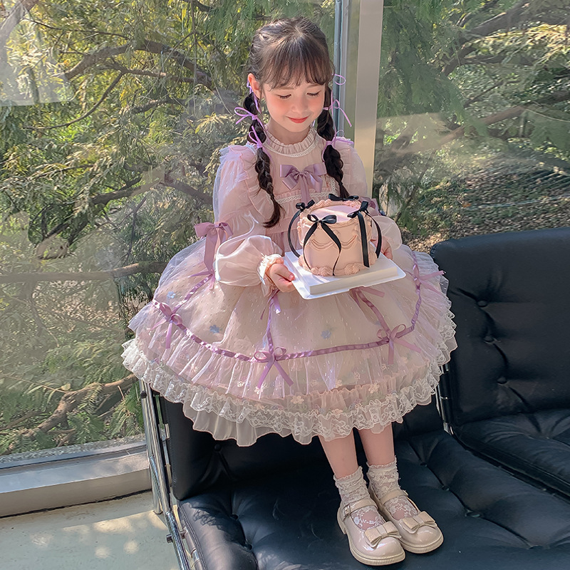 2024 로리타 소녀 원피스 봄 새로운 로리타 로리타 공주 원피스 중간 및 큰 어린이 달콤한 원사 원피스