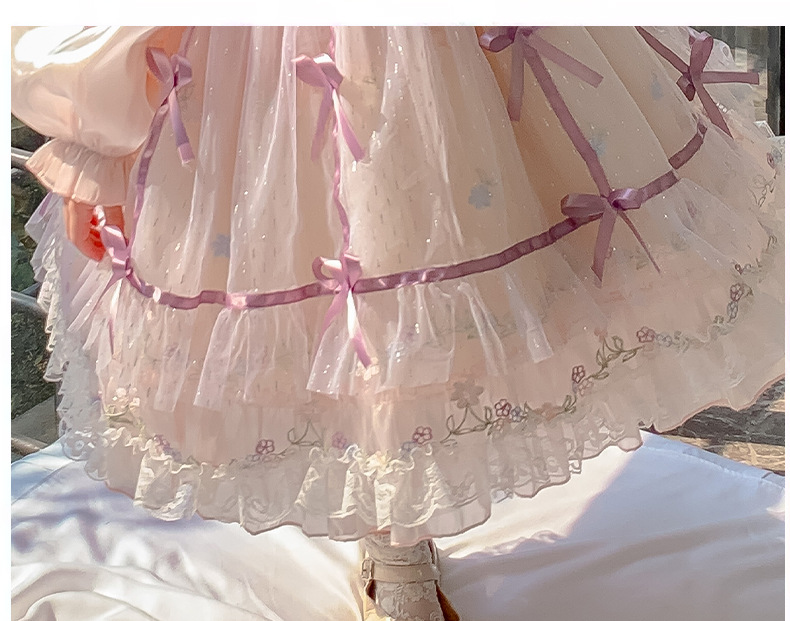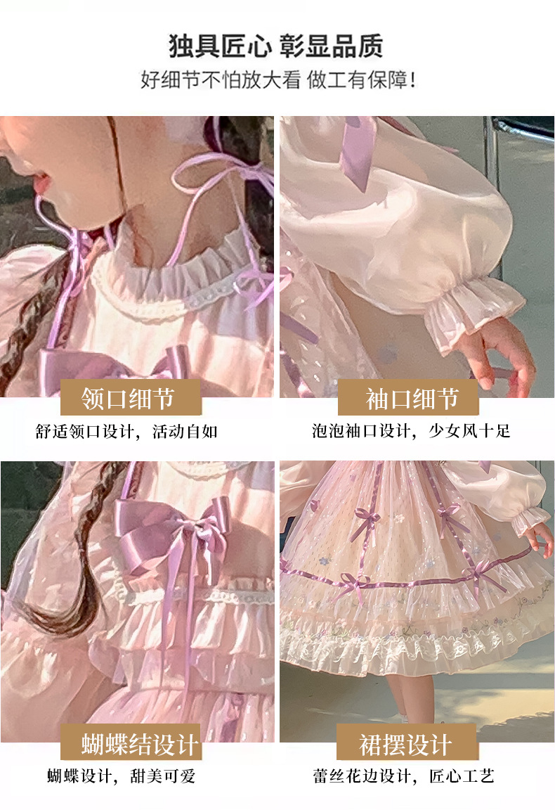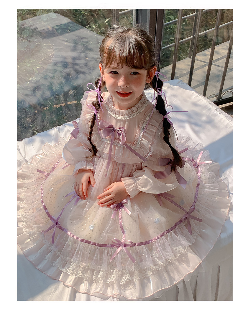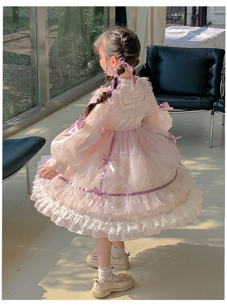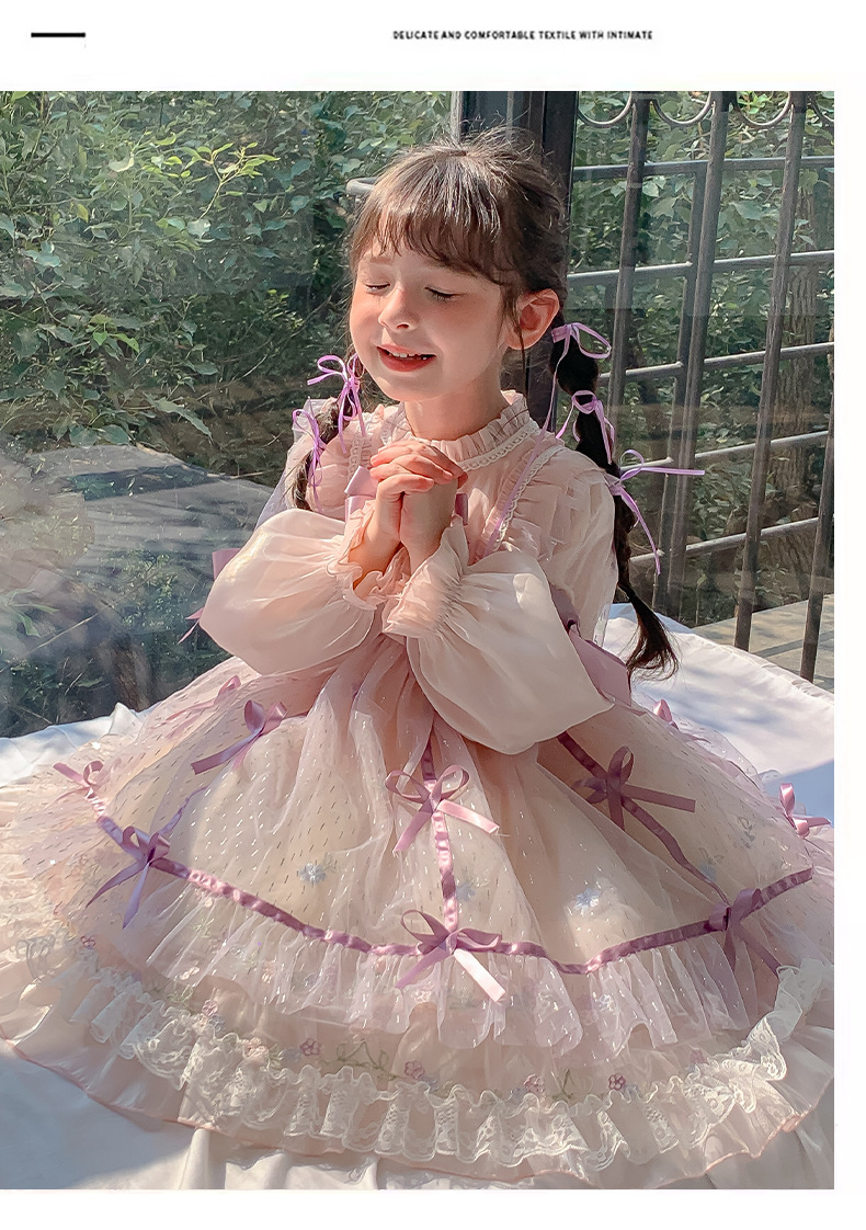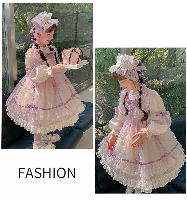 2024 로리타 소녀 원피스 봄 새로운 로리타 로리타 공주 원피스 중간 및 큰 어린이 달콤한 원사 원피스
