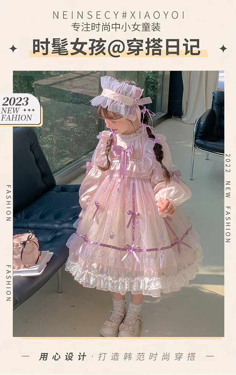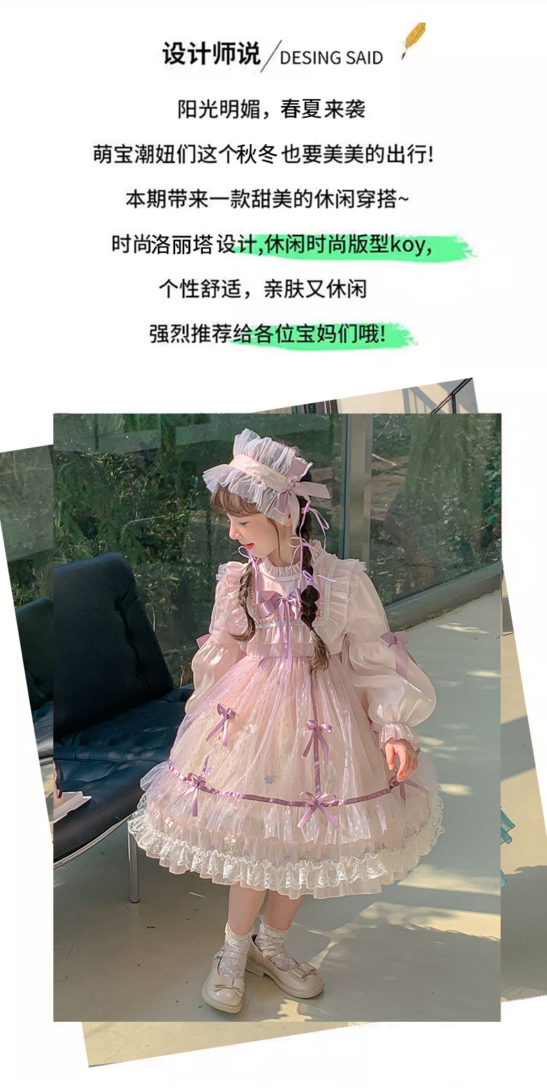 2024 로리타 소녀 원피스 봄 새로운 로리타 로리타 공주 원피스 중간 및 큰 어린이 달콤한 원사 원피스스토어 가기