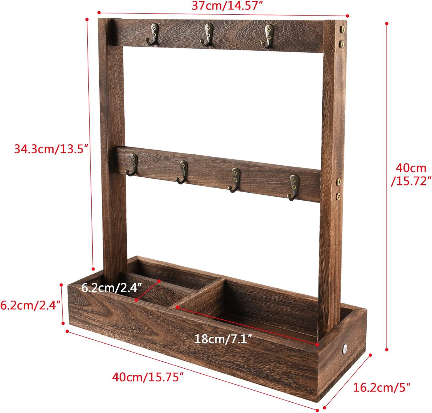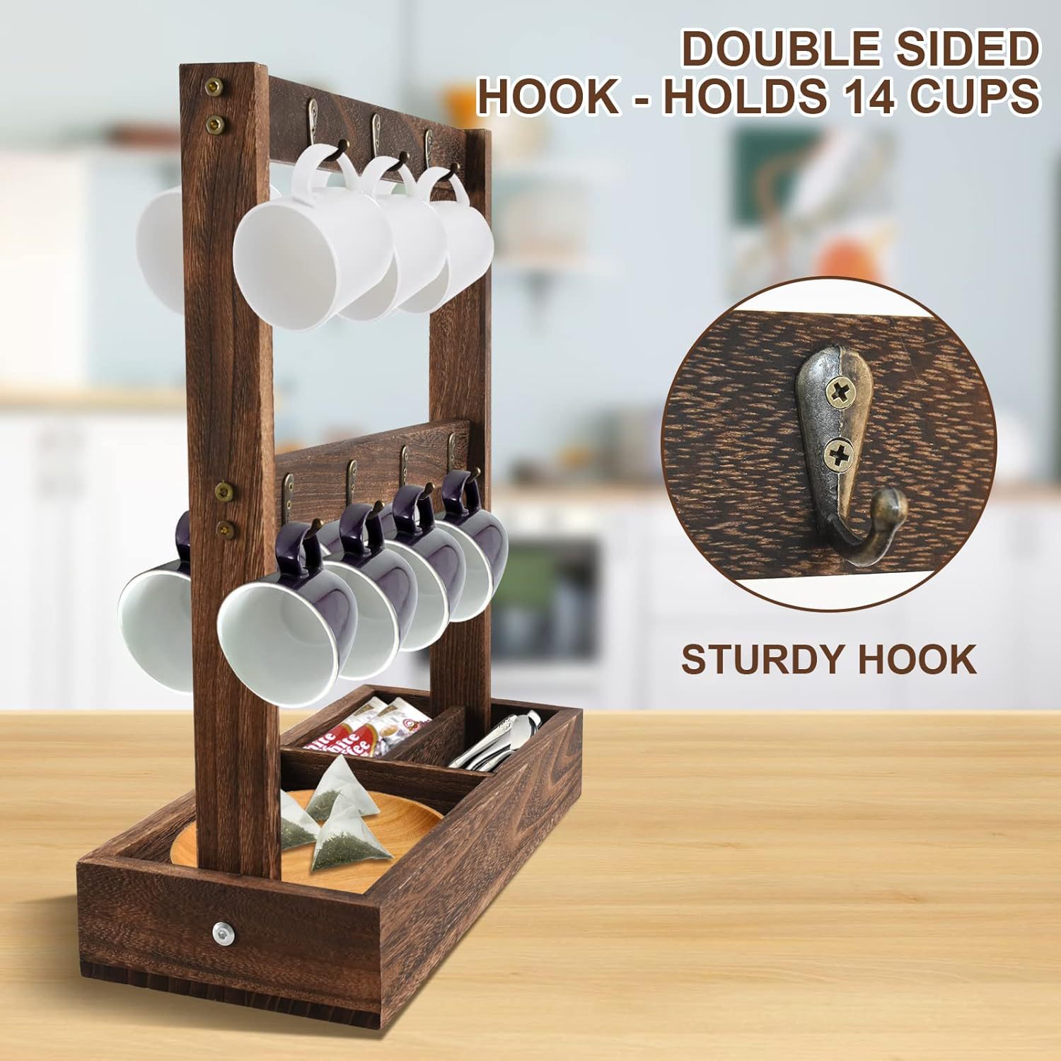 소박한 스타일 커피 컵 홀더 머그잔 양면 후크 홀더 주방 조리대 식기 컵 나무 보관함